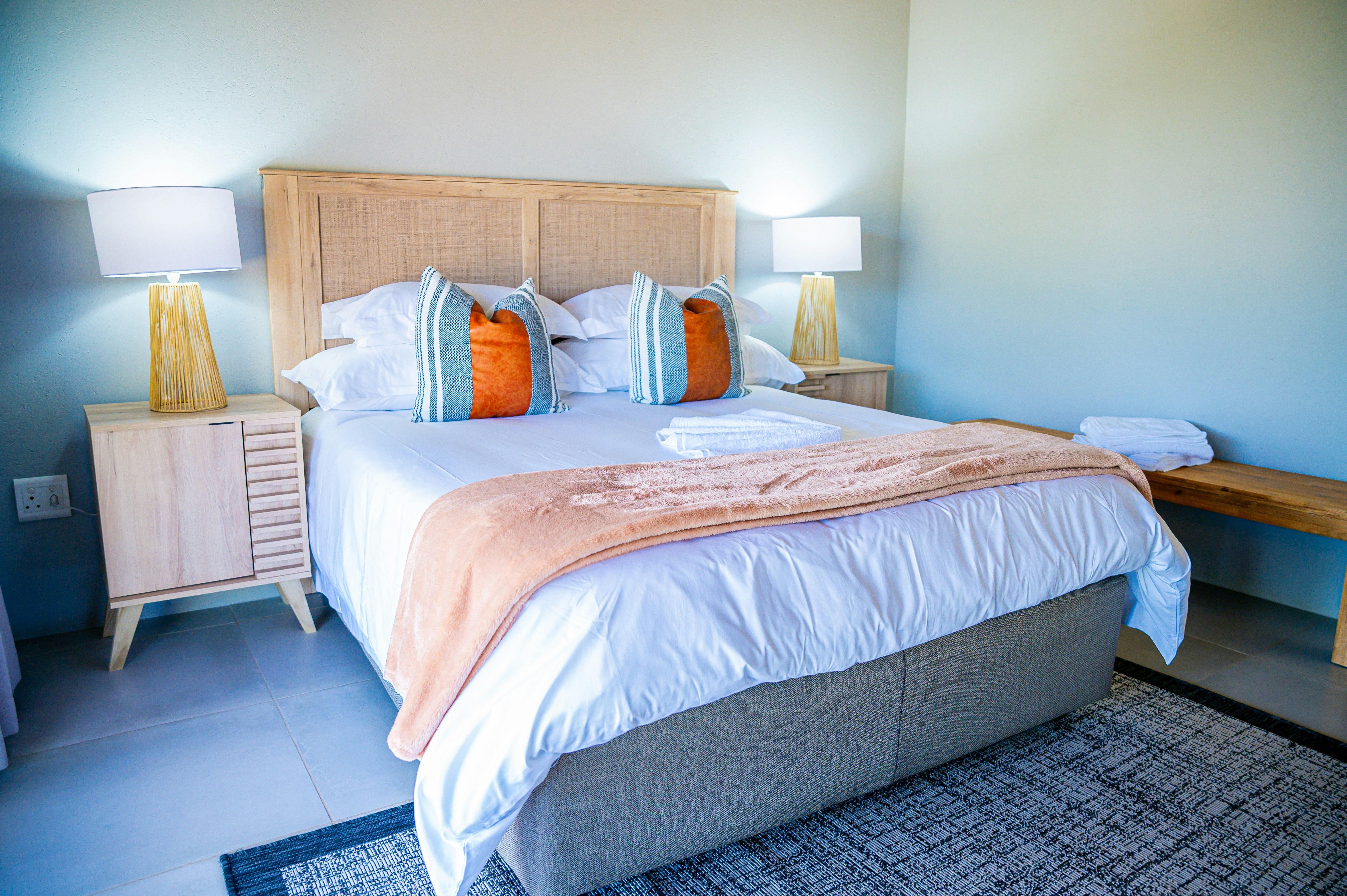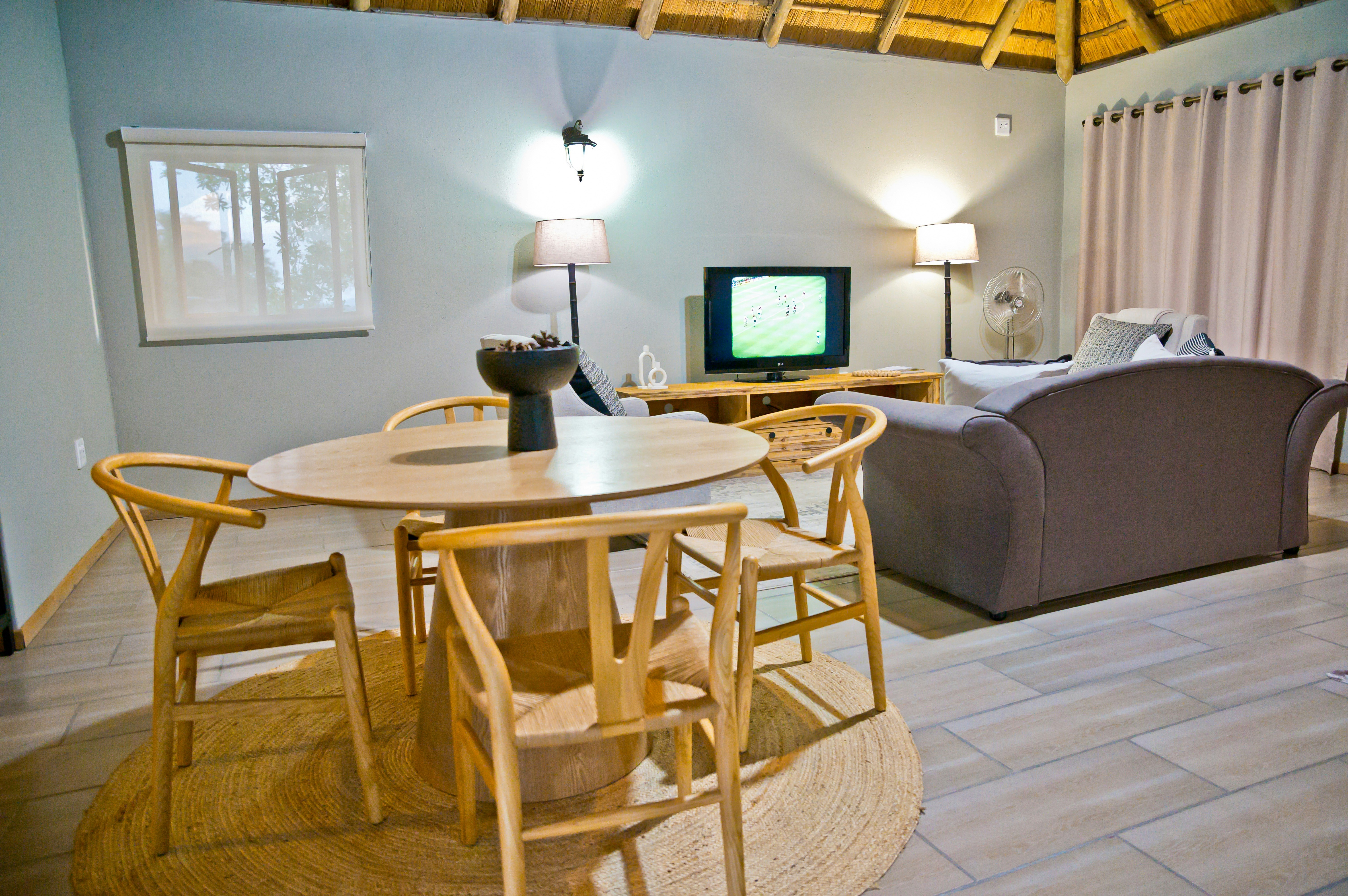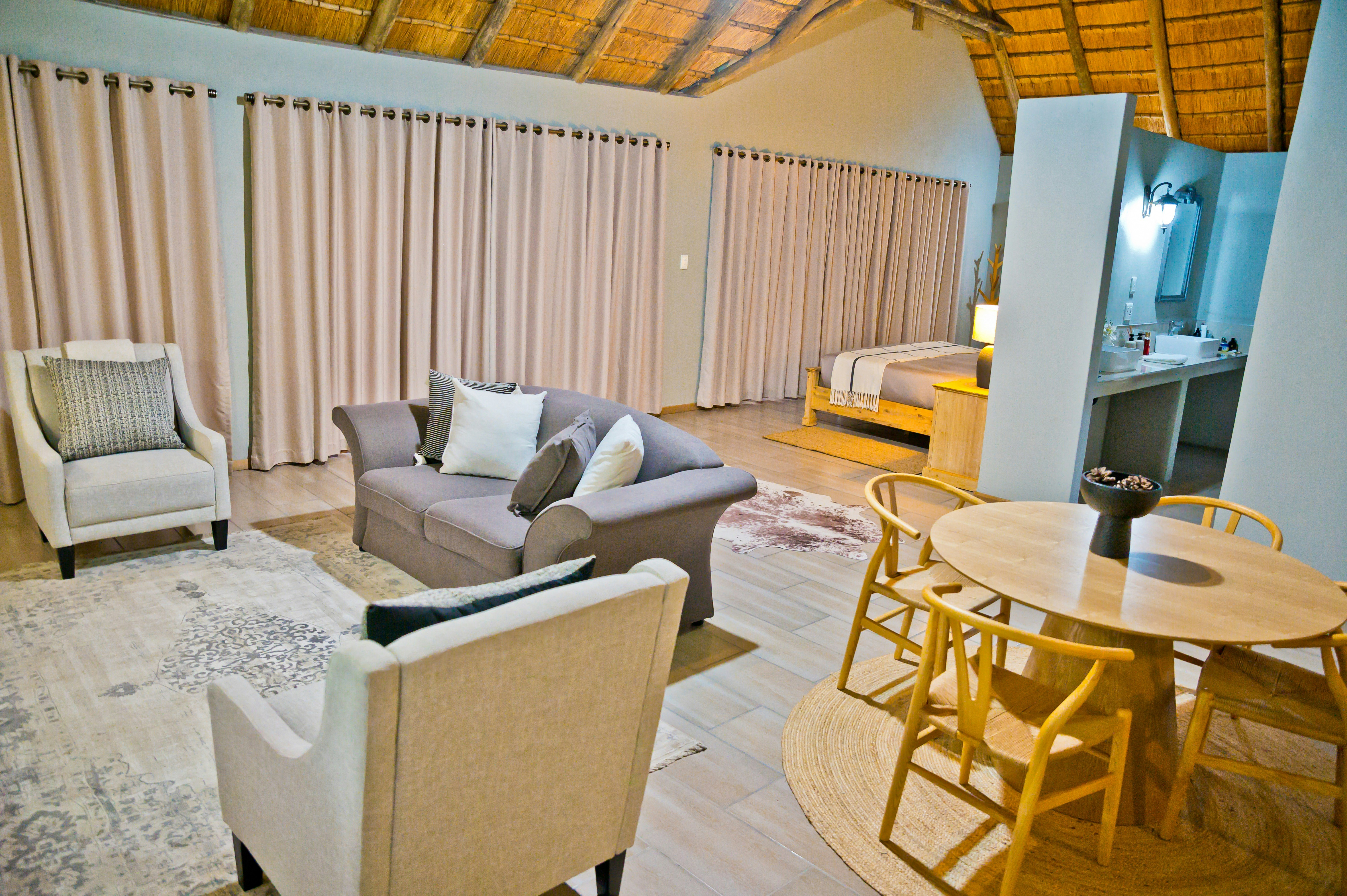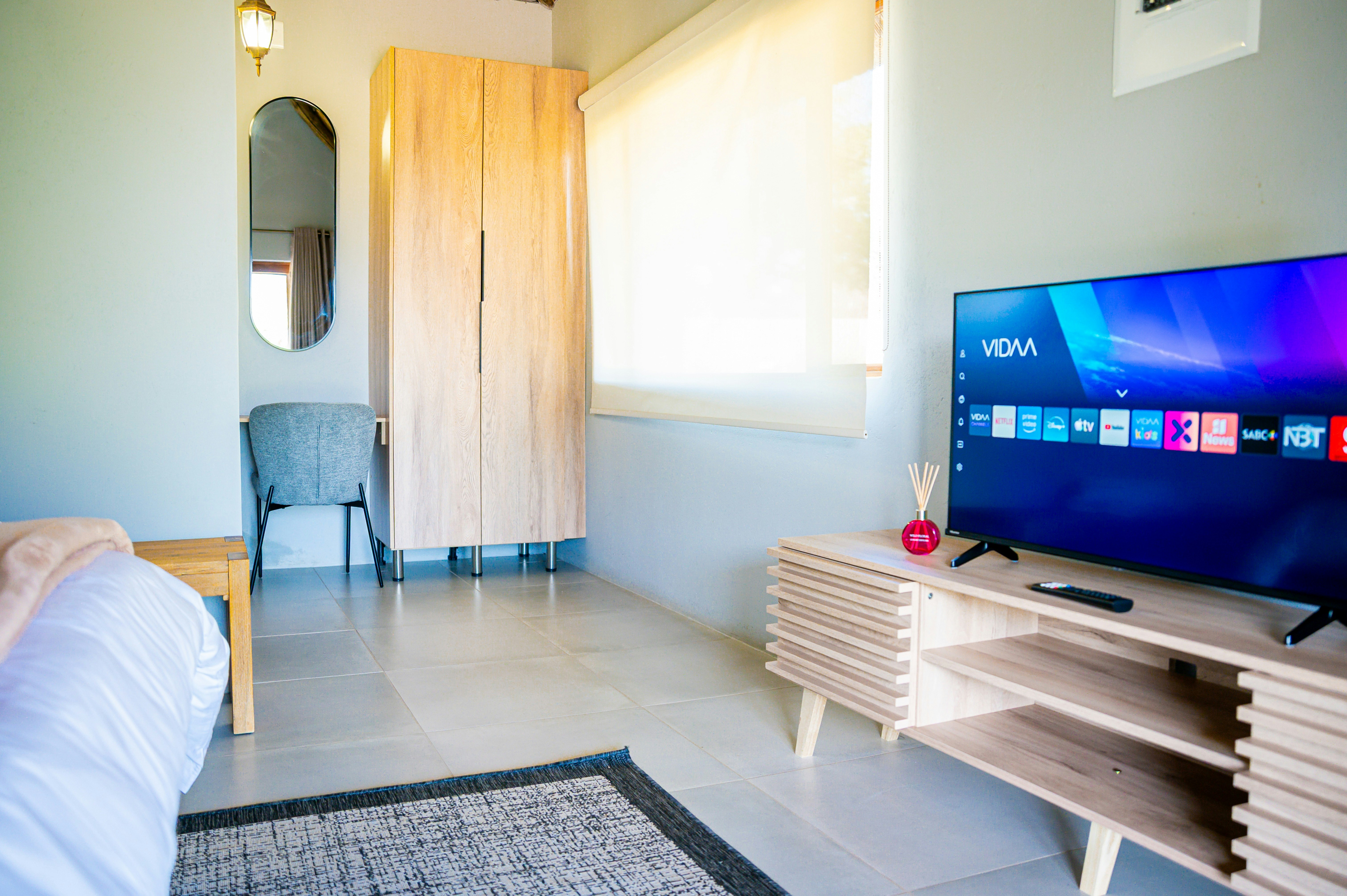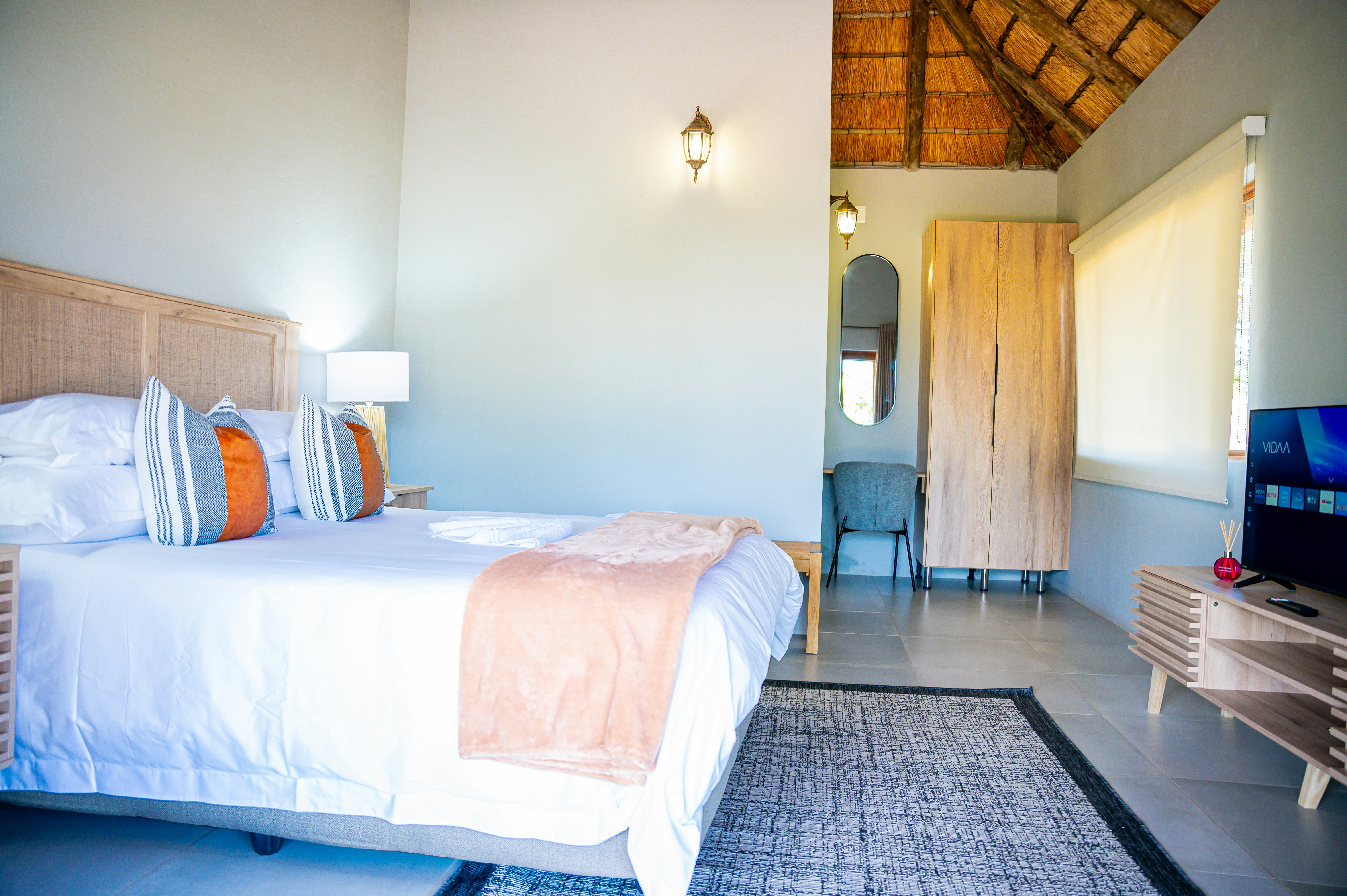 The luxury villa is an open-plan unit furnished with a king-size bed and a bathroom fitted with a shower, spa bath, toilet, and basin. The open-plan living area offers a dining table, work space, tea and coffee-making station, comfortable seating, a TV with streaming options, and Wi-Fi for your convenience. The villa leads out to a covered patio where you can enjoy your morning coffee.