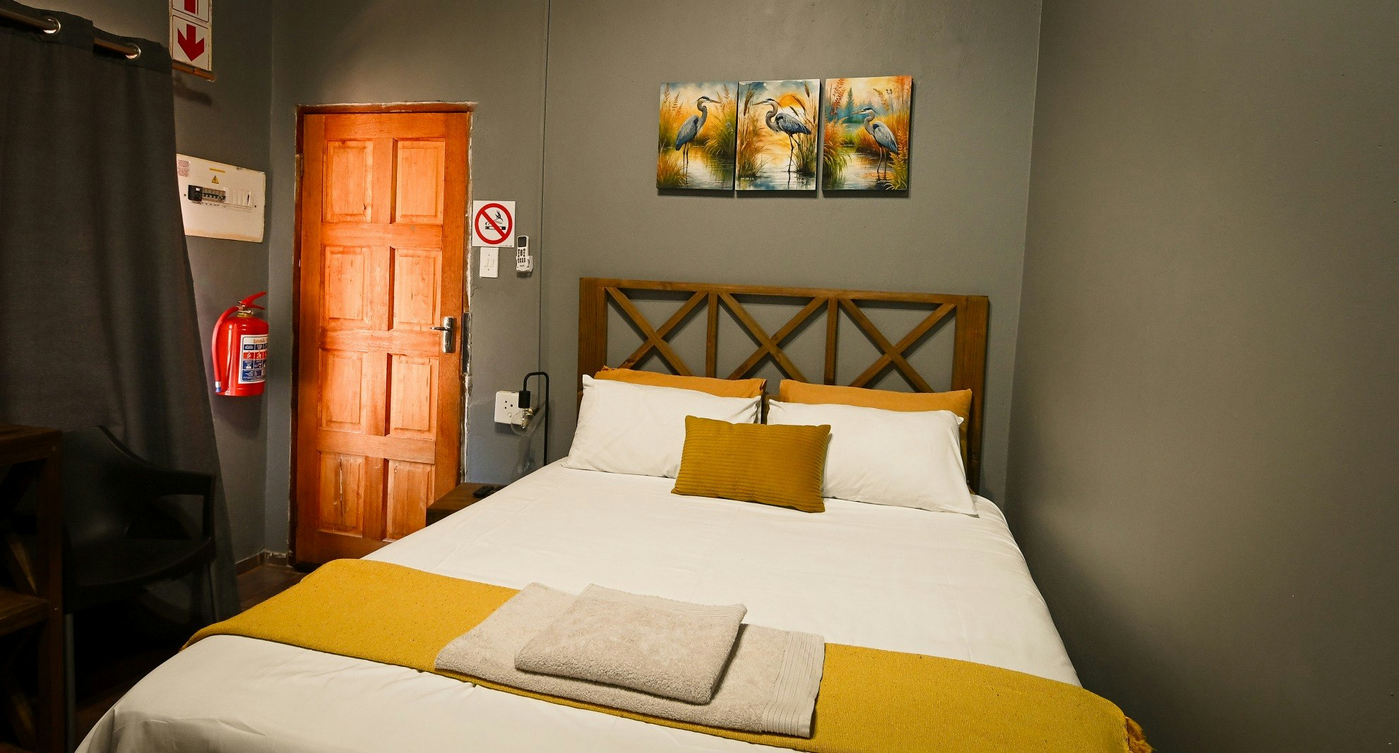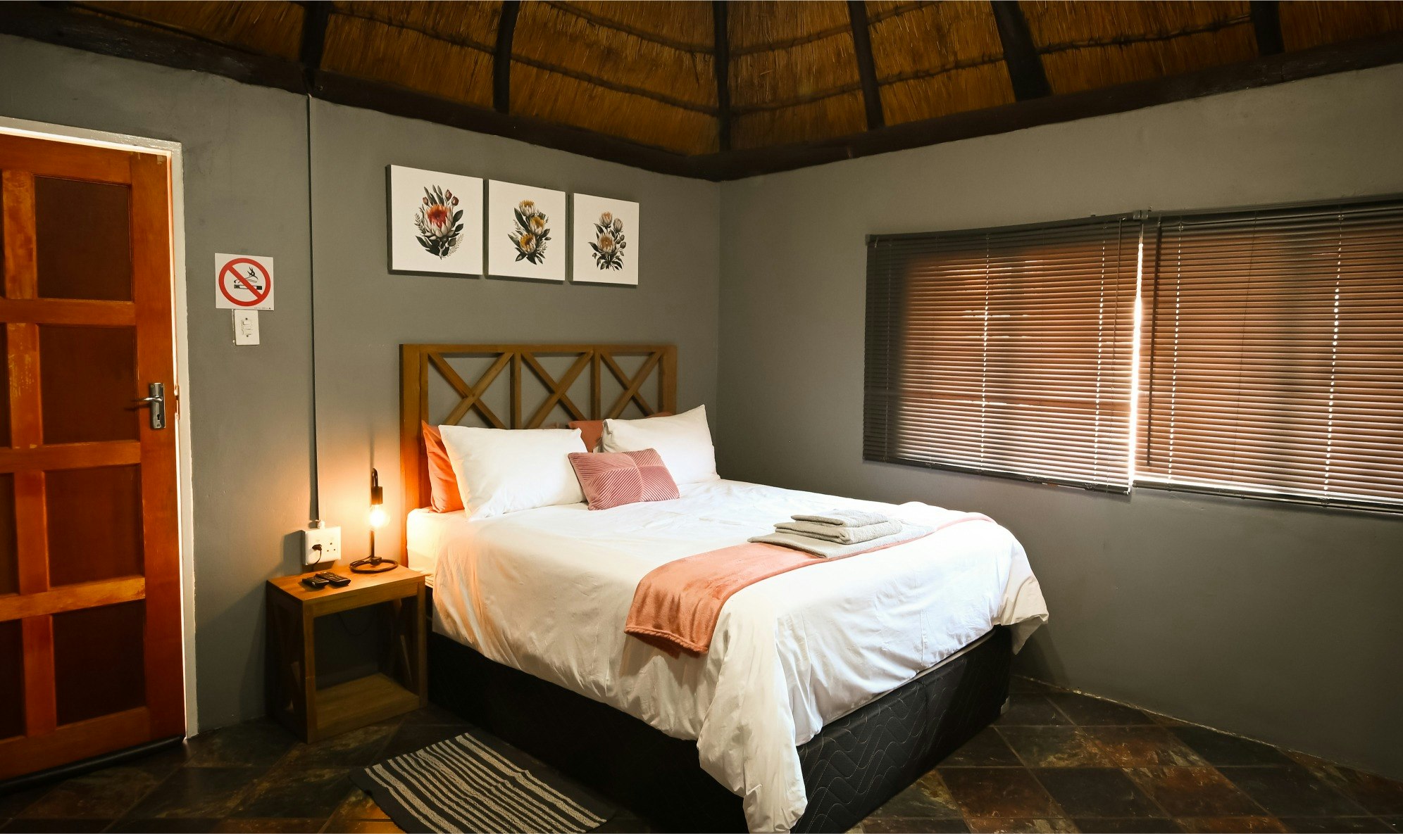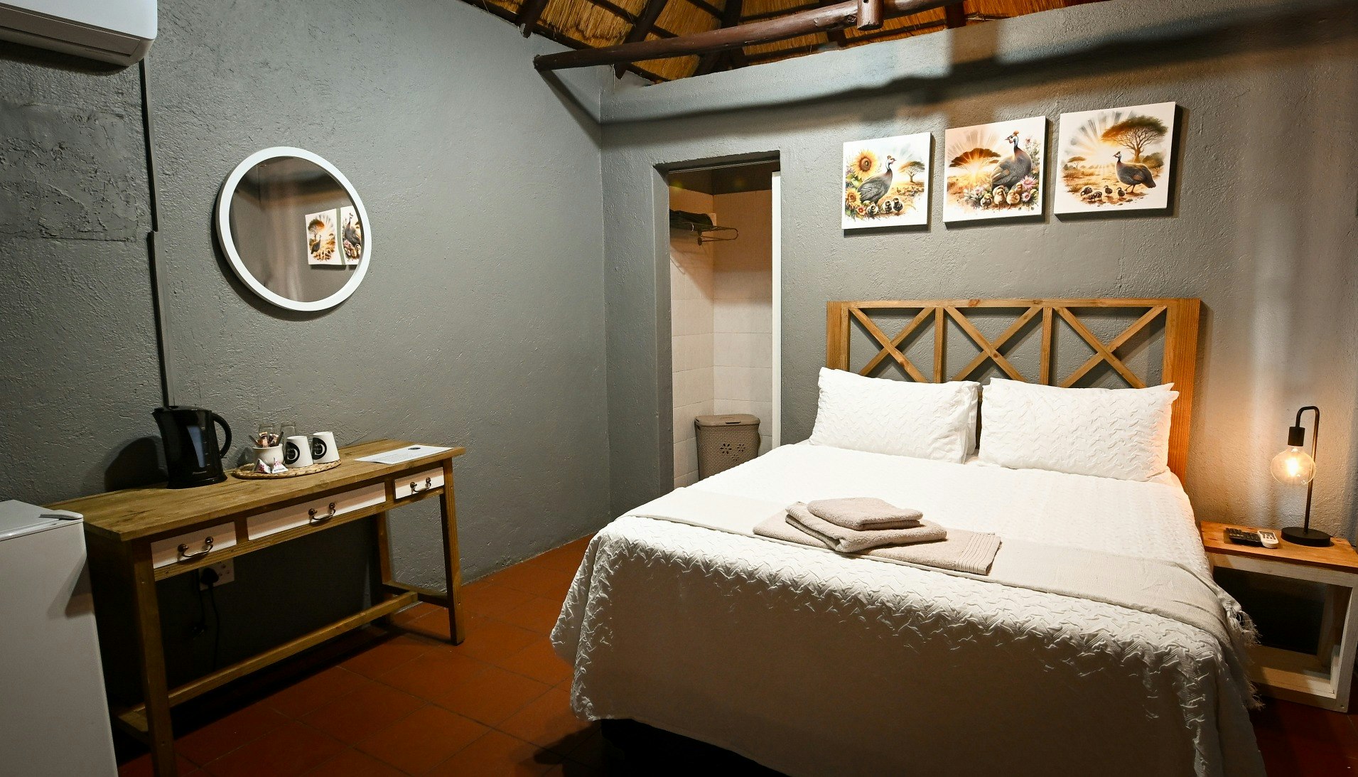 Die lodge beskik oor 10 pragtige chalets, elk met 'n en suite-badkamer. Die kamers het gemaklike beddens, sagte duvets, kraakvars linne en privaat ingange. Bykomende geriewe sluit TV's met DStv en WiFi in, tesame met yskassies, tee- en koffiemaakgeriewe, en toegewyde werkstasies in die chalets.