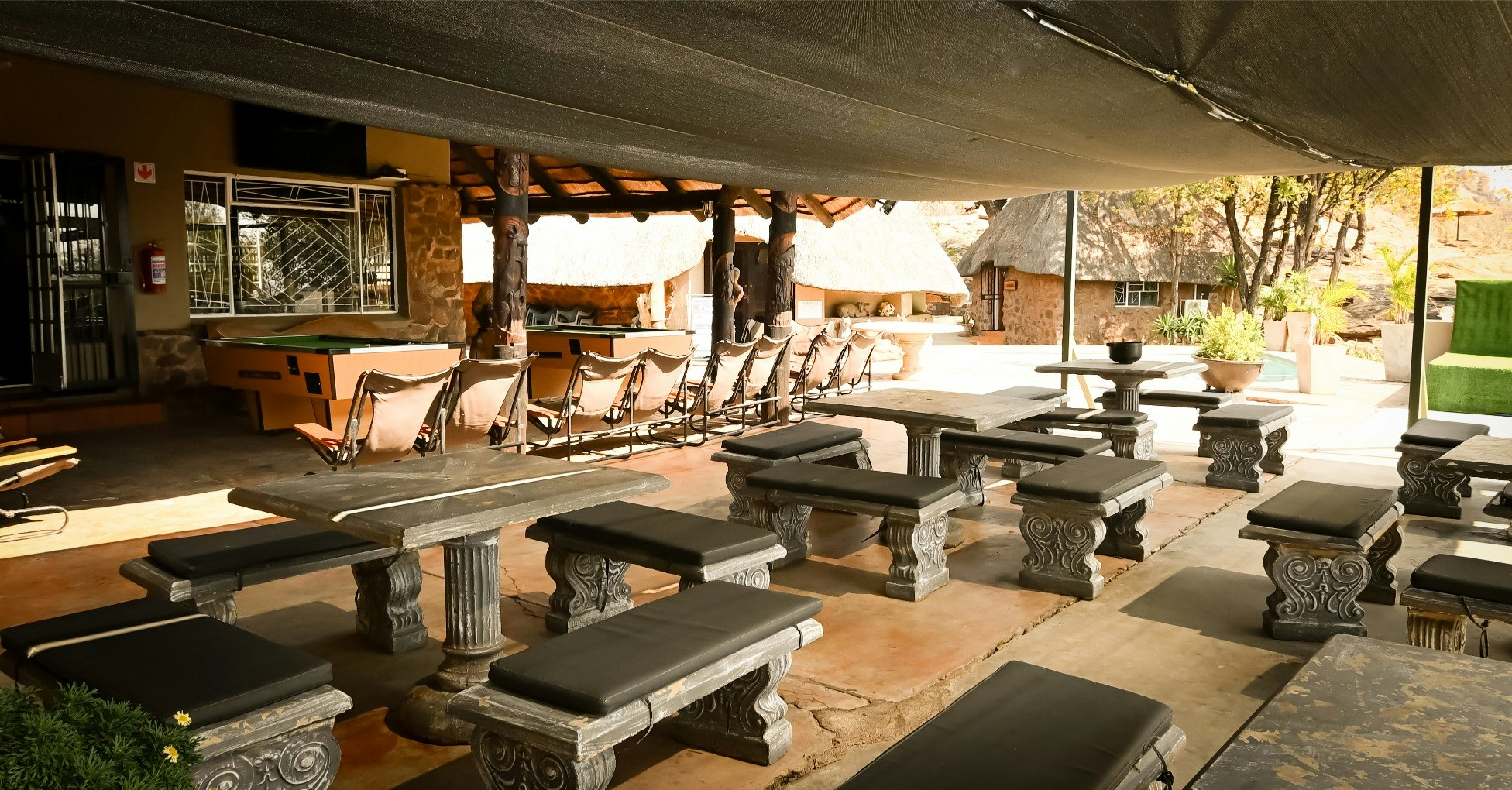 Die lodge beskik oor 'n kroeg, restaurant en verfrissende swembad op die perseel, tesame met lieflike tuine wat perfek is vir ontspanning. Veilige parkeerplek is ook beskikbaar.