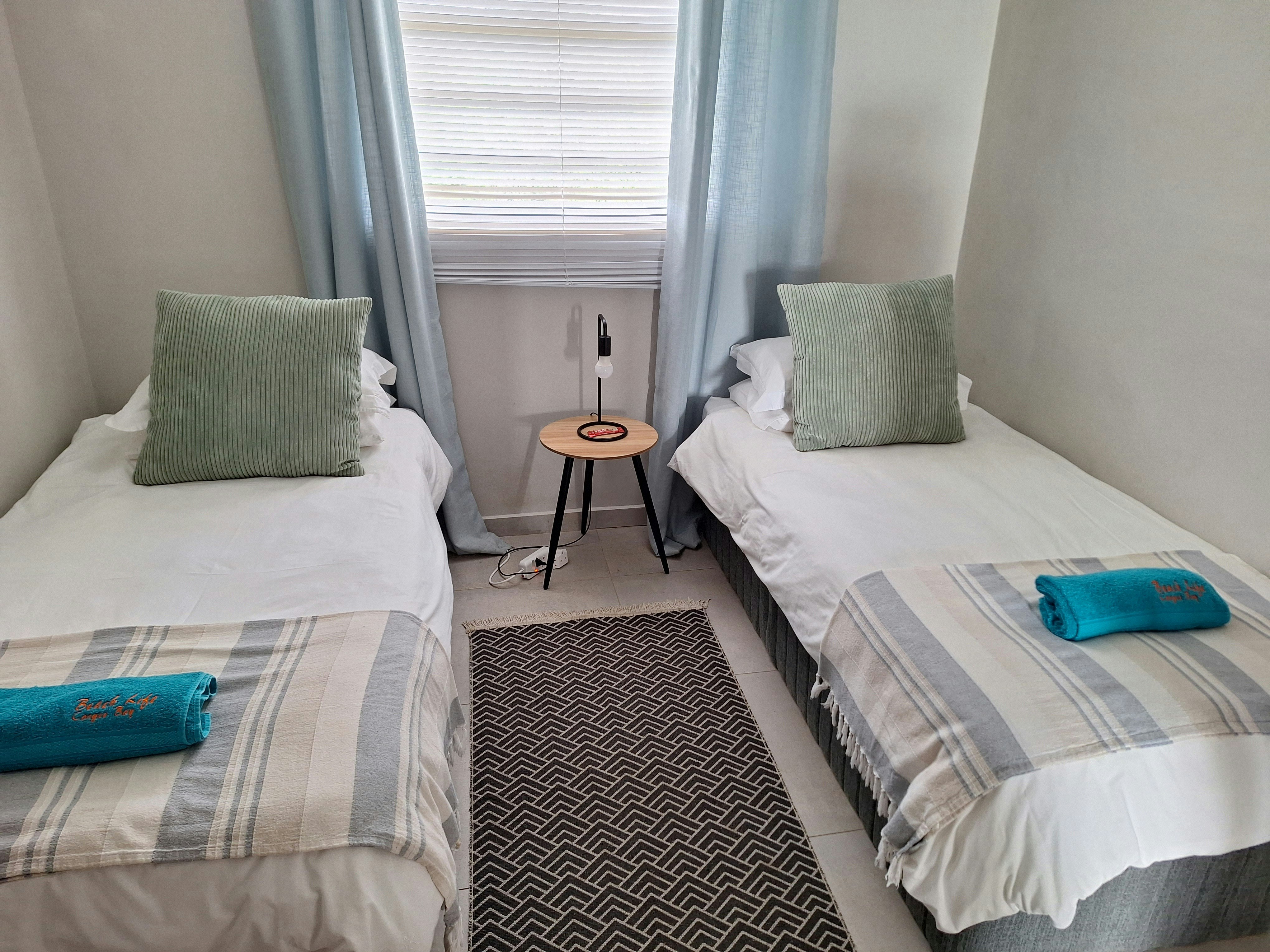 This apartment can comfortably accommodate 4 guests at a time and comprises 2 bedrooms and a bathroom. The main bedroom has ocean views and is furnished with a double bed, while the second bedroom contains 2 single beds. A shower, washbasin and toilet are available in the bathroom. All linen and bath towels are provided; however, guests are required to bring their own beach towels.