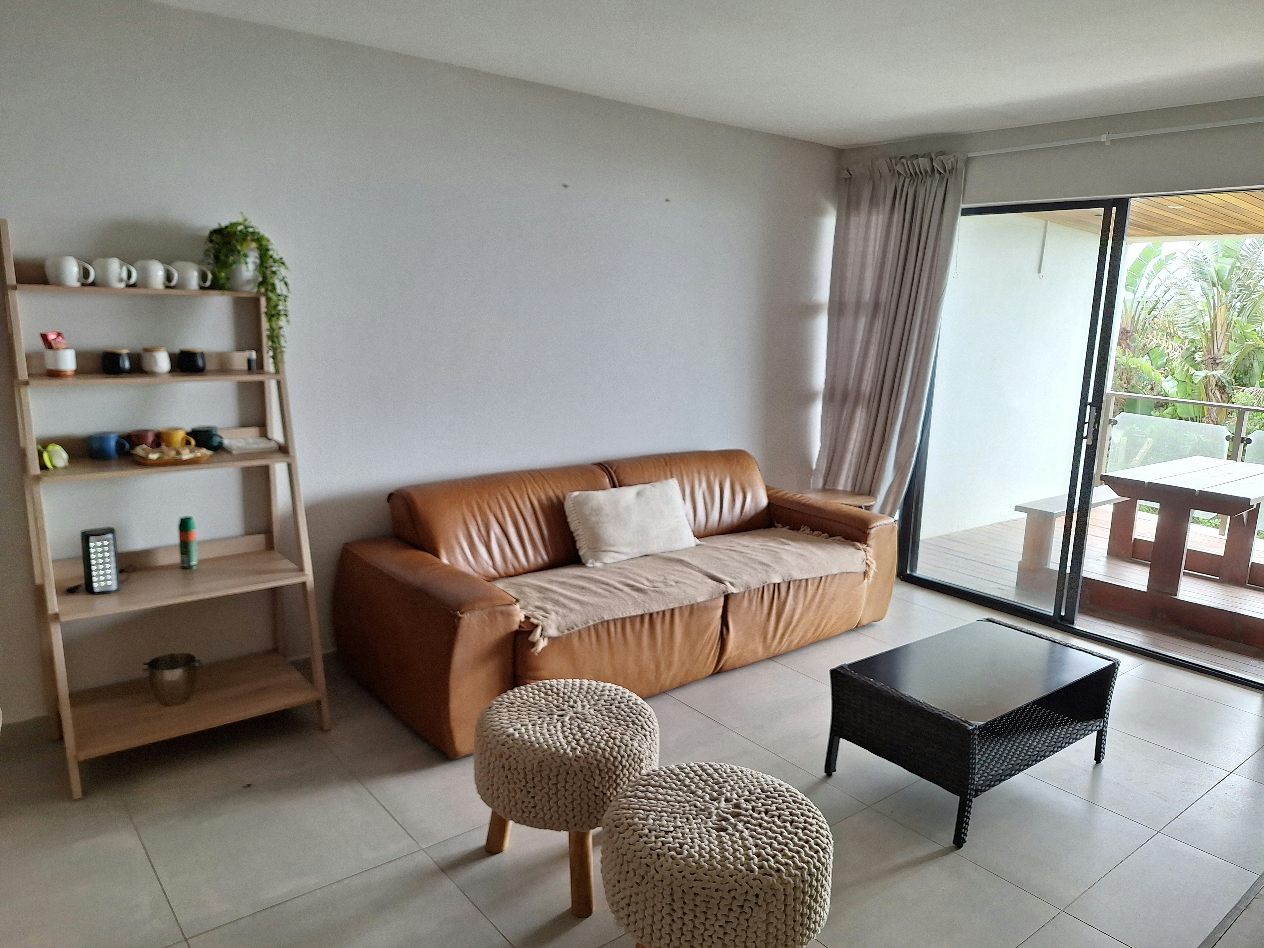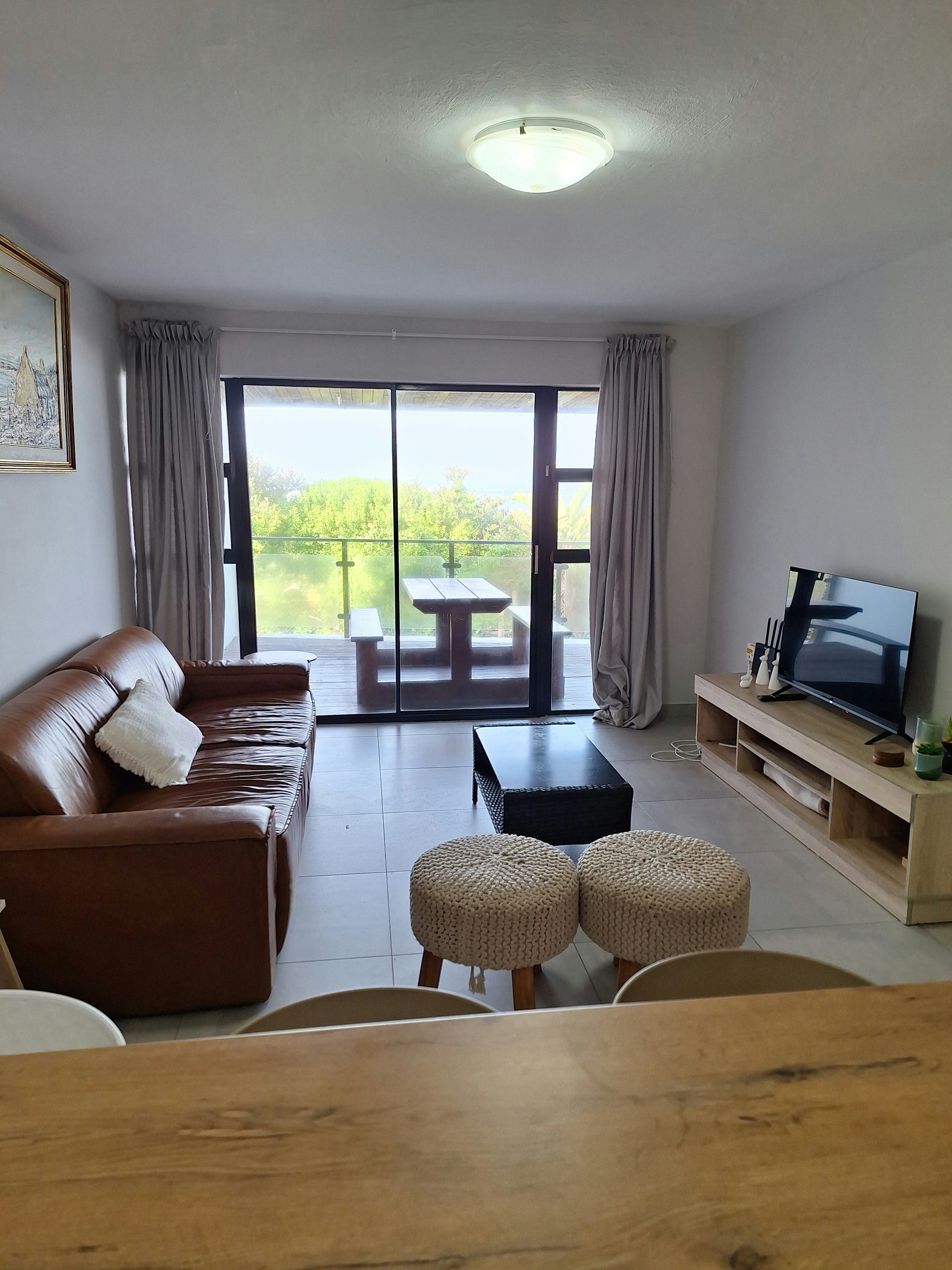 Through the sliding door, there is a covered balcony with outdoor seating which is an ideal spot for a sundowner while overlooking the ocean. Guests are afforded secure parking inside the complex.