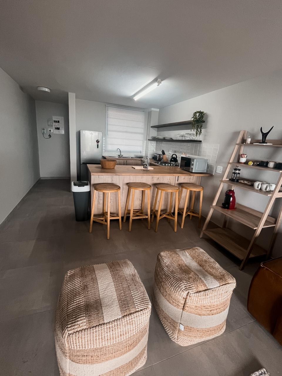 The open-plan living area features a kitchen fully equipped with a stove, oven, microwave, fridge-freezer, cutlery and crockery as well as a breakfast bar with stools. Leading from the kitchen is a cosy lounge with comfy seating and a TV with Netflix. Access to free Wi-Fi is available.