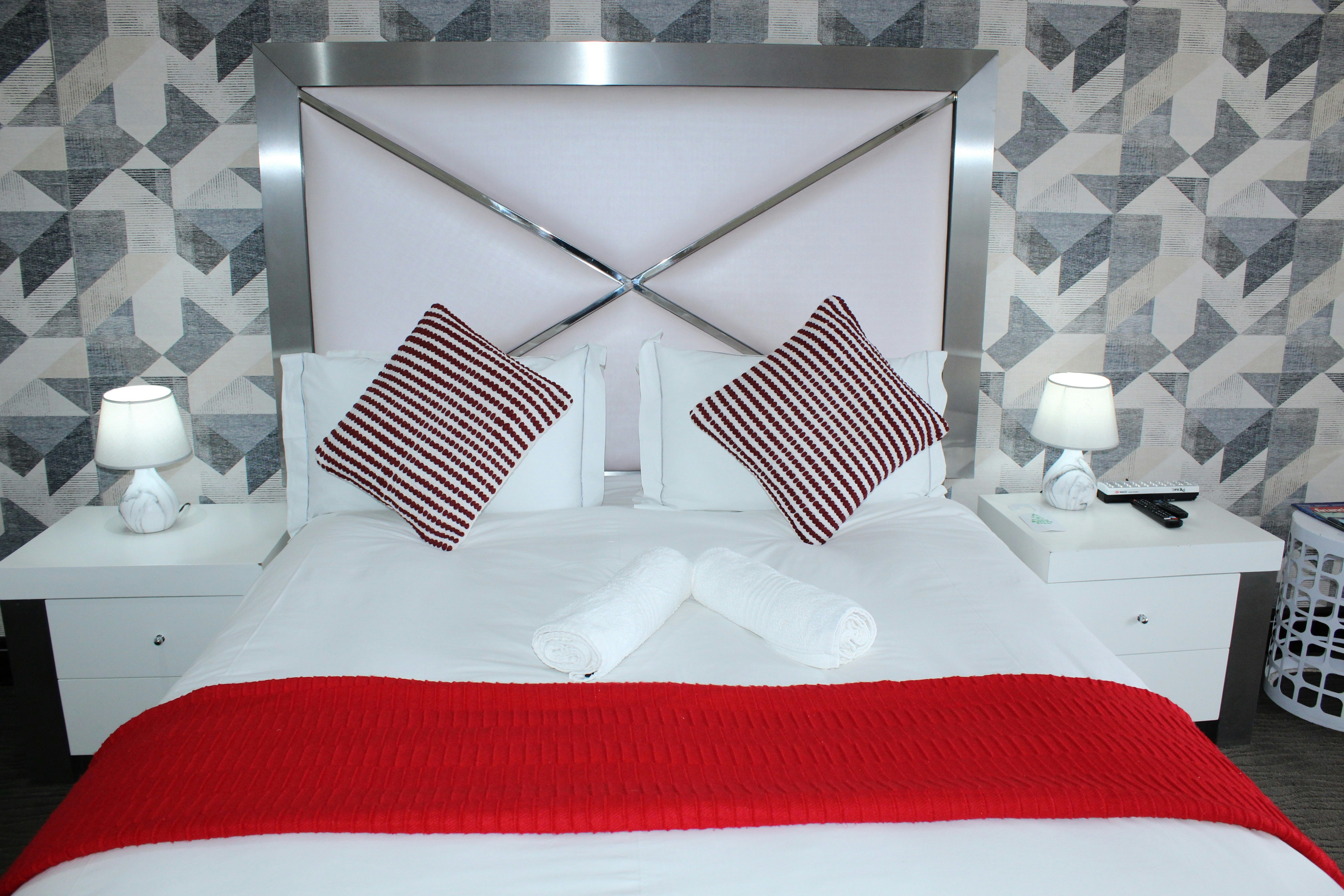 Die kamers het elkeen 'n koninggrootte-bed of 'n koningingrootte-bed en moderne ingeboude kaste, en sommige van die kamers het 'n balkon of 'n patio. Elke kamer het ook 'n plafonwaaier, 'n TV met sekere DStv-kanale, 'n yskassie, en tee- en koffiemaakgeriewe.