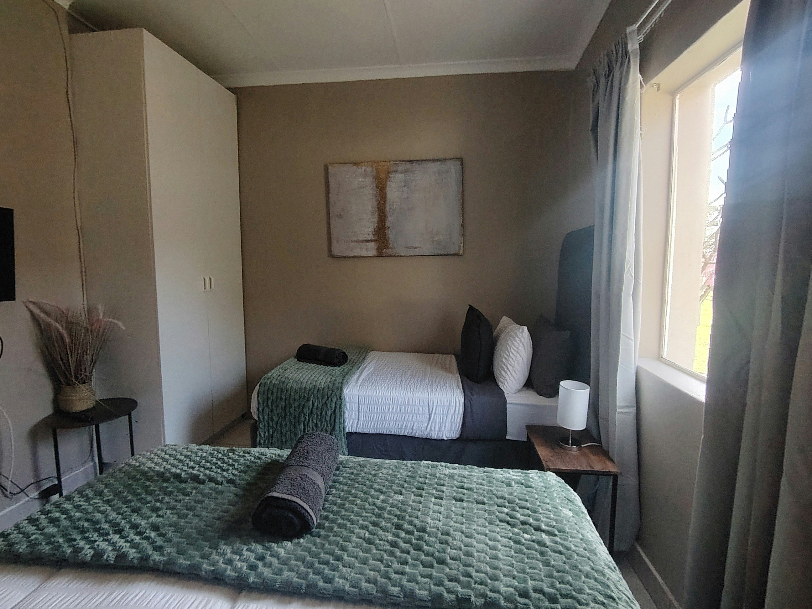 The apartment can accommodate up to 3 guests in a spacious en-suite bedroom furnished with a double and a single bed. The room also includes a TV with DStv channels, providing a cozy space to unwind. The bathroom is fitted with a shower, and Wi-Fi is available throughout the unit for added convenience.