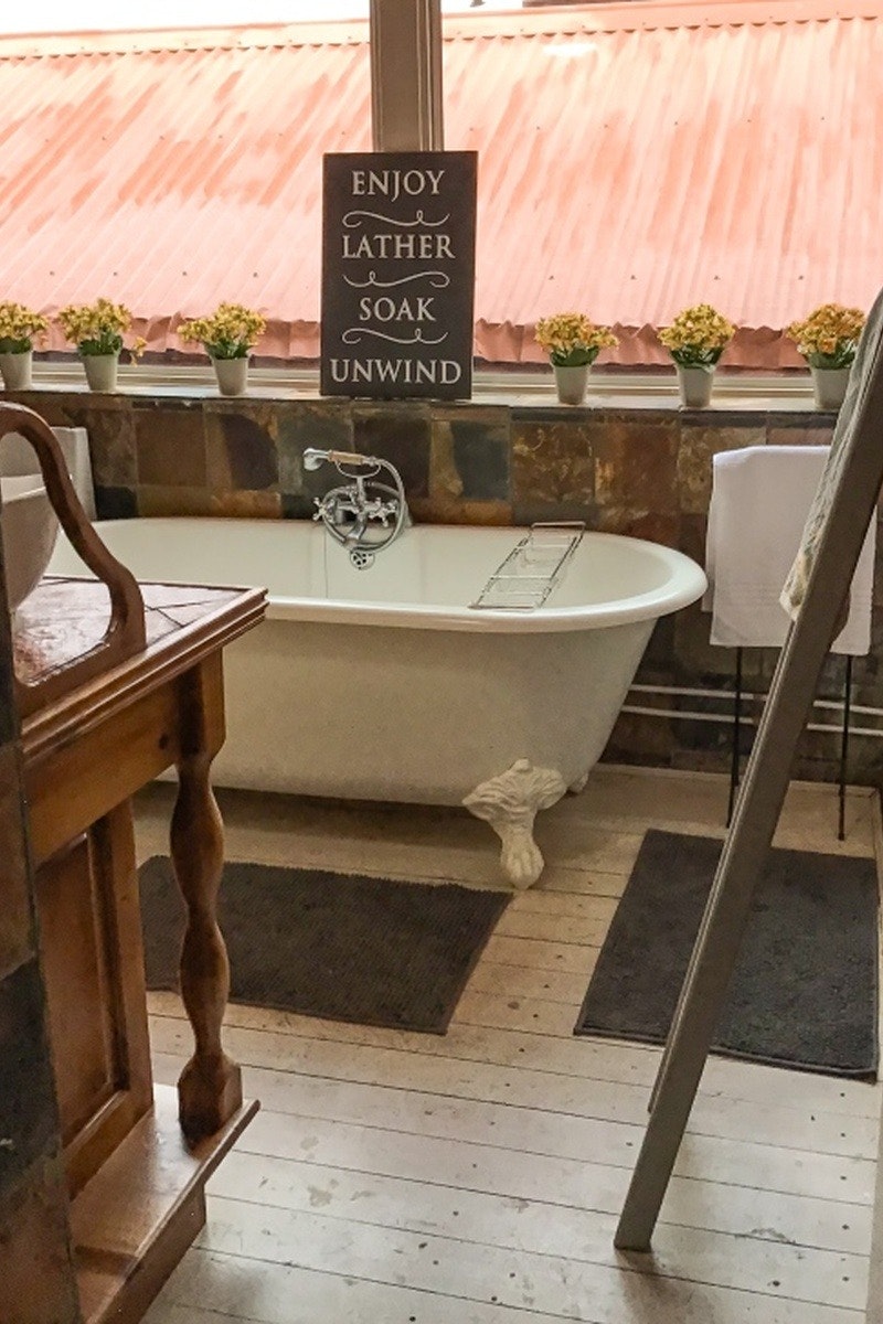 Die eiendom bied slaapplek vir 6 volwassenes en 2 kinders en bestaan uit 3 slaapkamers en 1 badkamer. Die eerste en tweede slaapkamers het elk 'n koninggrootte bed, terwyl die derde slaapkamer 'n dubbelbed het. Die gedeelde badkamer is toegerus met 'n vrystaande Victoriaanse bad en 'n stort. Linne en badhanddoeke word voorsien.
