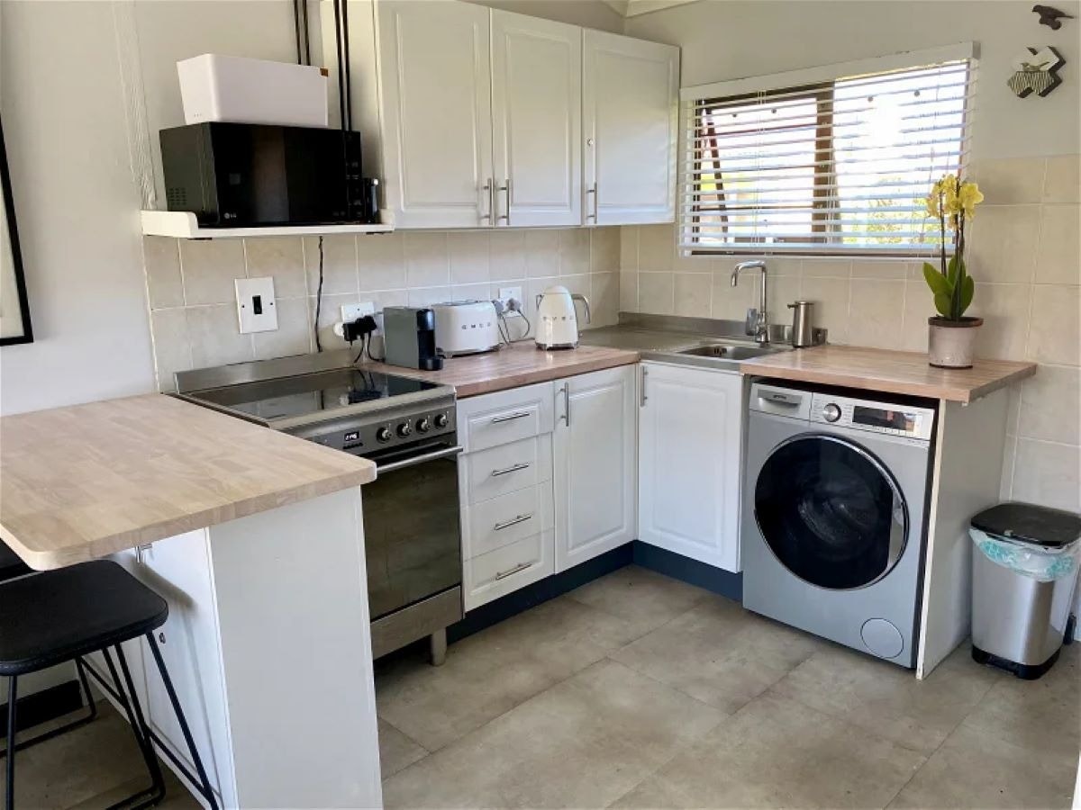 Die oopplan-leefarea het 'n kombuis wat met 'n mikrogolf, oond, stoof, wasmasjien, eetgerei, breekware en tee- en koffiemaakgeriewe toegerus is. Die leefarea het 'n etenstafel, rusbank en 'n TV met Netflix en DStv.