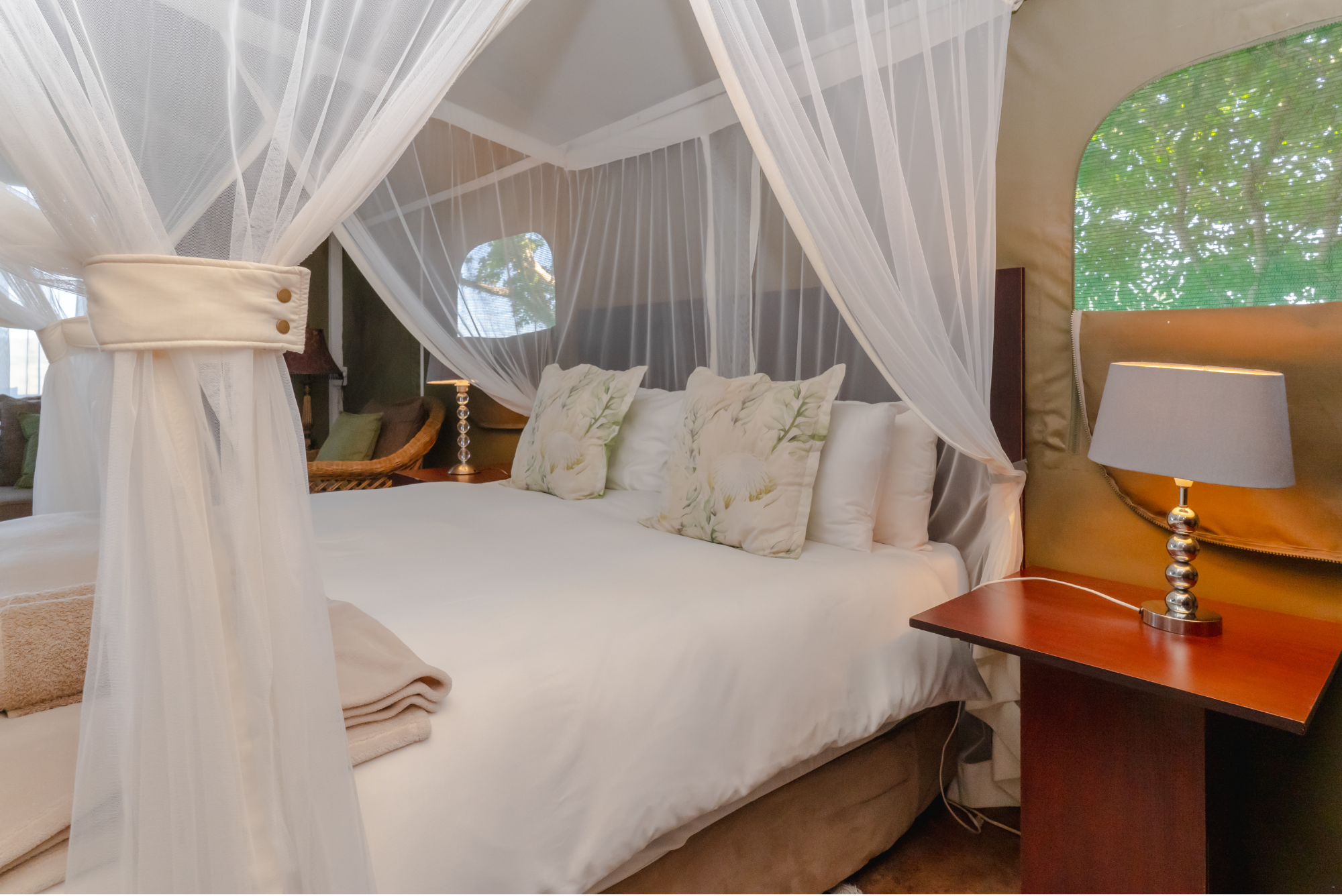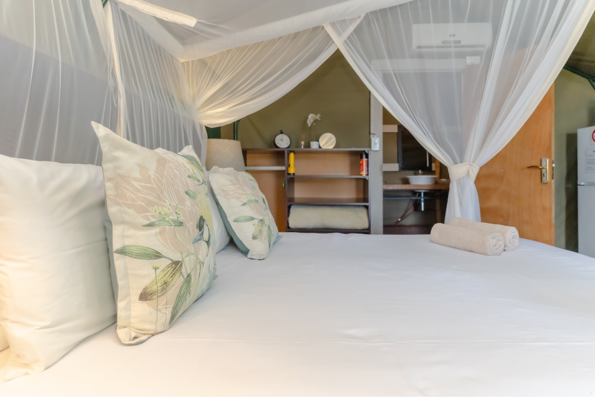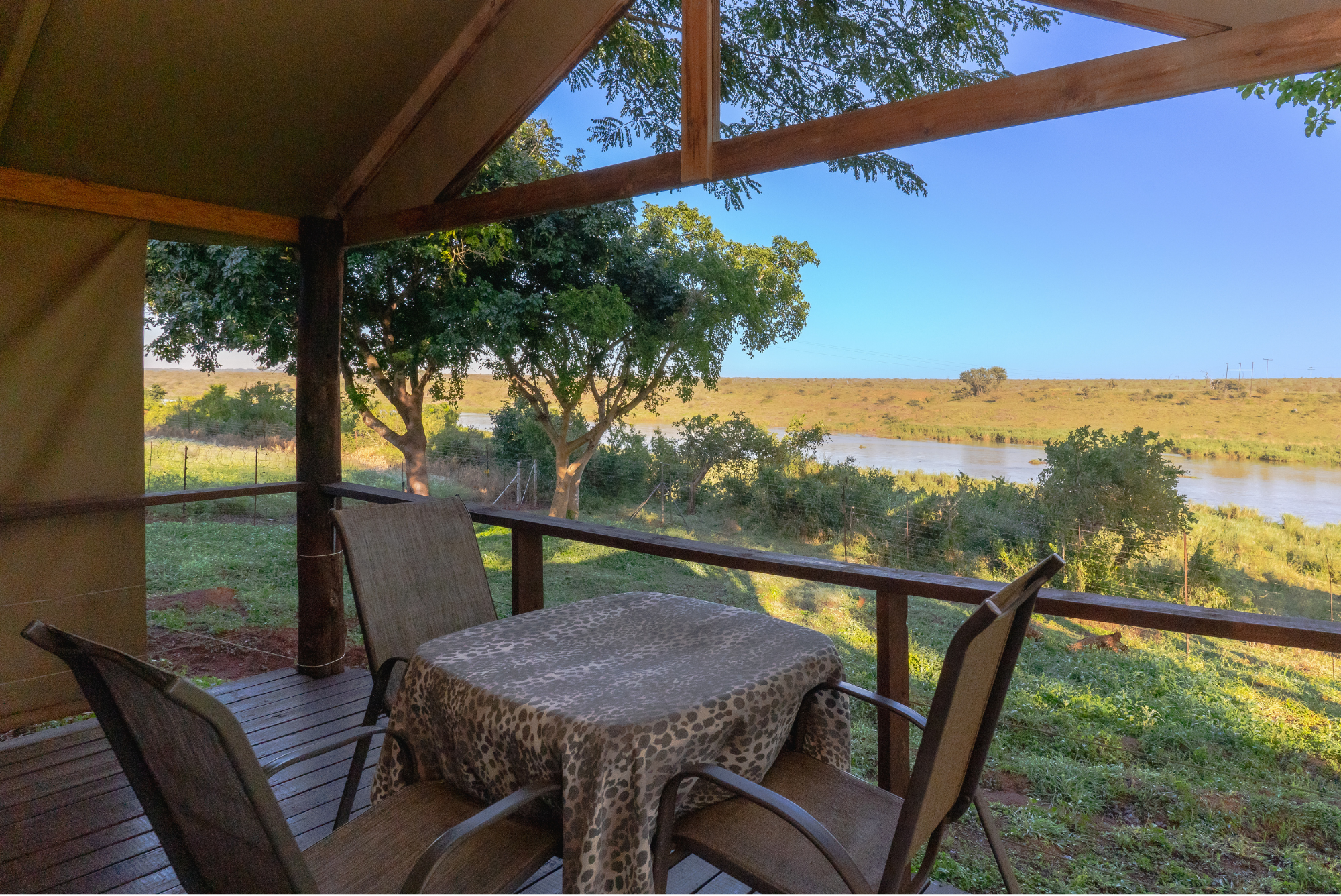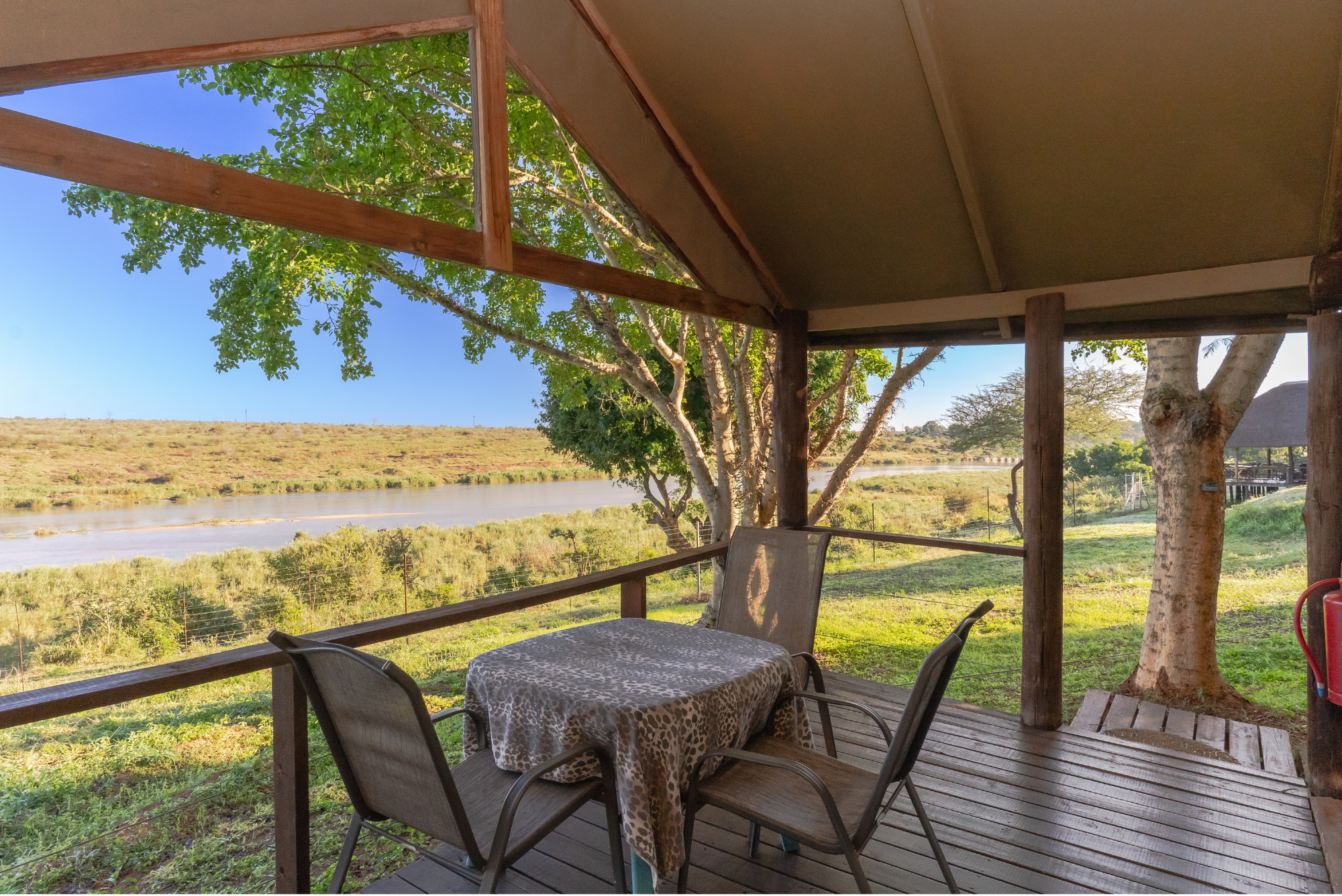 Verblyf is beskibaar in 10 tente en chalets wat geskik is vir 20 gaste. Die eenhede sluit die Luukse Rivierfront-dubbeltent met 'n privaat dek, Luukse Dubbelbedtente, en 4 Rivierfront-kamers met stoep in, net 4 m van die Krugerwildtuin se heining af. Alle kamers en eenhede het gemaklike beddens, en suite-badkamers met stort, lugversorging en koffie- en teemaakgeriewe. Van die eenhede het kombuisies.
