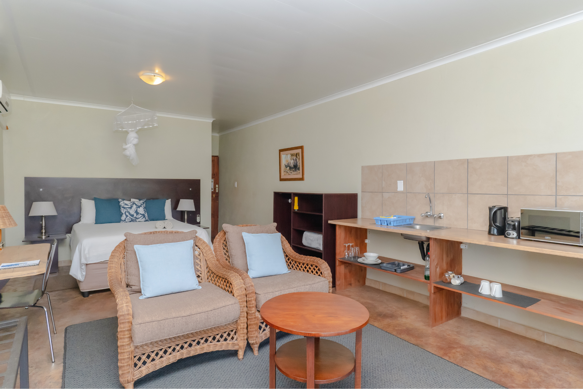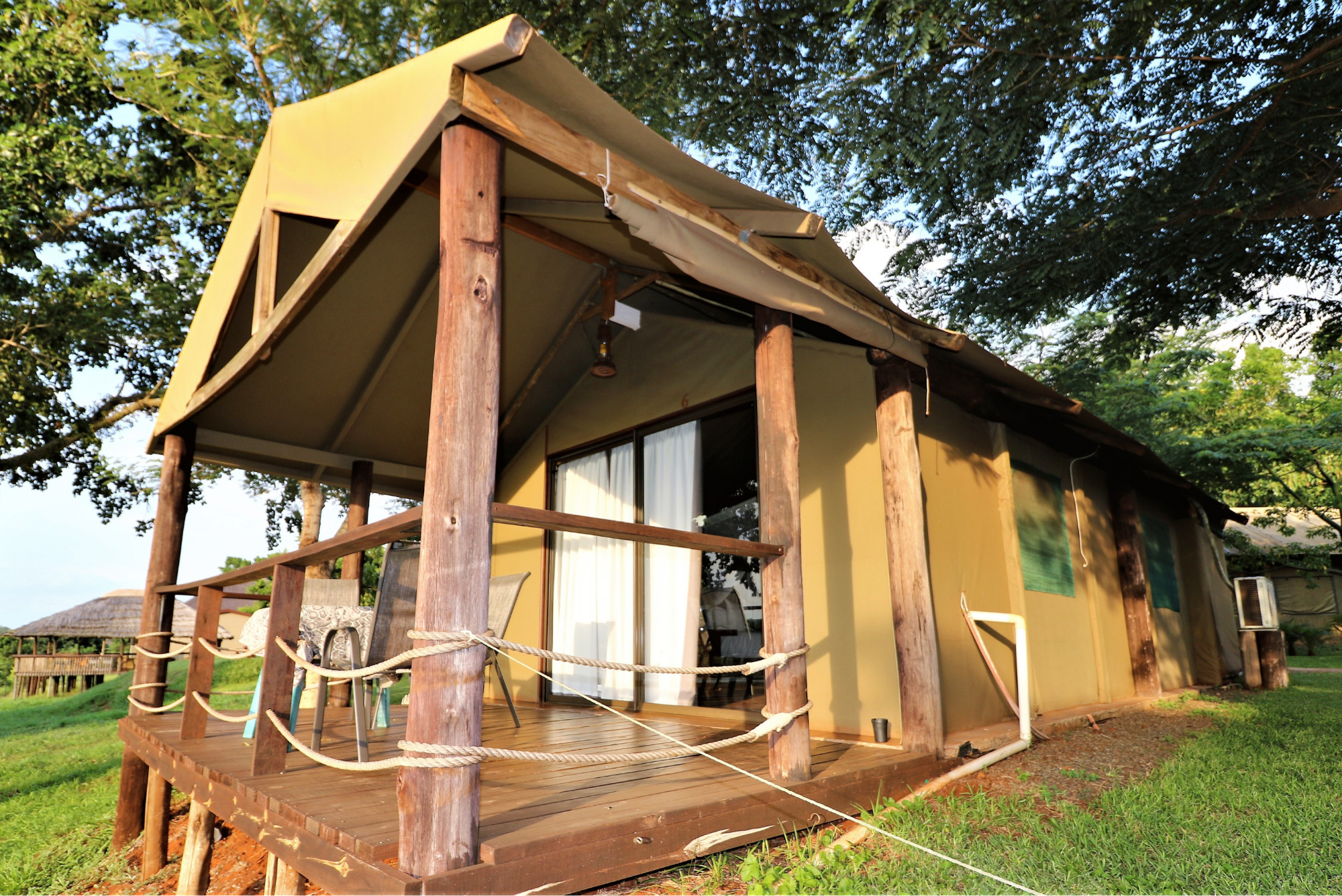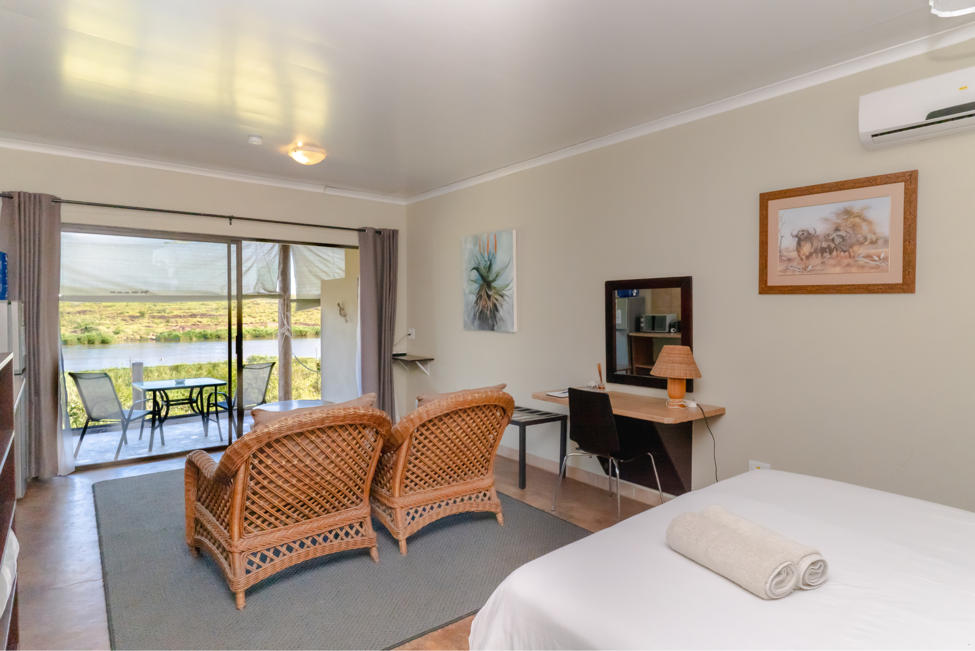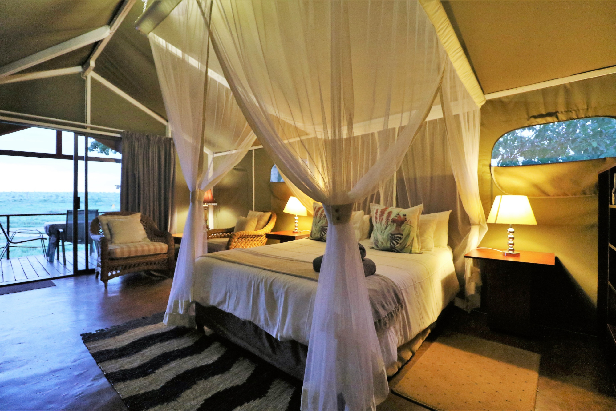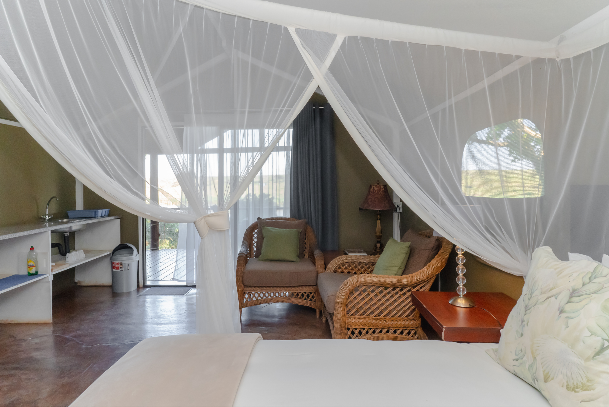 Verblyf is beskibaar in 10 tente en chalets wat geskik is vir 20 gaste. Die eenhede sluit die Luukse Rivierfront-dubbeltent met 'n privaat dek, Luukse Dubbelbedtente, en 4 Rivierfront-kamers met stoep in, net 4 m van die Krugerwildtuin se heining af. Alle kamers en eenhede het gemaklike beddens, en suite-badkamers met stort, lugversorging en koffie- en teemaakgeriewe. Van die eenhede het kombuisies.