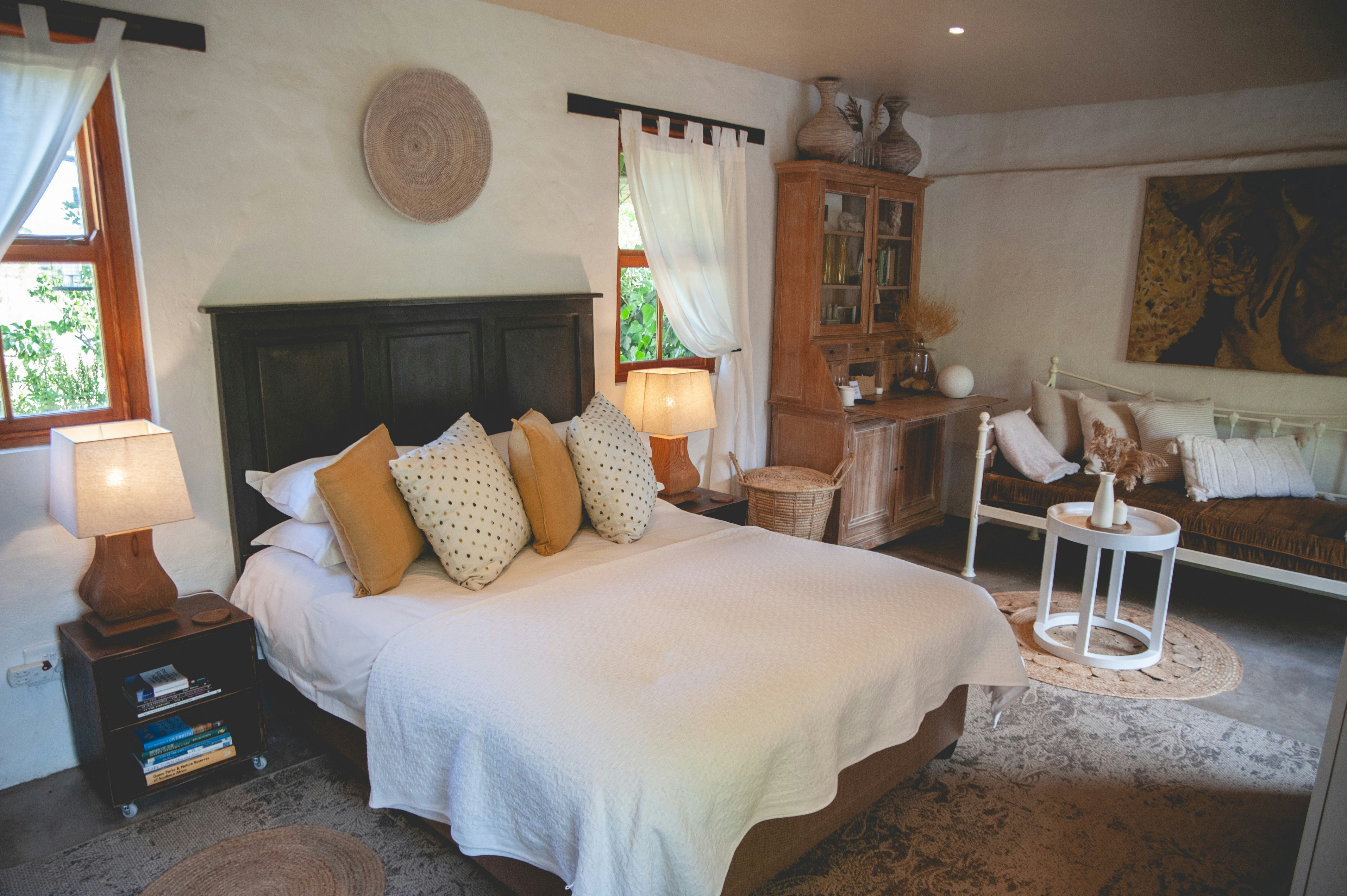 The Cottage is perfect for 2 guests and comprises one bedroom furnished with a queen-size bed and an en-suite bathroom fitted with a shower, toilet, and basin.