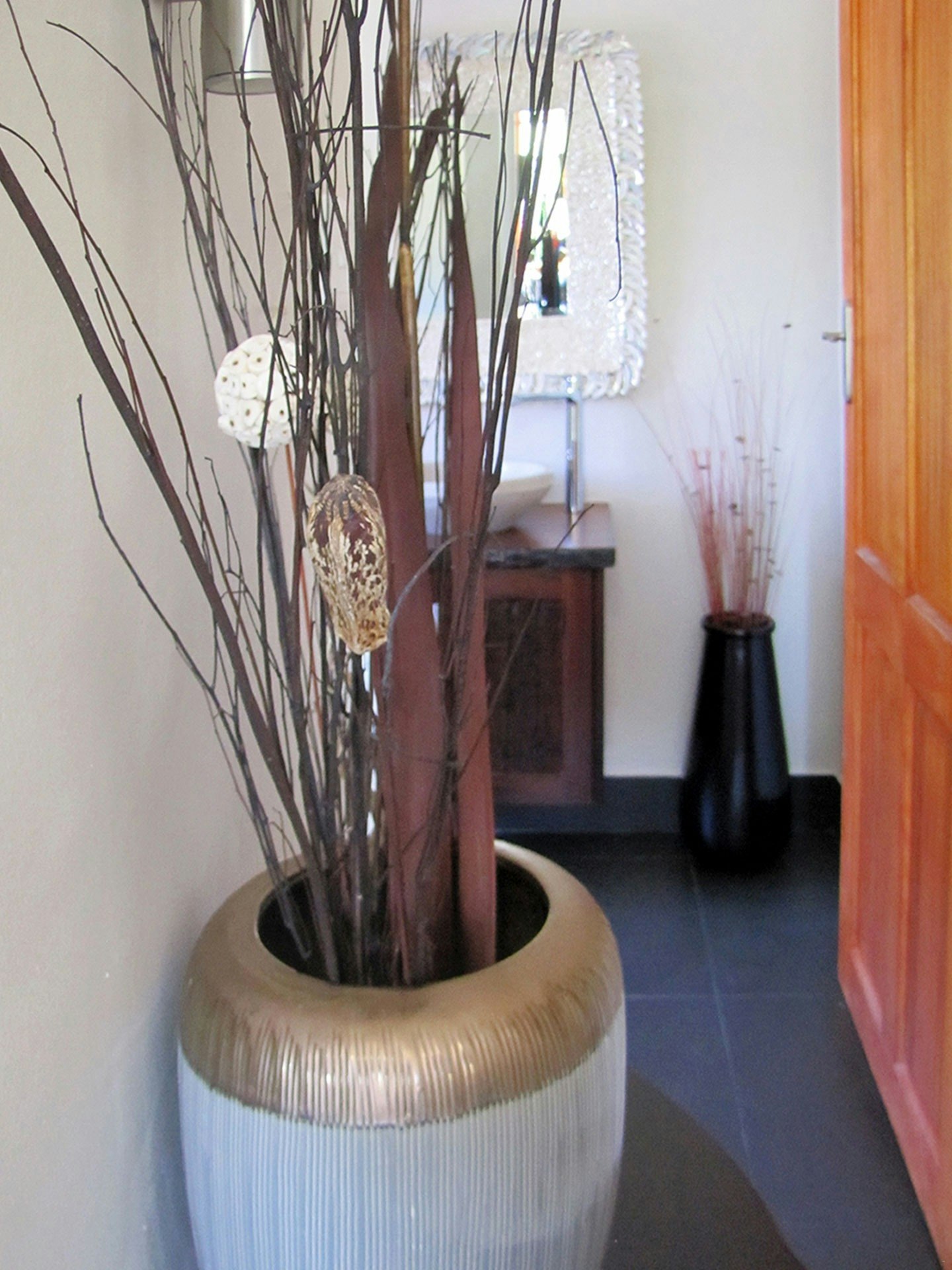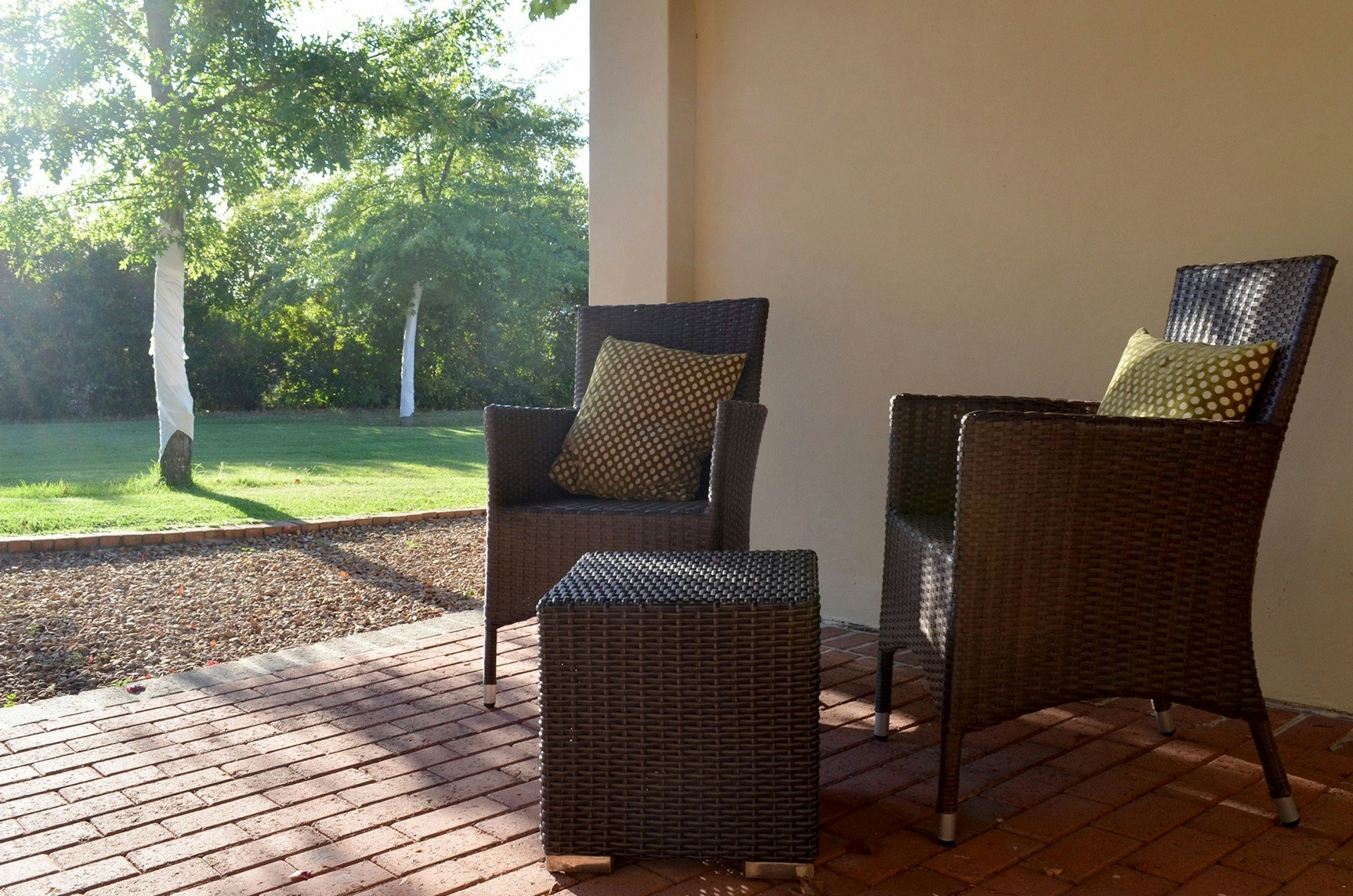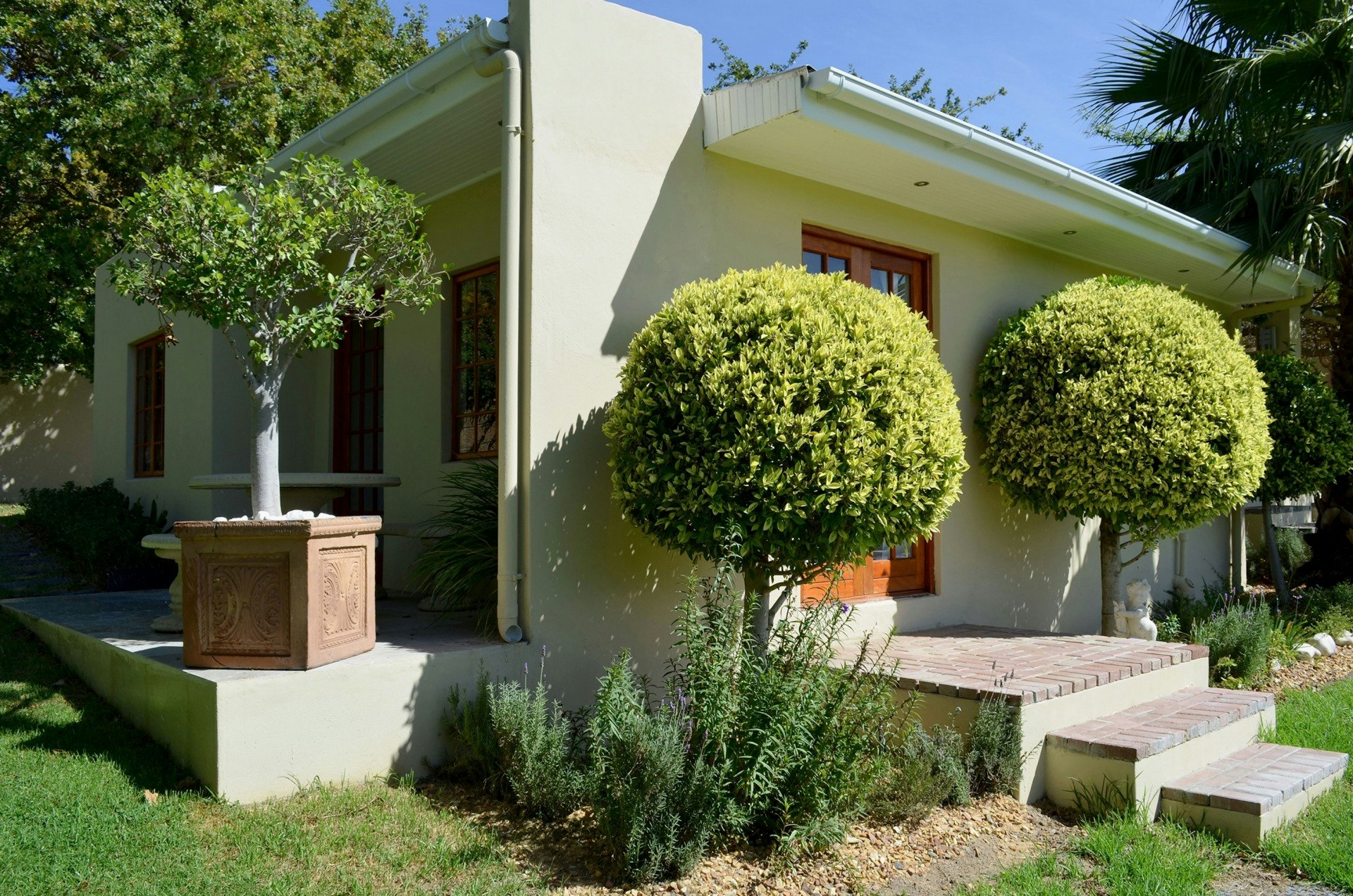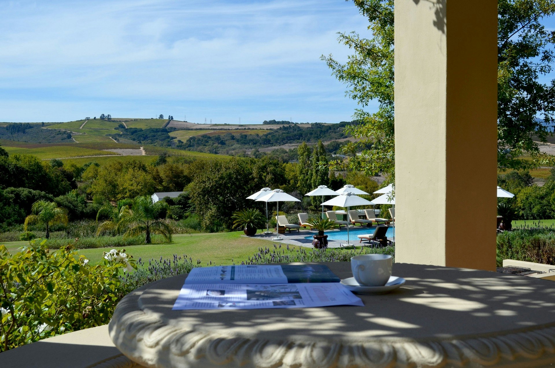 Die unieke boustyl en ontwerp van die hoofhuis, vleuels en balkon staan in perfekte harmonie met die berge, groenigheid en wingerde in die omtrek.