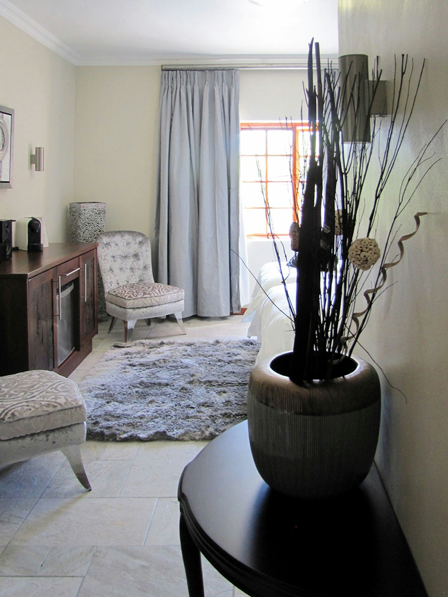 Al 16 kamers is uniek versier. Verblyf word in Standaardkamers, Deluxe-kamers en Superieure kamers aangebied, elk met 'n en suite-badkamer. Kamergeriewe sluit lugversorging, 'n haardroër, iPod-stasie, kluis, tee- en koffiemaakgeriewe en gratis WiFi in. Die meeste kamers het 'n stoepie waar gaste die Suid-Afrikaanse son saam met 'n glas plaaslike wyn en die uitsig op die berge kan geniet.