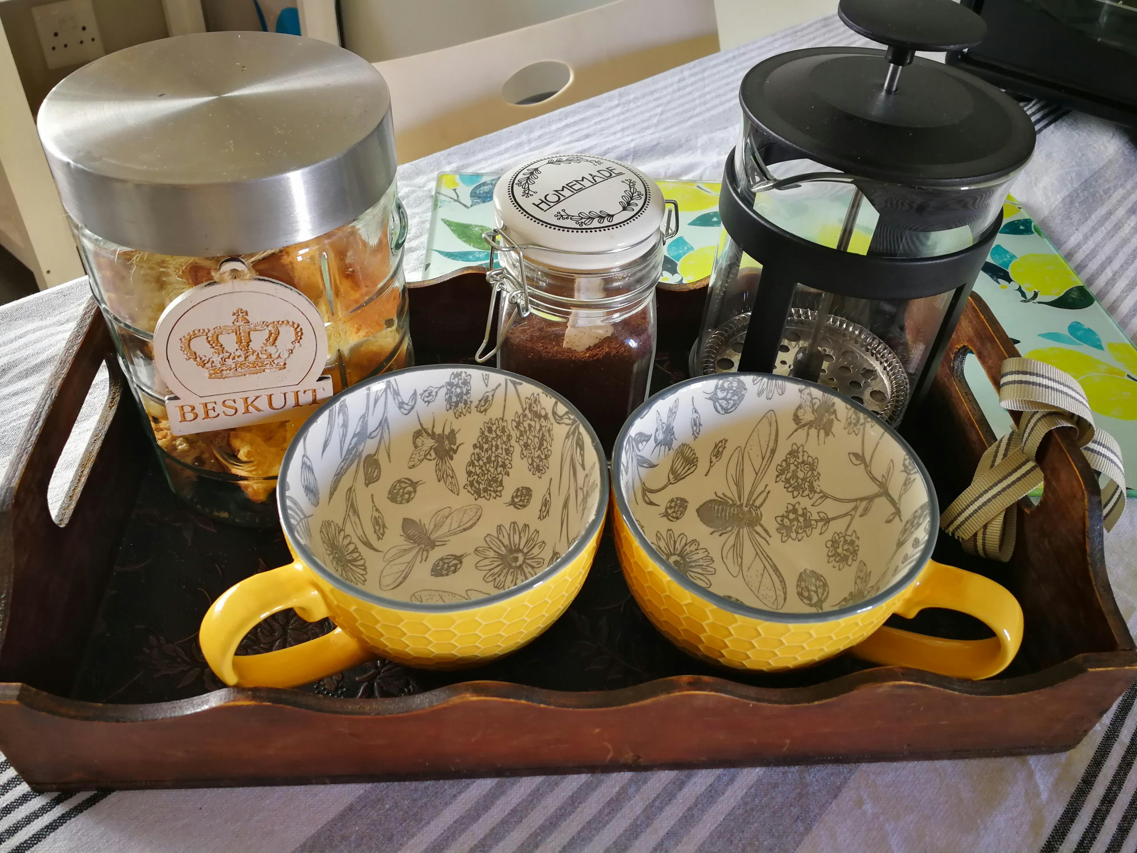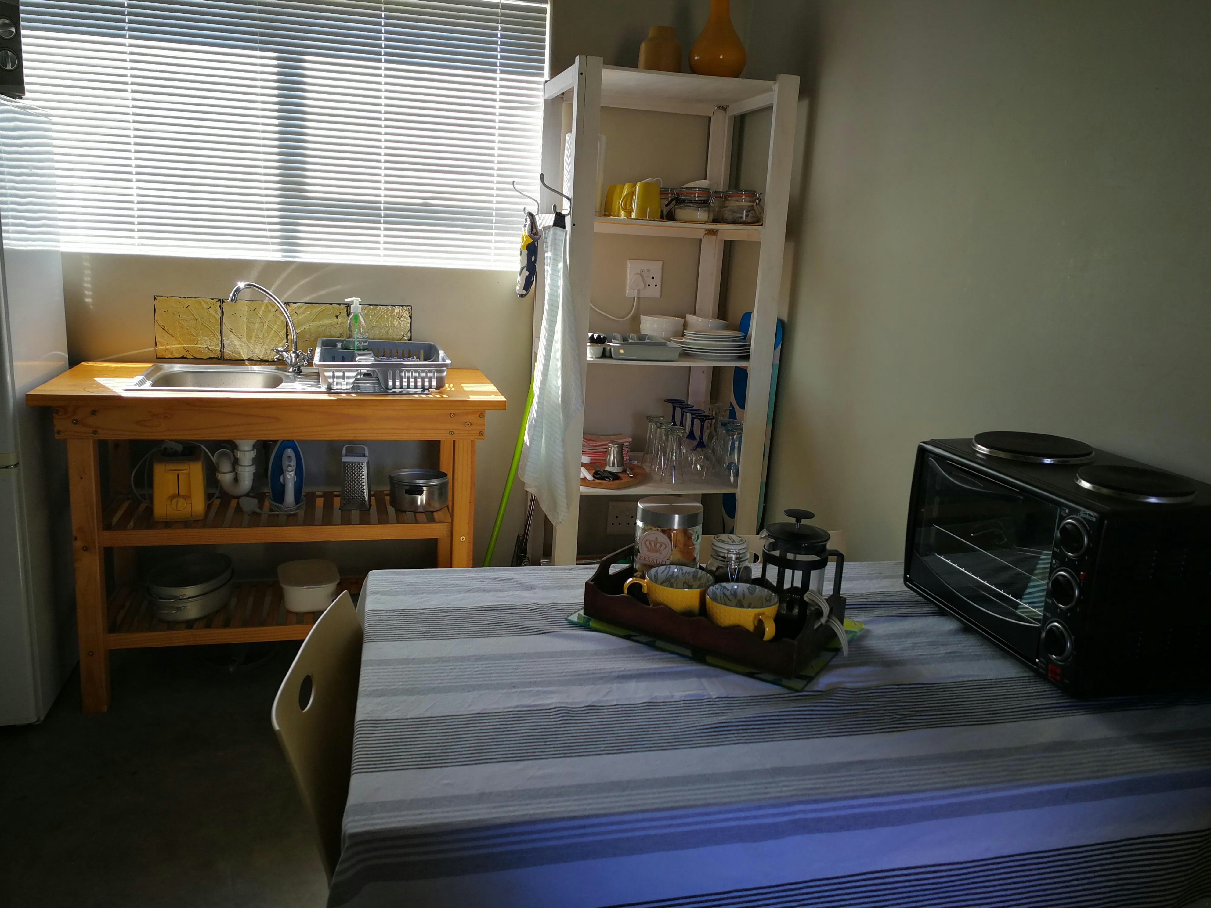 Die kombuis is met 'n tweeplaatstoof, oondjie, mikrogolf, yskas-vrieskas, eetgerei, breekware en tee- en koffiemaakgeriewe toegerus. Gratis WiFi word voorsien.