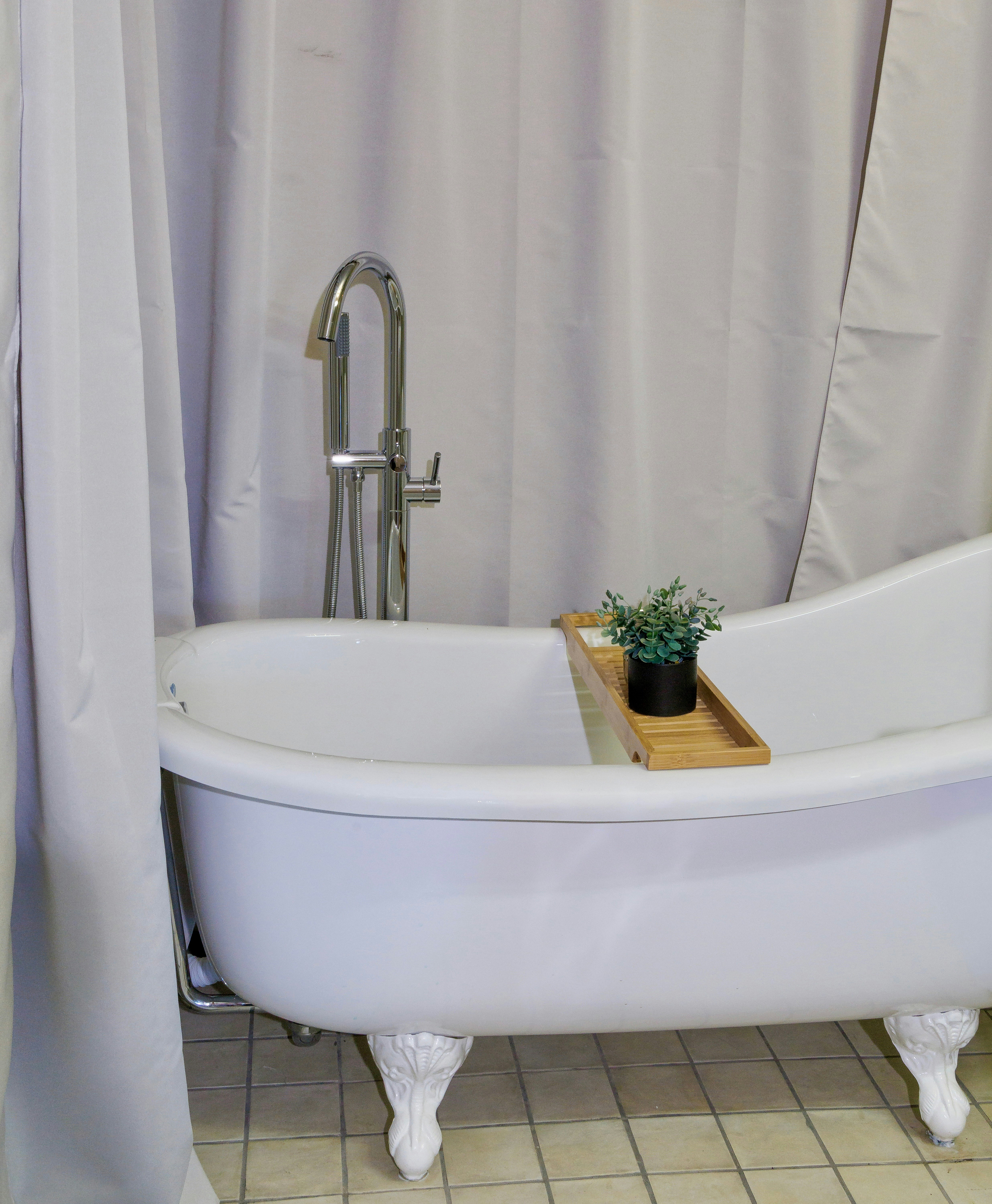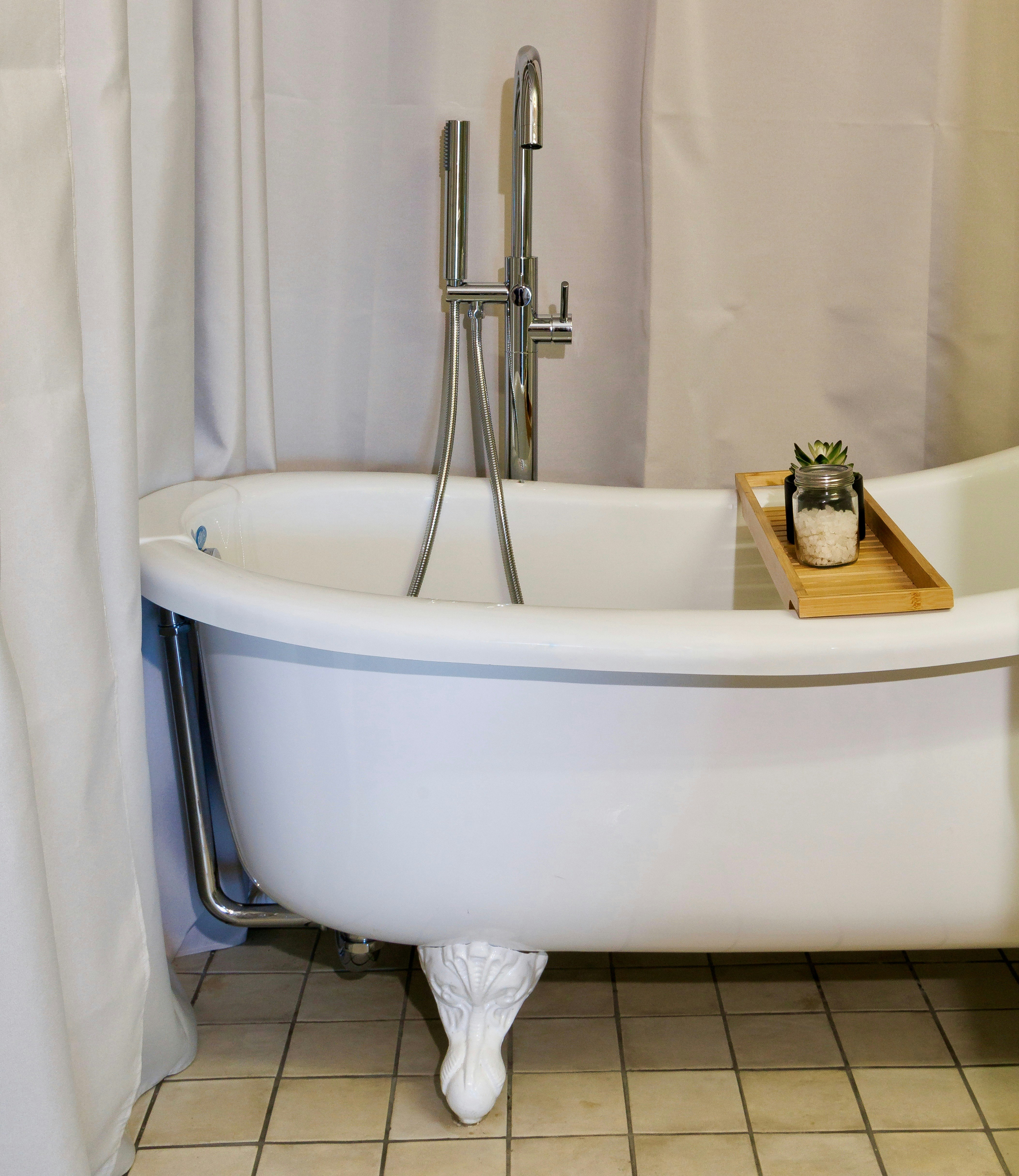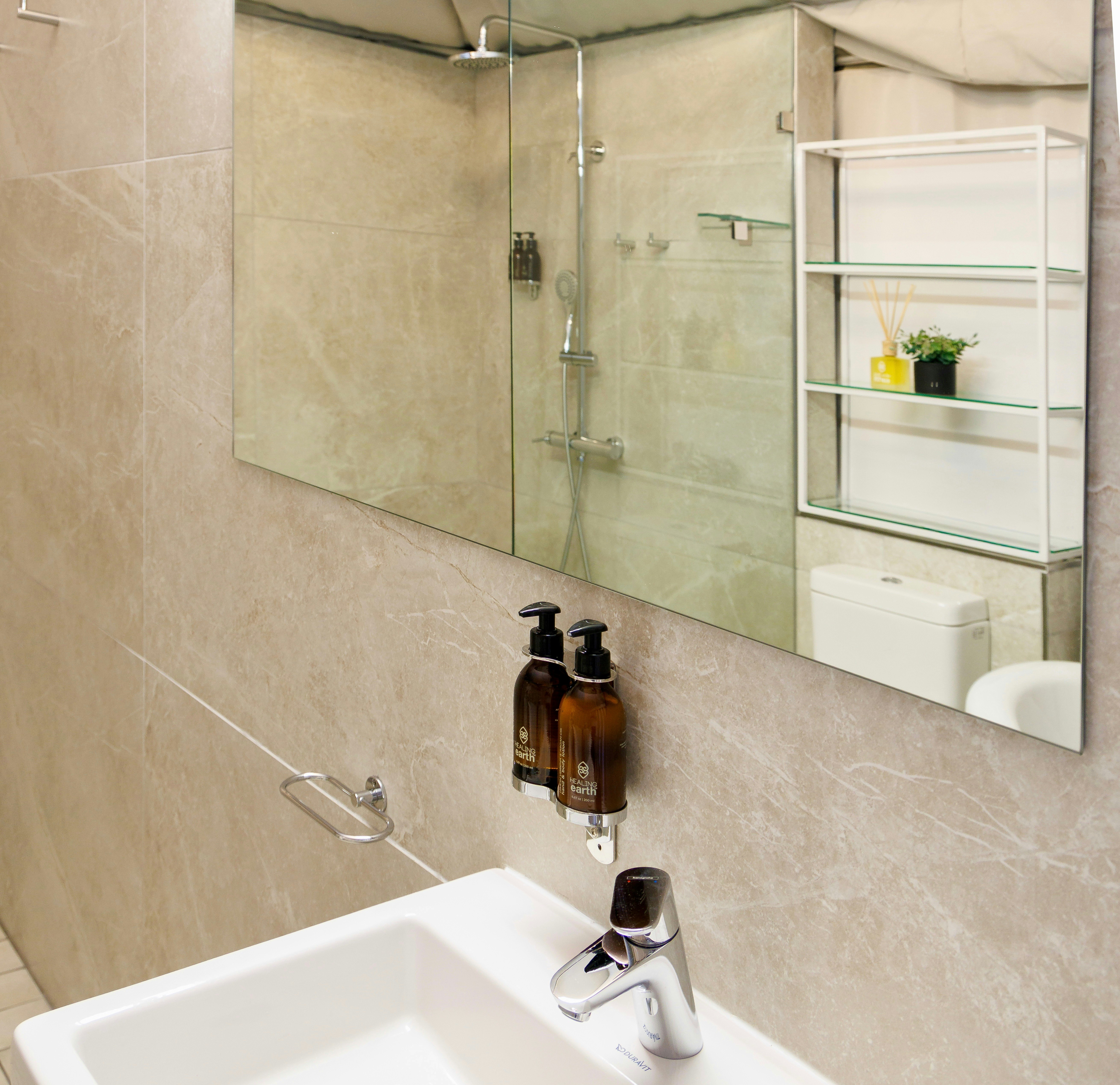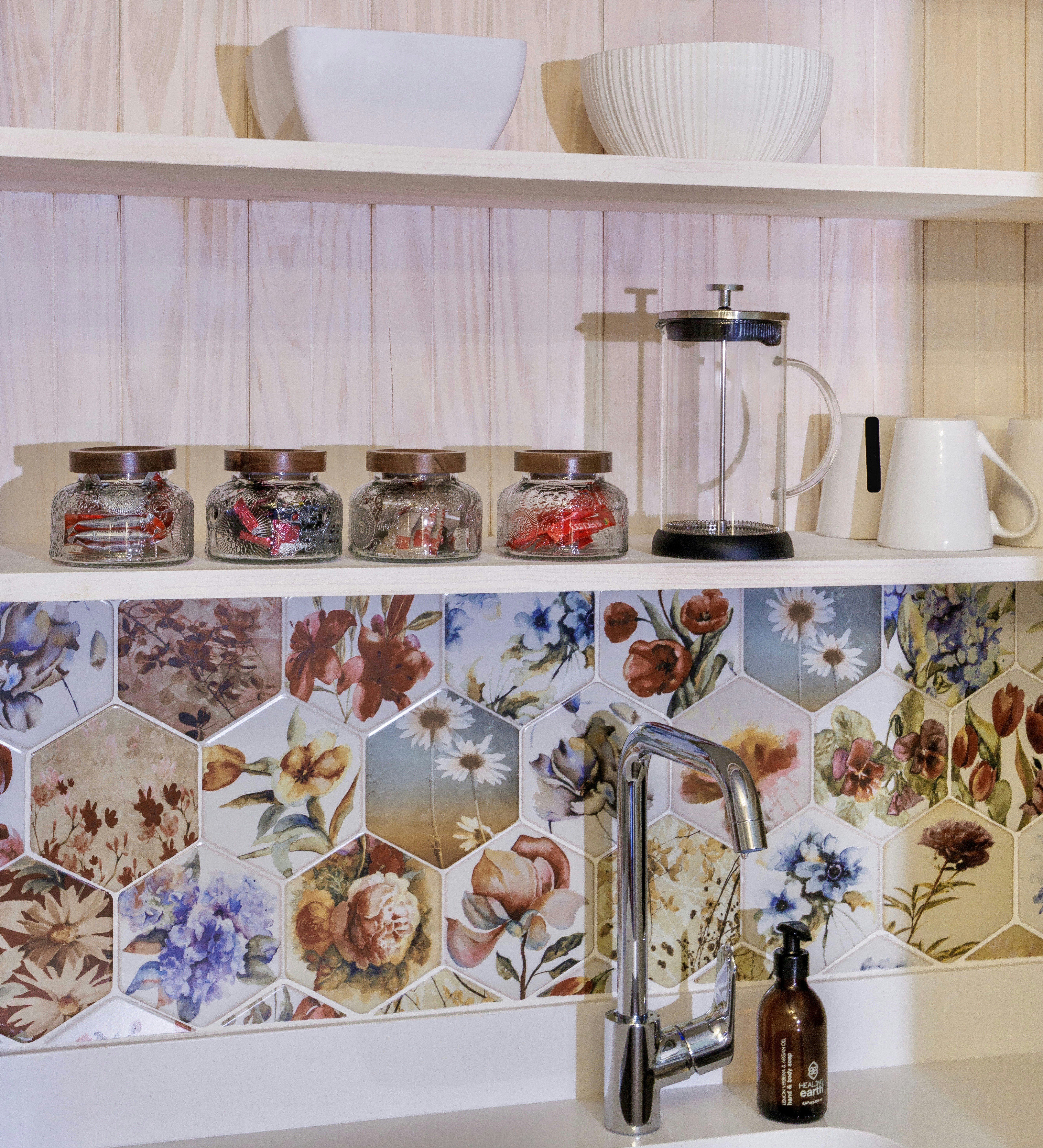 Guests also has the option of the glamping tent. It is furnished with a king-size bed and has a bathroom fitted with a shower, bath, washbasin, and toilet. The kitchenette is equipped with a fridge and microwave.