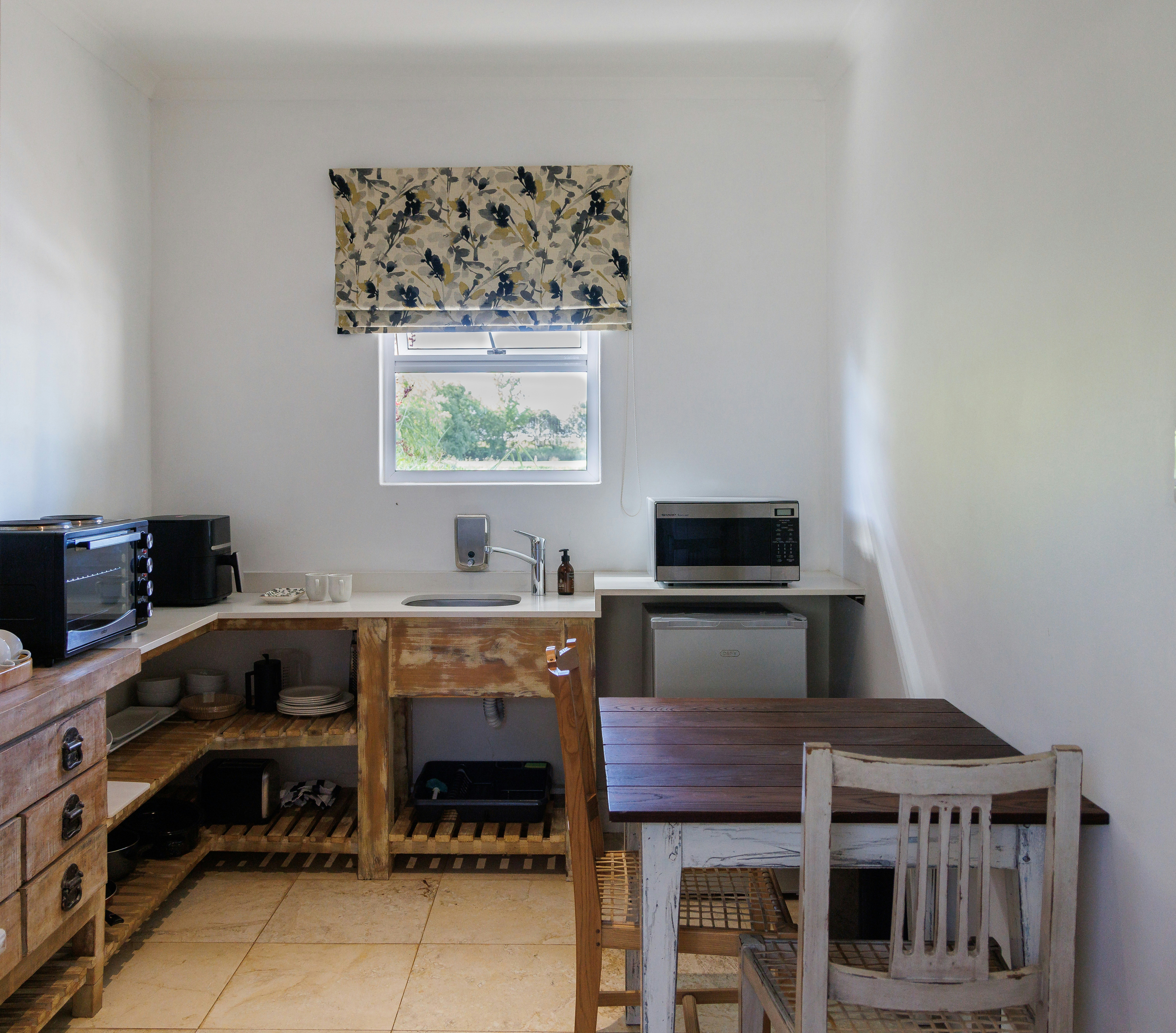 Each apartment includes a kitchen equipped with a stove, oven, microwave, and fridge, and guests can enjoy meals at the dining table. The apartments also have comfortable lounges with TVs. The cottage's kitchen is equipped with a 2-plate stove with a mini oven, a microwave, and a bar fridge. Guests can unwind in a cosy lounge that features a TV and opens onto a covered patio with easy access to the wood-fired hot tub and outdoor braai facilities, all overlooking the dam.