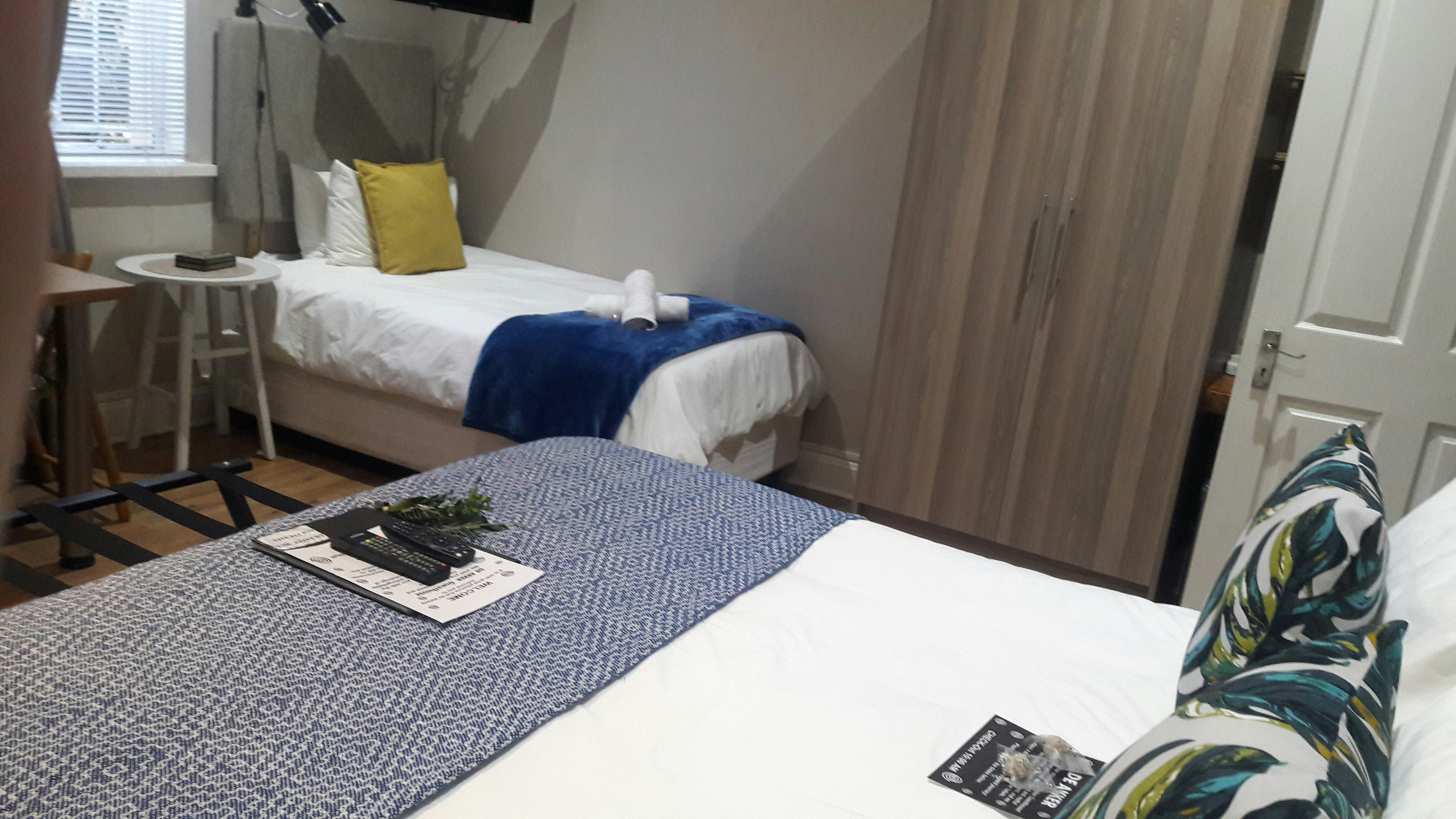 Dié kamer het 'n koningingrootte-bed, enkelbed en 'n en suite-badkamer met 'n stort en 'n aparte toilet. Ander geriewe sluit 'n kluis, 'n yskassie, tee- en koffiemaakgeriewe, plafonwaaier, hotelpakket DStv, lugversorging, elektriese komberse en handdoeke in.