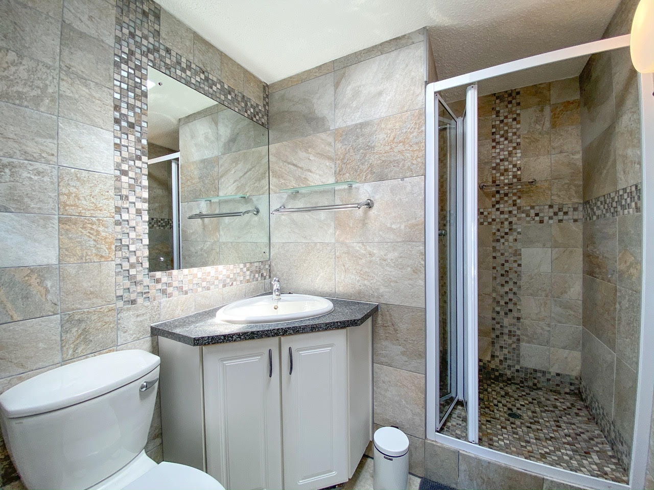 Guests have access to a communal braai area and swimming pools—one for adults and one for children. Laundry facilities with coin-operated machines and dryers are available. Covered parking is provided for one vehicle and a trailer. Pets are not allowed.