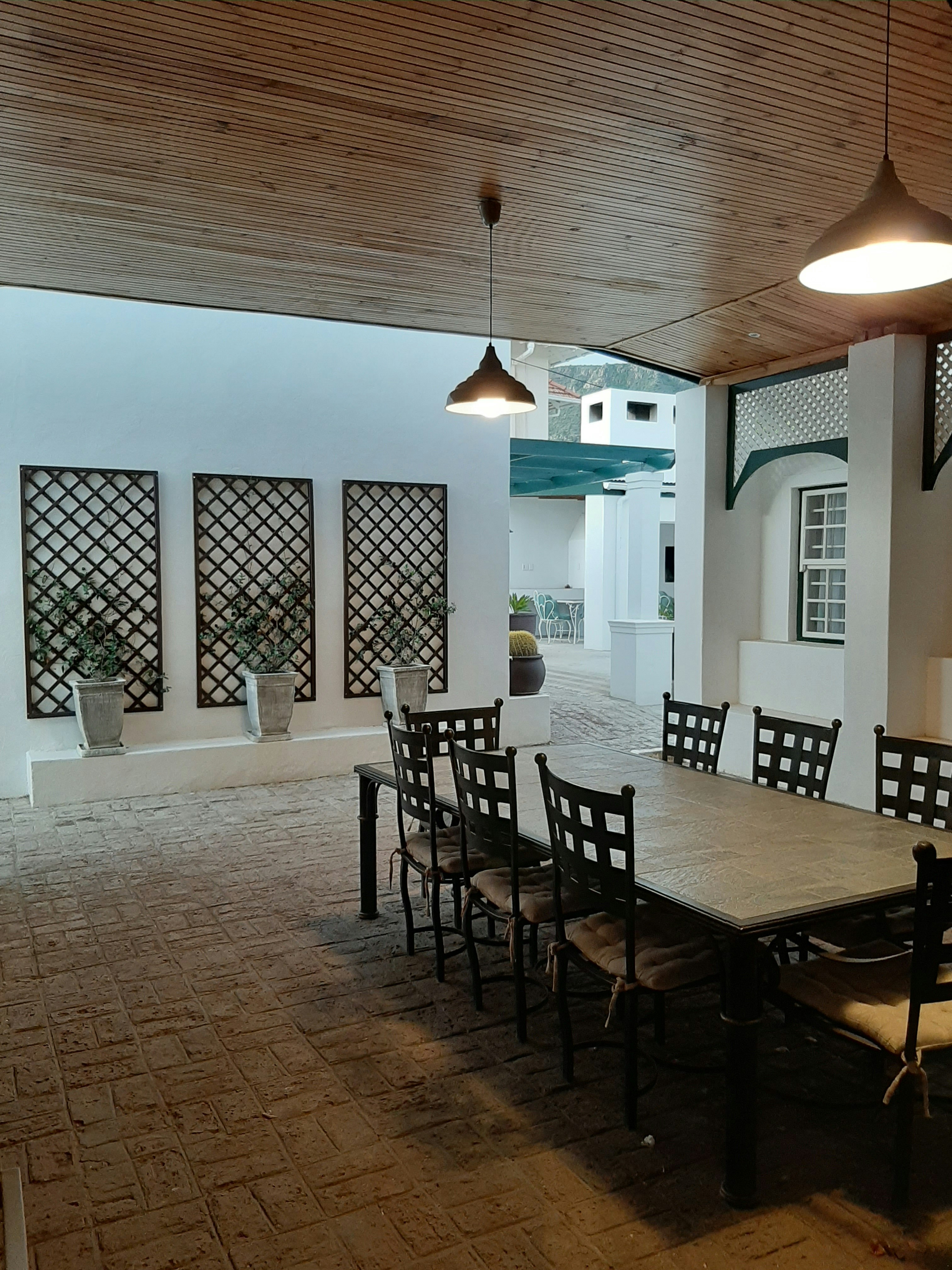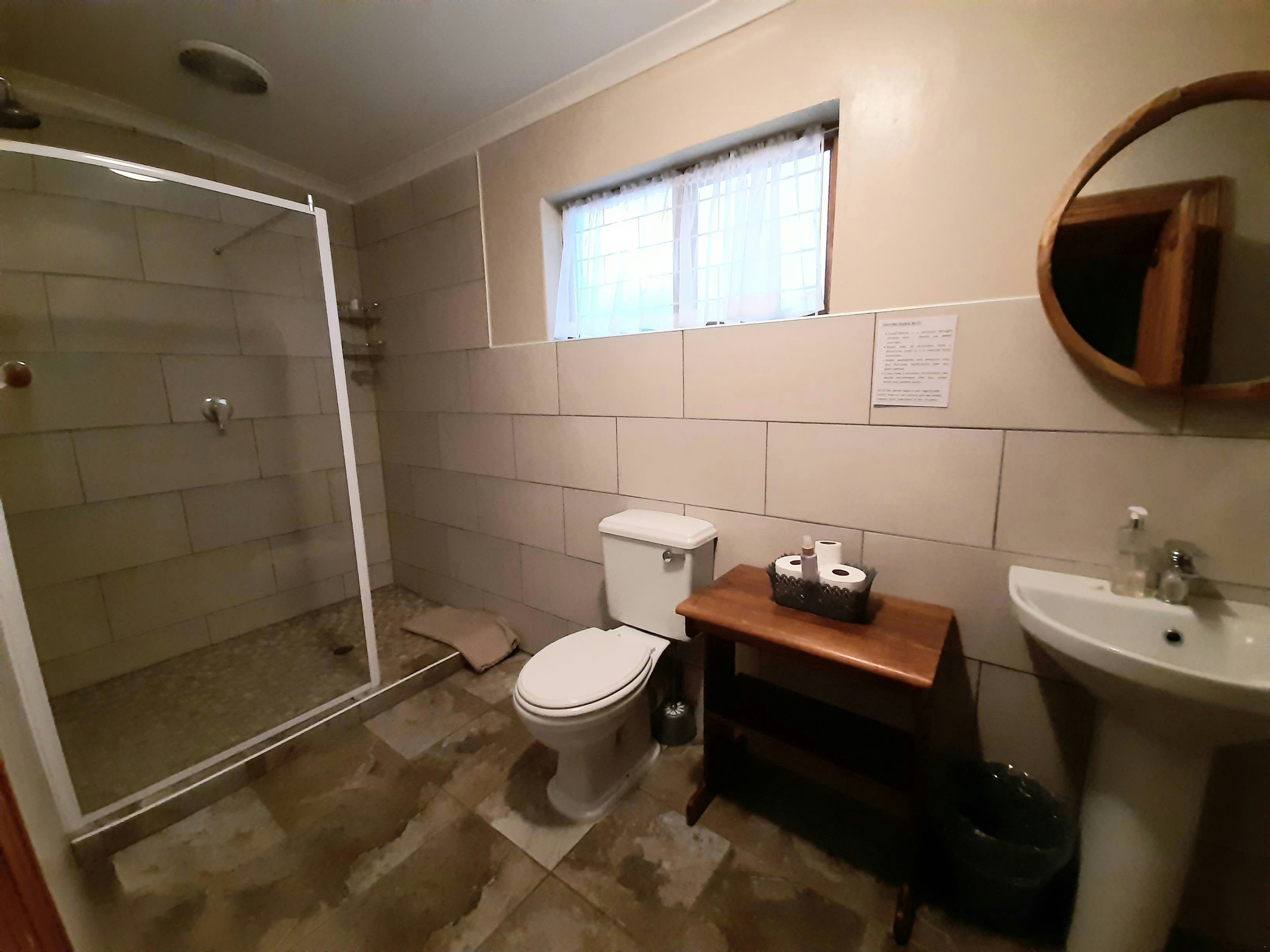 The guest house offers a choice of rooms that can accommodate between 2 to 5 people. The rooms are furnished with double beds or single beds. Some of the rooms have en-suite bathrooms with showers while Room 8 and 9 have shared bathroom facilities. The rooms are equipped with tea- and coffee-making facilities, and some of the rooms open onto a stoep.