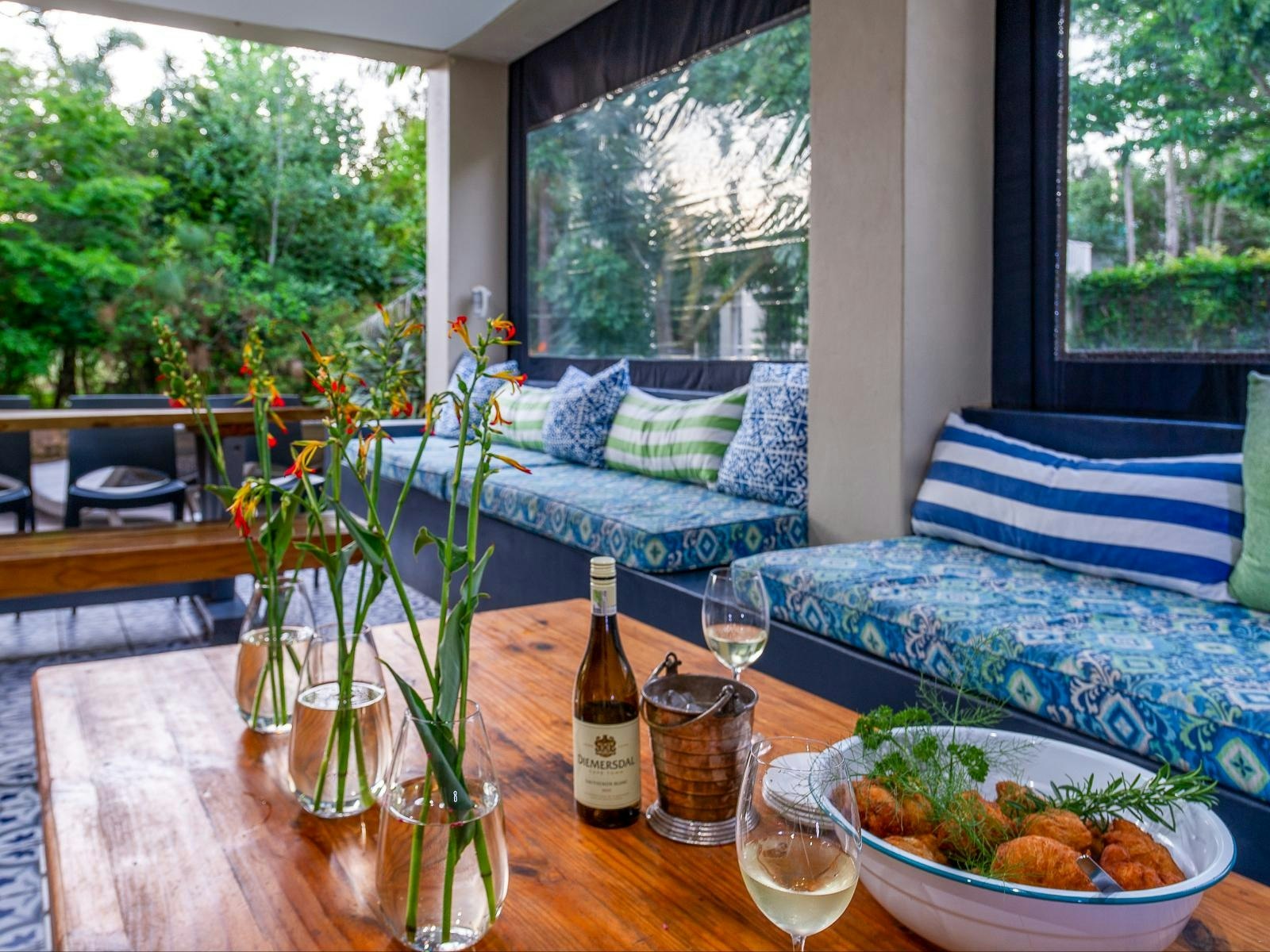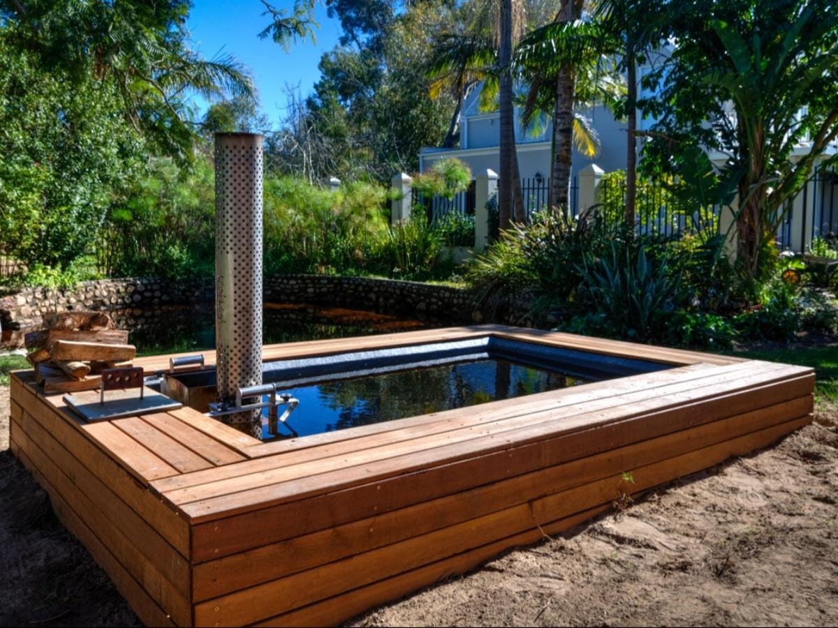 De Hoop Cottage can accommodate 4 guests and comes equipped with 2 bedrooms. The main bedroom features a king-size bed and the second bedroom features a double bed. Other in-room facilities include a bathroom fitted with a bath and shower, air-conditioning, and an open-plan kitchen fitted with a fridge, microwave, gas stove and oven. This cottage also comes equipped with a dishwasher, washing machine, lounge area, TV, DStv, and a fireplace. An outdoor wood-fired hot tub is also available.