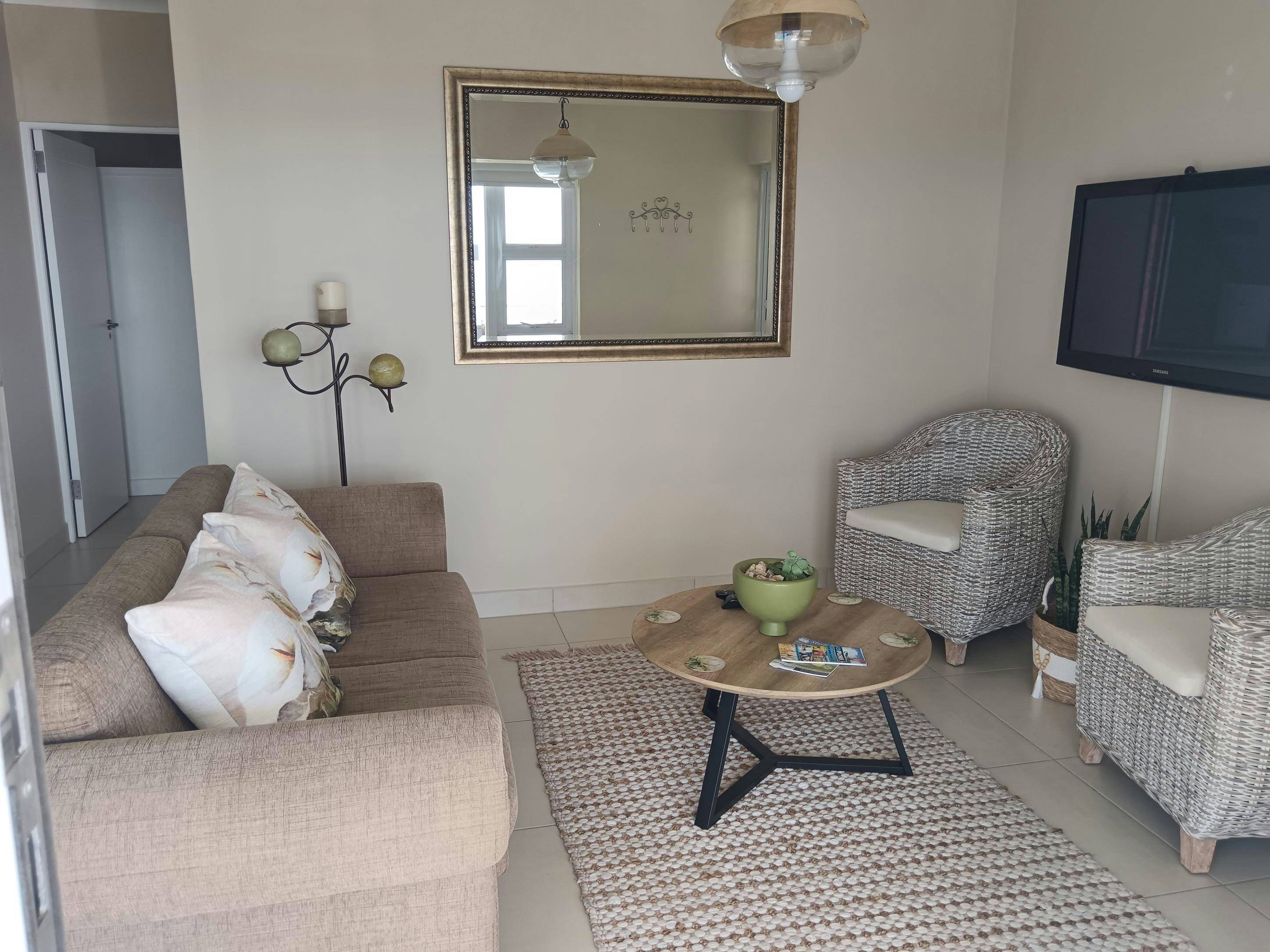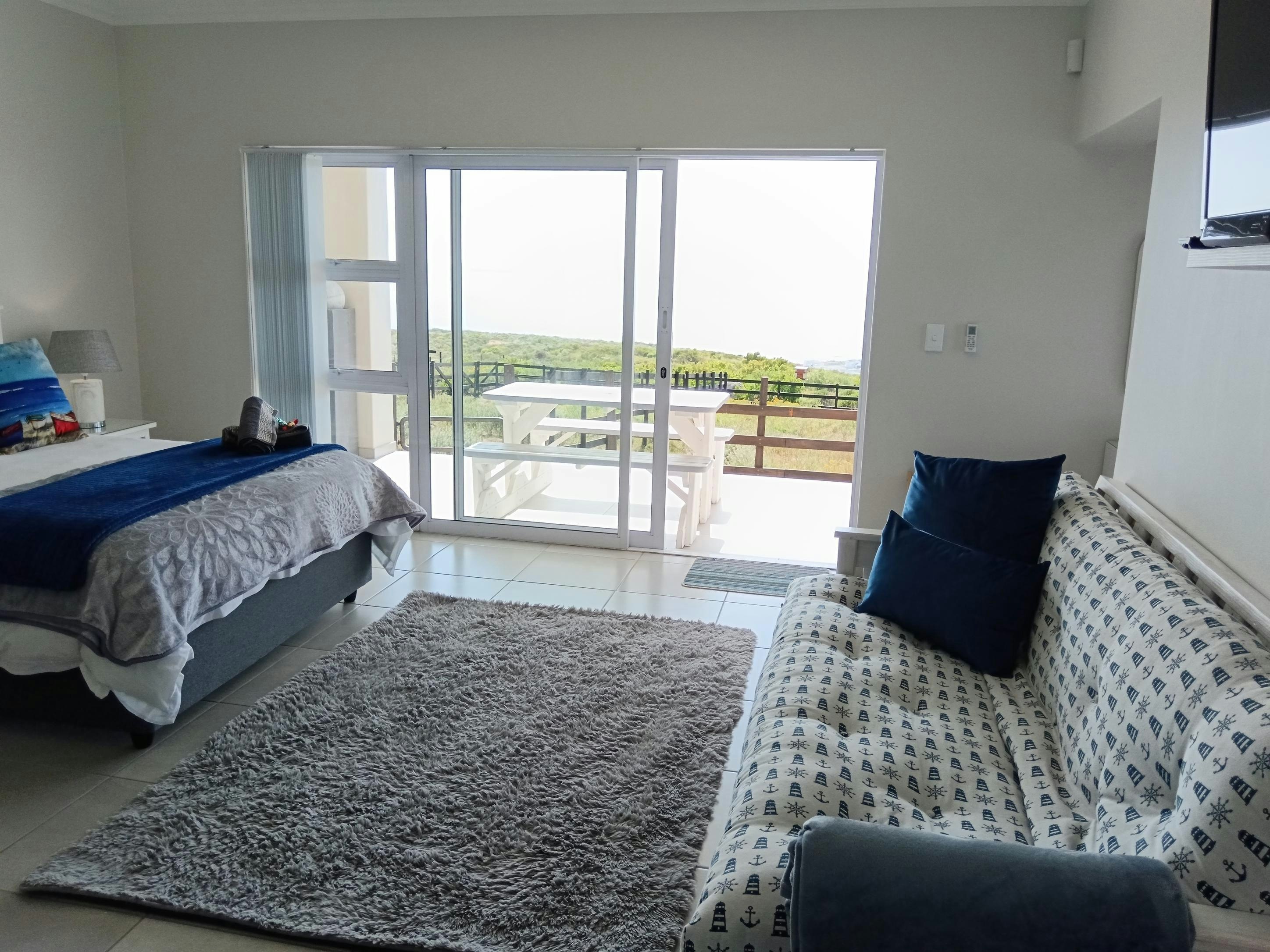 The units each have a kitchenette equipped with a bar fridge, 2-plate gas stove, microwave, basic cutlery, crockery, and tea- and coffee-making facilities. For entertainment, the apartments are equipped with a flat-screen TV offering selected DStv channels. Free Wi-Fi is available throughout the apartments. Additionally, each unit boasts a private patio with outdoor seating, allowing guests to enjoy the panoramic views of the ocean in the distance.