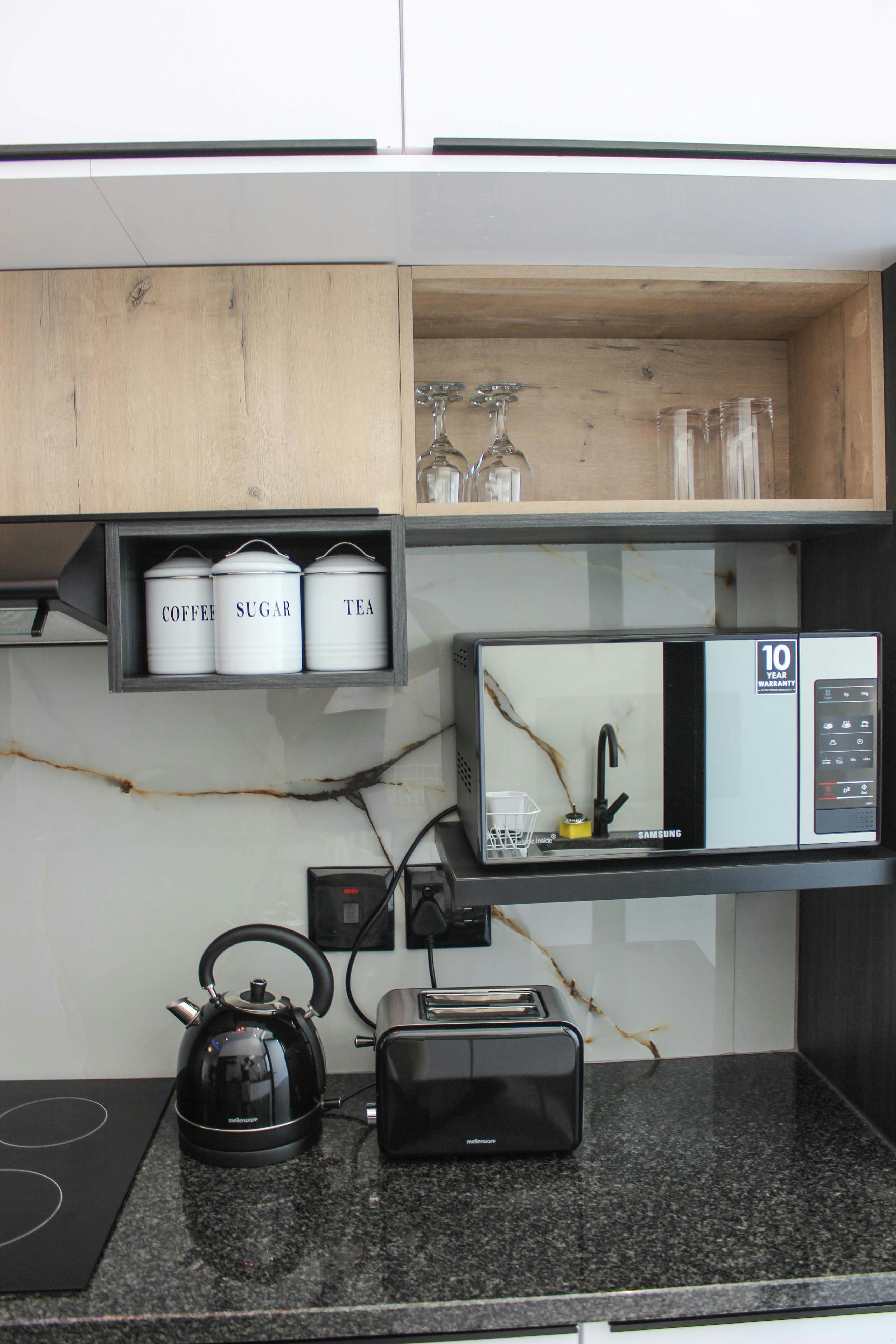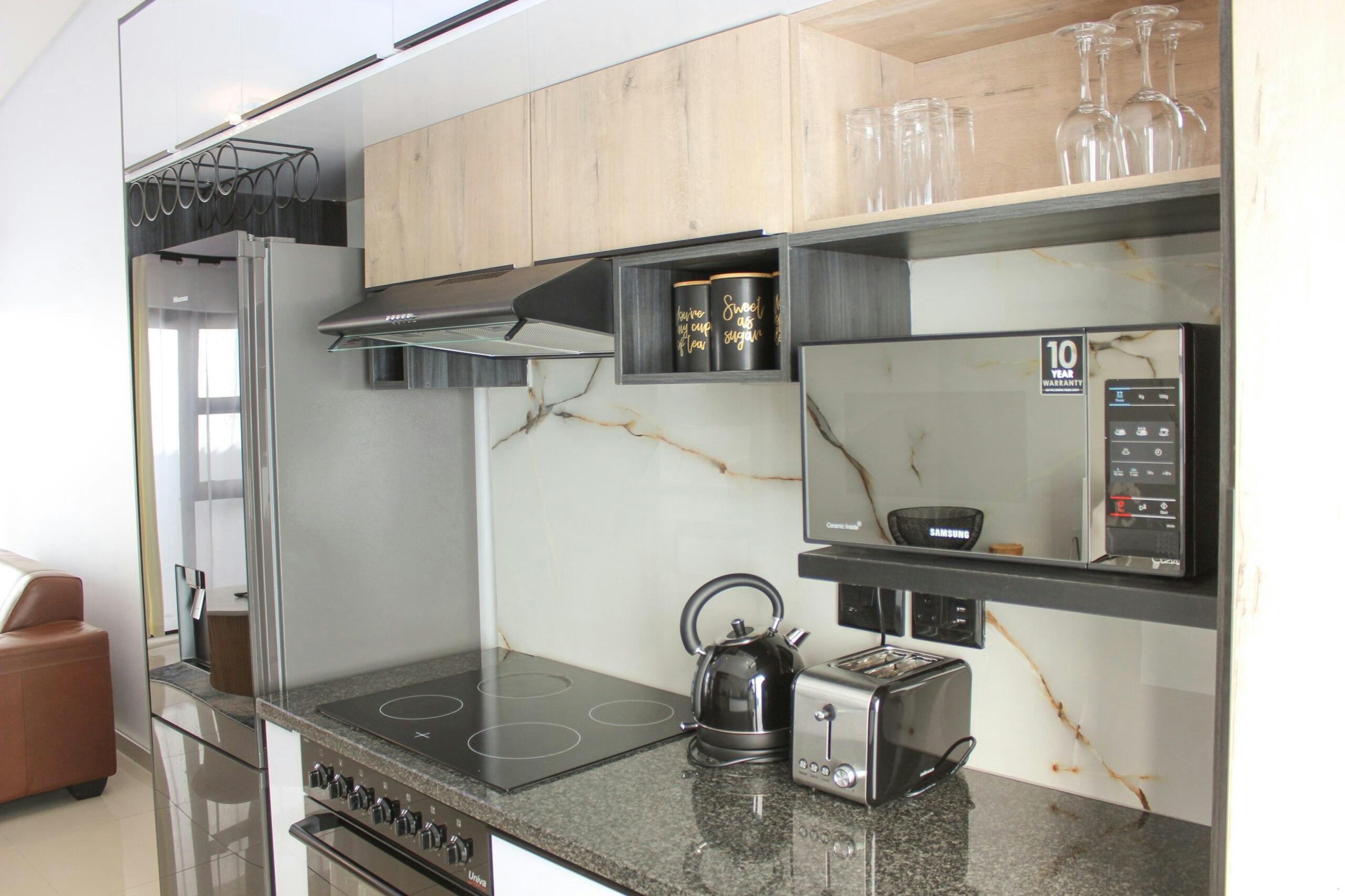 Die kombuis is met 'n stoof, oond, yskas-vrieskas, mikrogolfoond, eetgerei en breekware toegerus. Die leefarea beskik oor gemaklike sitplek en 'n TV met DStv.