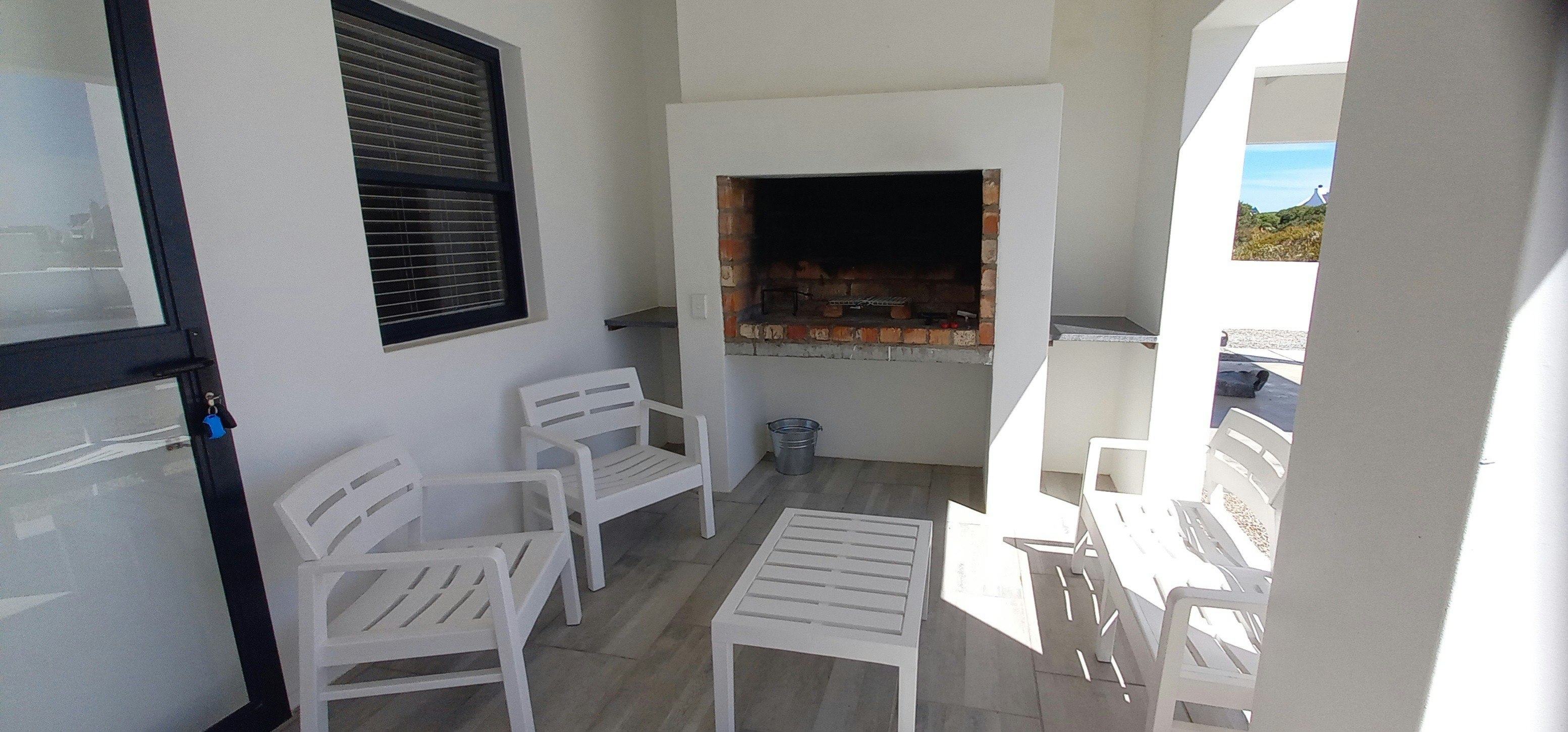 Die sitkamer maak oop na 'n gemeubileerde patio met braaigeriewe, perfek om te ontspan en die vars seelug te geniet. Veilige parkering is op die perseel beskikbaar.