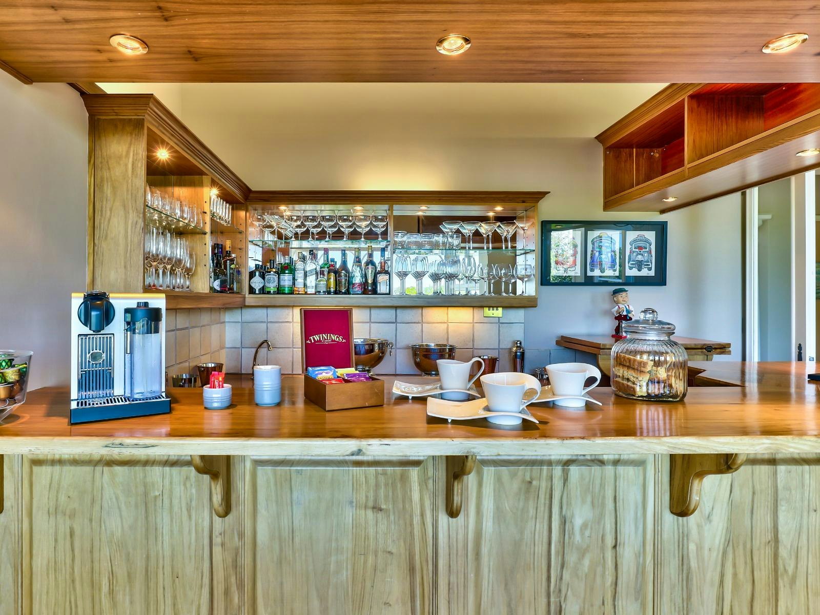 Gaste kan die gerief en gemak van die privaat gastesitkamer met 'n kaggel, of 'n drankie by die kroeg geniet. Daar is 'n aparte TV-kamer met 'n TV met DStv, 'n biblioteek en 'n pooltafel. Daar is ook 2 swembaddens omring deur stoepe waar ontbyt bedien word.