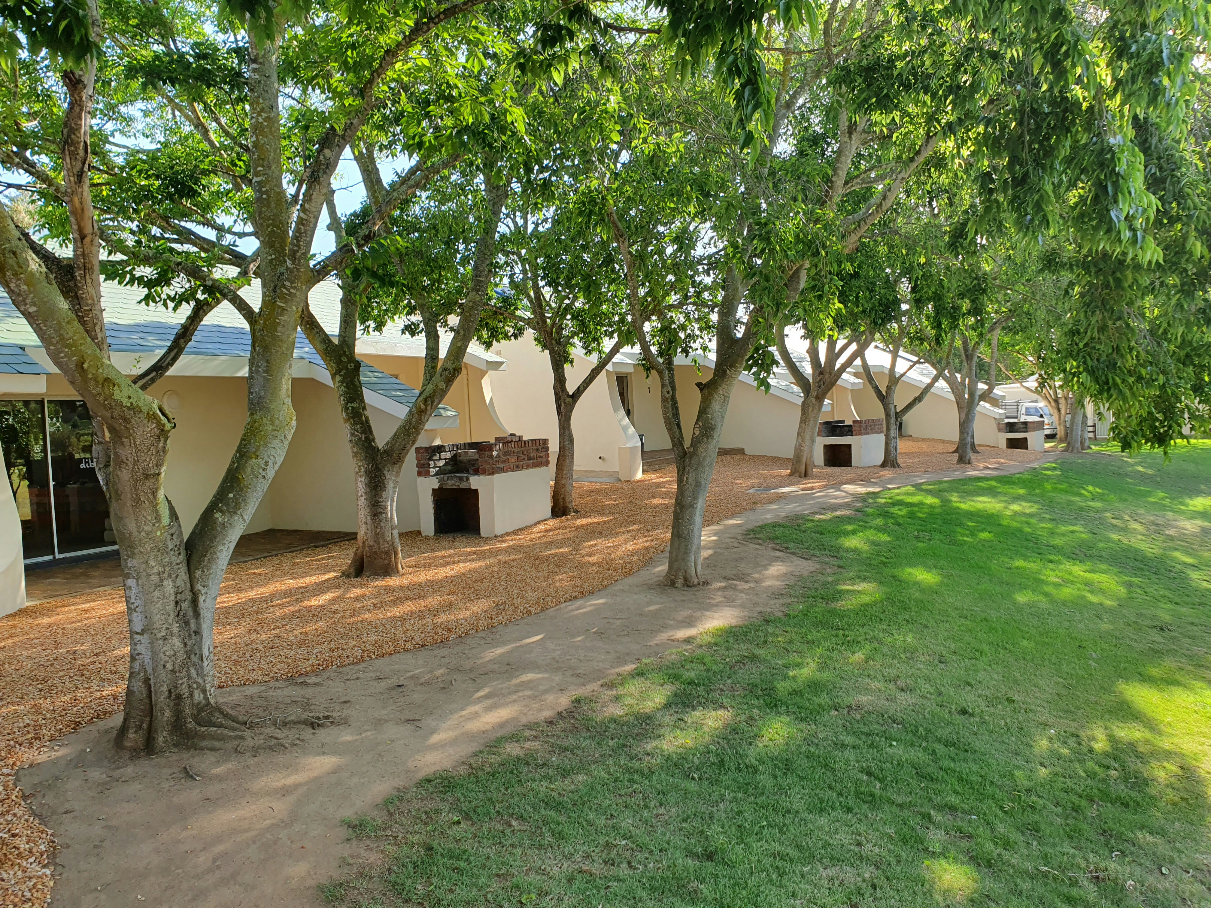 Accommodation is offered in self-catering chalets that can each accommodate up to a maximum of 4 guests. Each chalet comprises 1 bedroom, 1 bathroom, and an open-plan kitchen, dining and living area. Outside, each chalet has its own private braai area.