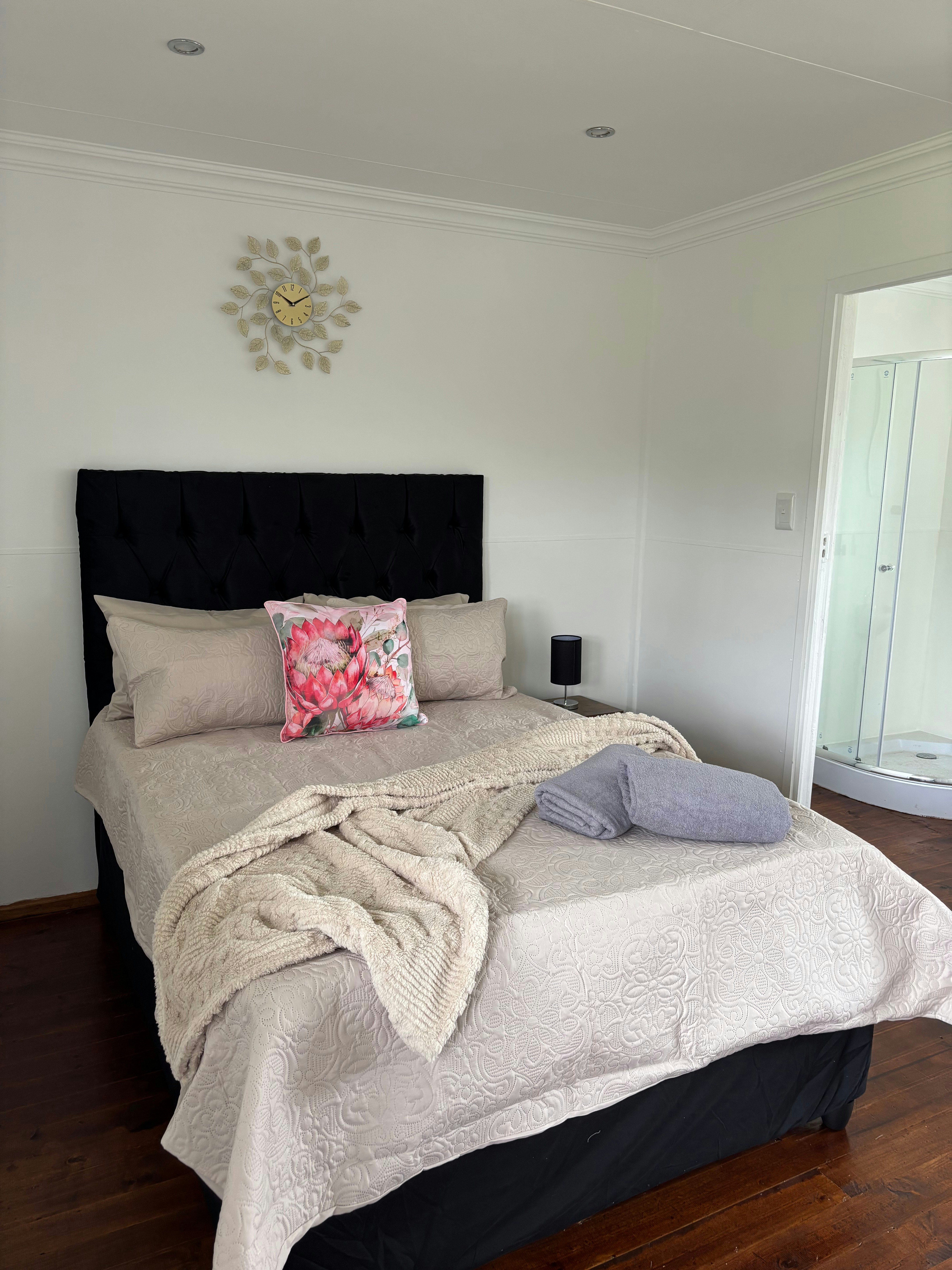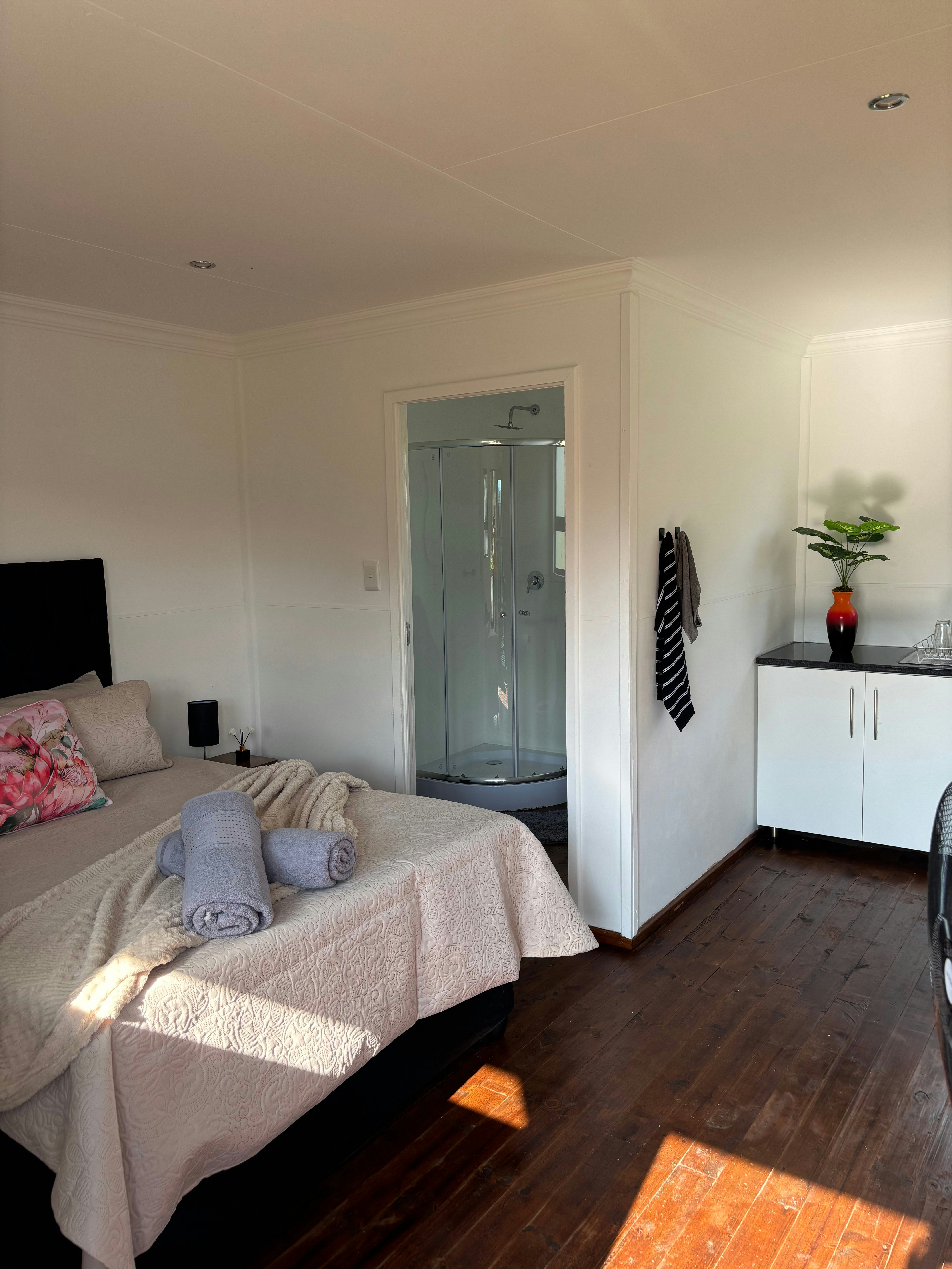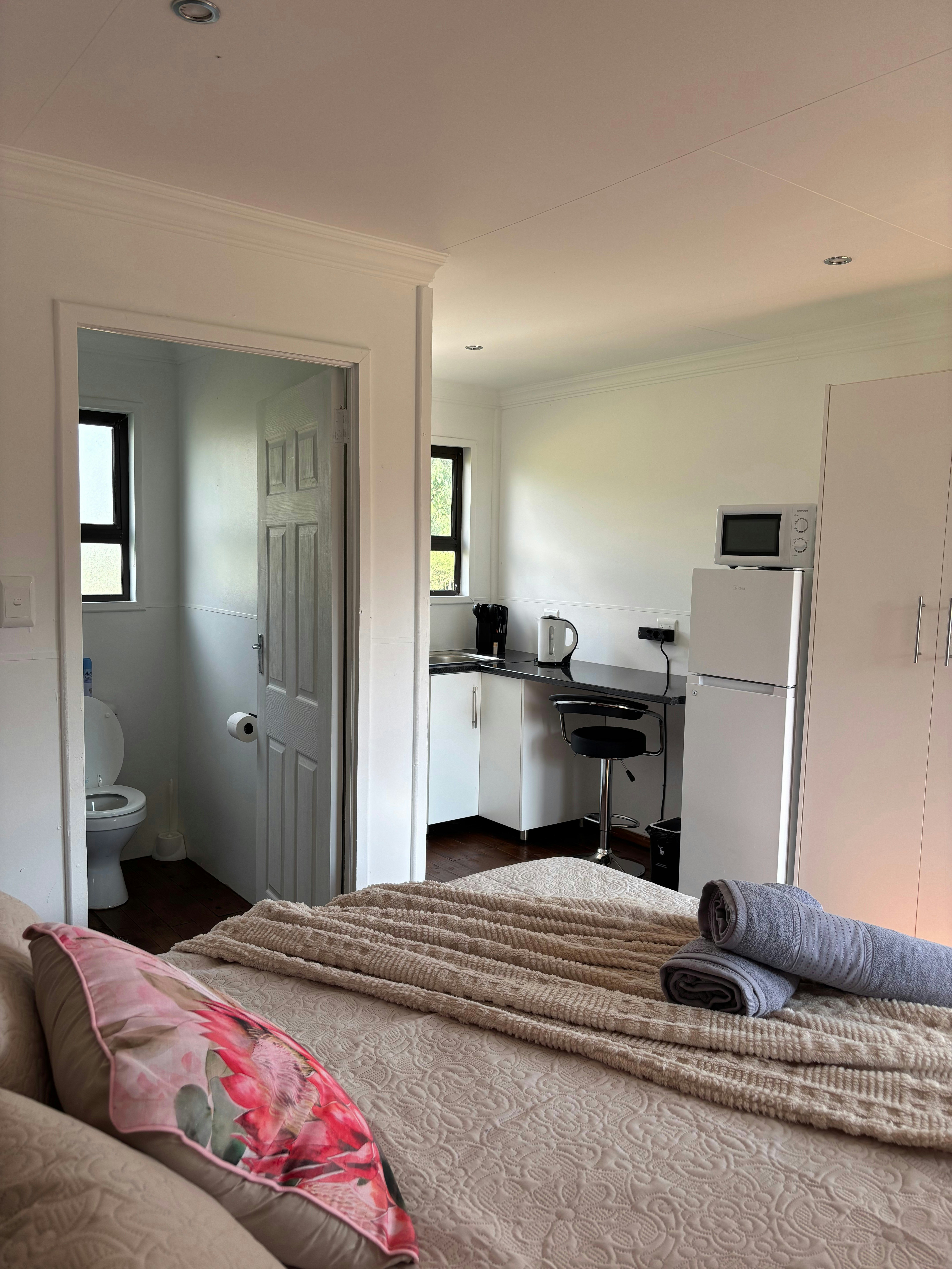 The guest house features 4 beautiful rooms, each accommodating 2 guests and has an en-suite bathroom for added convenience and privacy. Every room is thoughtfully furnished with a microwave and fridge, perfect for storing and preparing your own meals. A TV and Wi-Fi ensure guests can relax, catch up on work, or stream their favourite shows in comfort.
