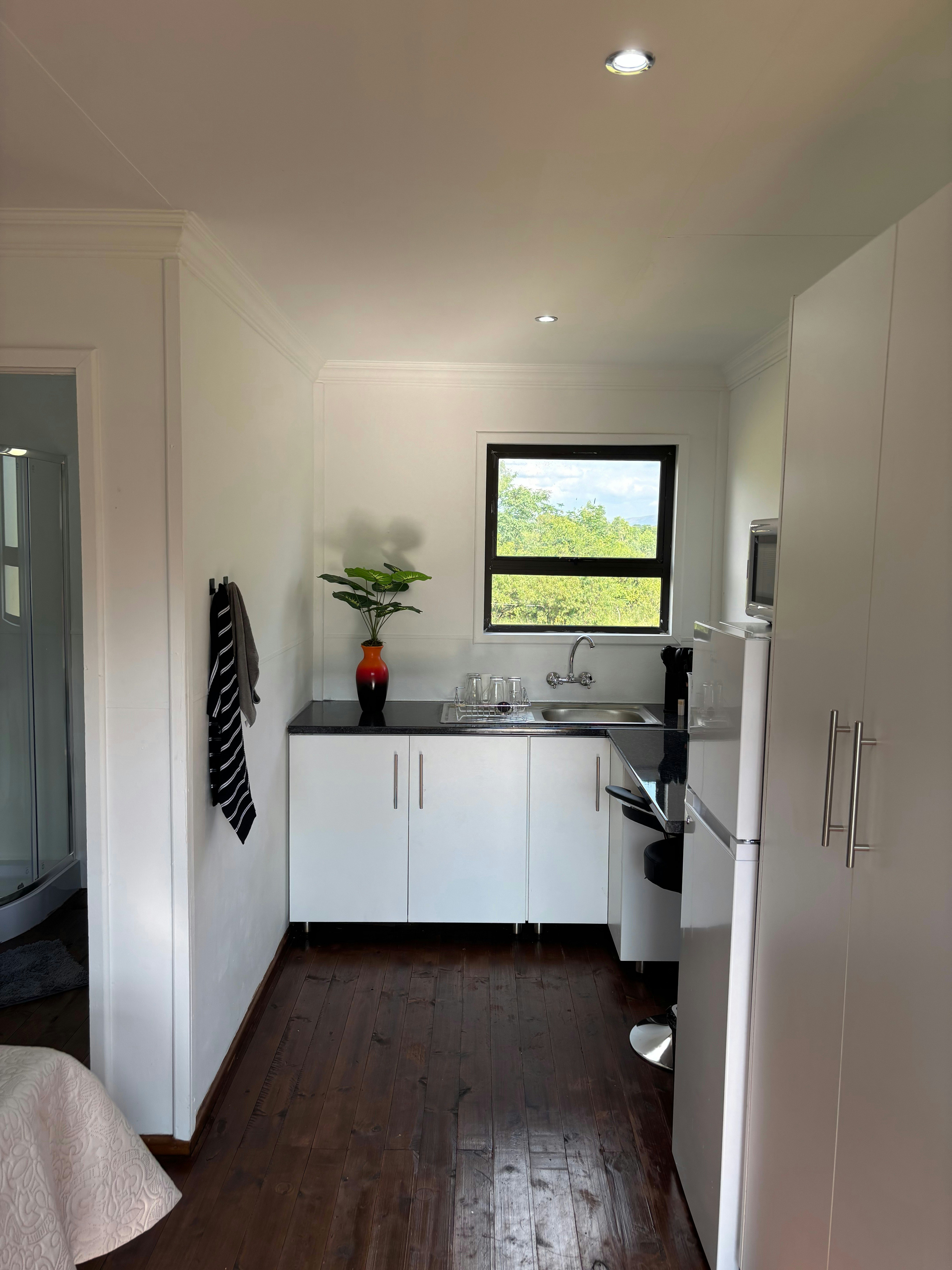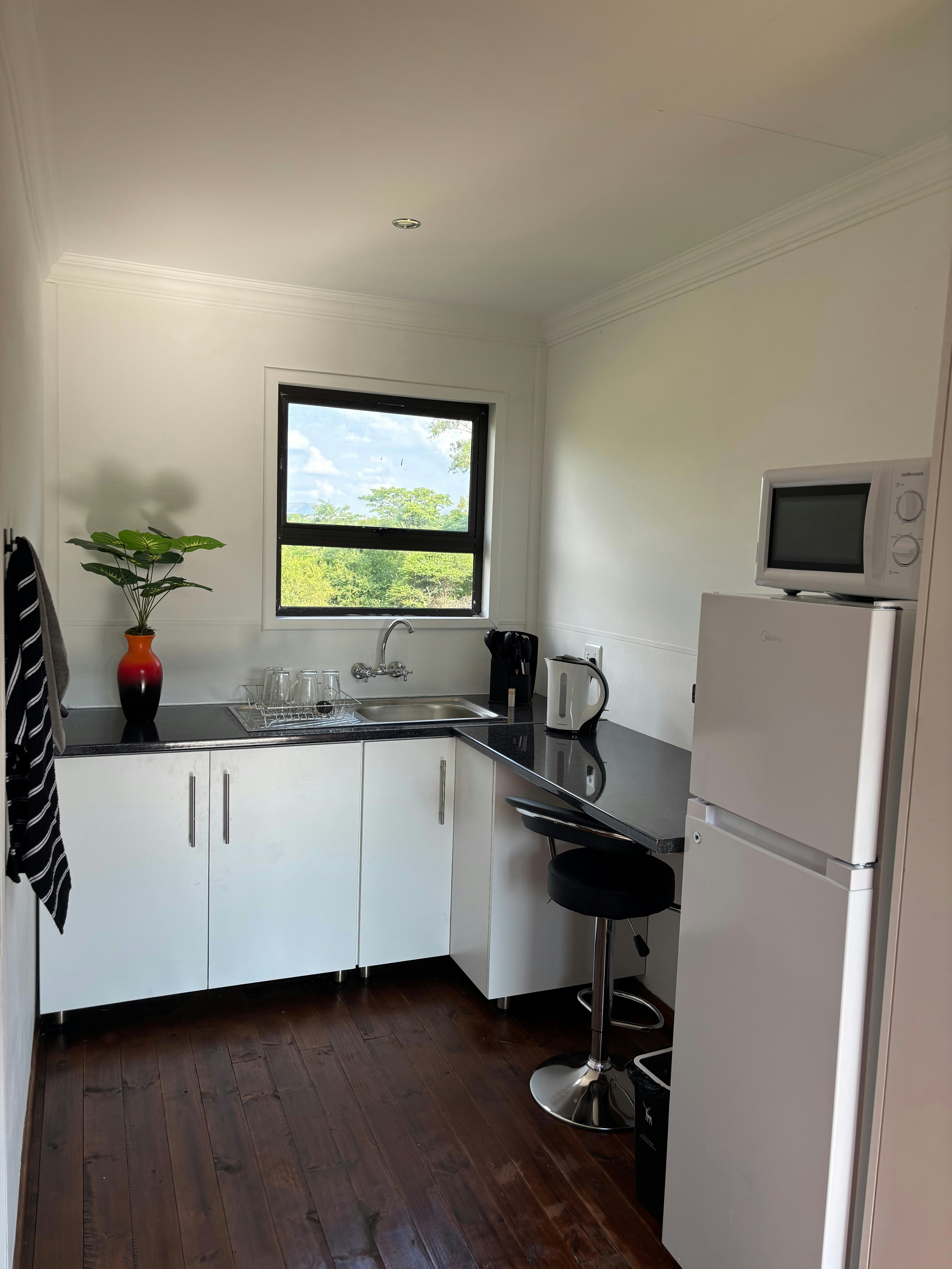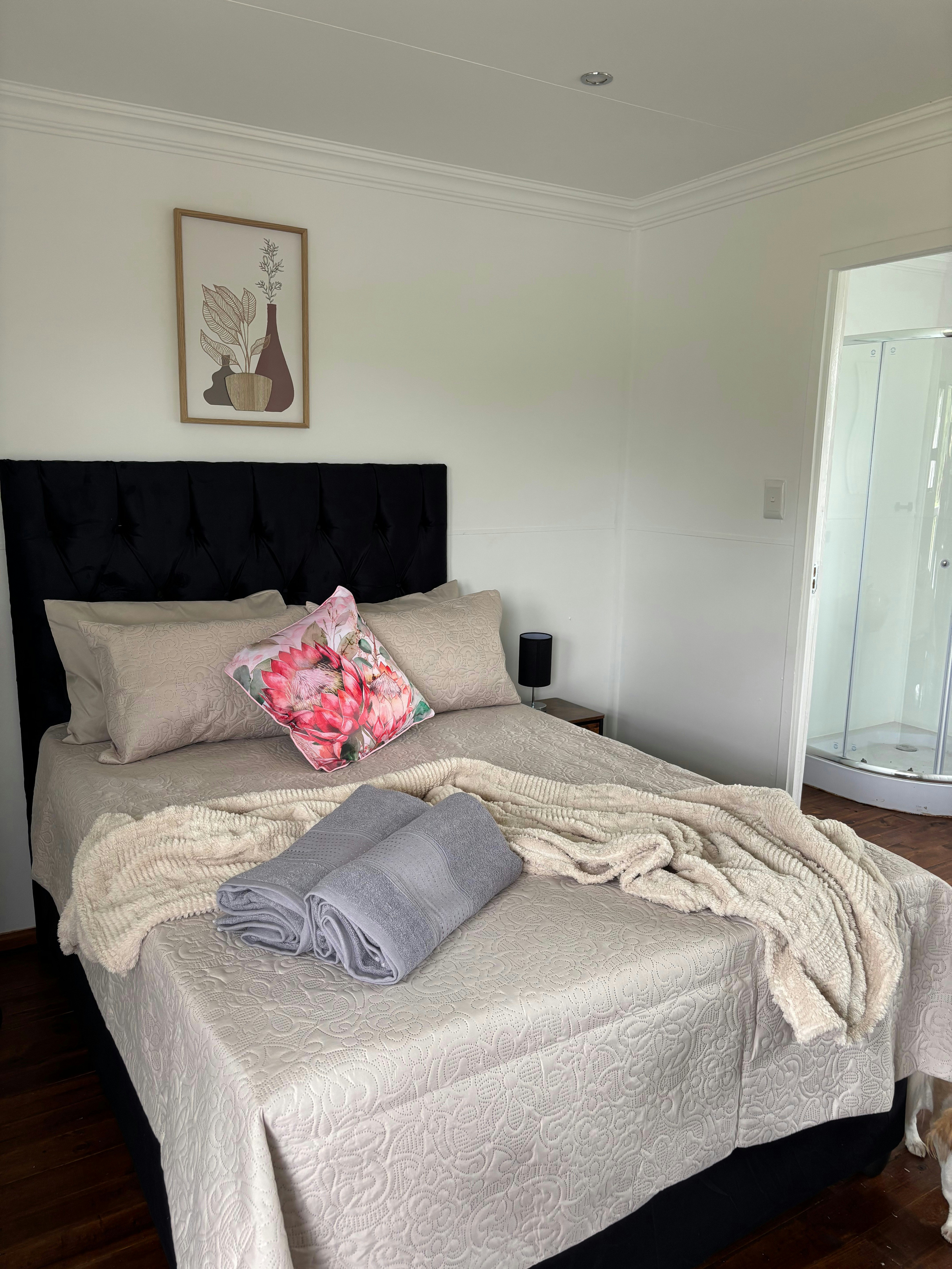 The guest house features 4 beautiful rooms, each accommodating 2 guests and has an en-suite bathroom for added convenience and privacy. Every room is thoughtfully furnished with a microwave and fridge, perfect for storing and preparing your own meals. A TV and Wi-Fi ensure guests can relax, catch up on work, or stream their favourite shows in comfort.