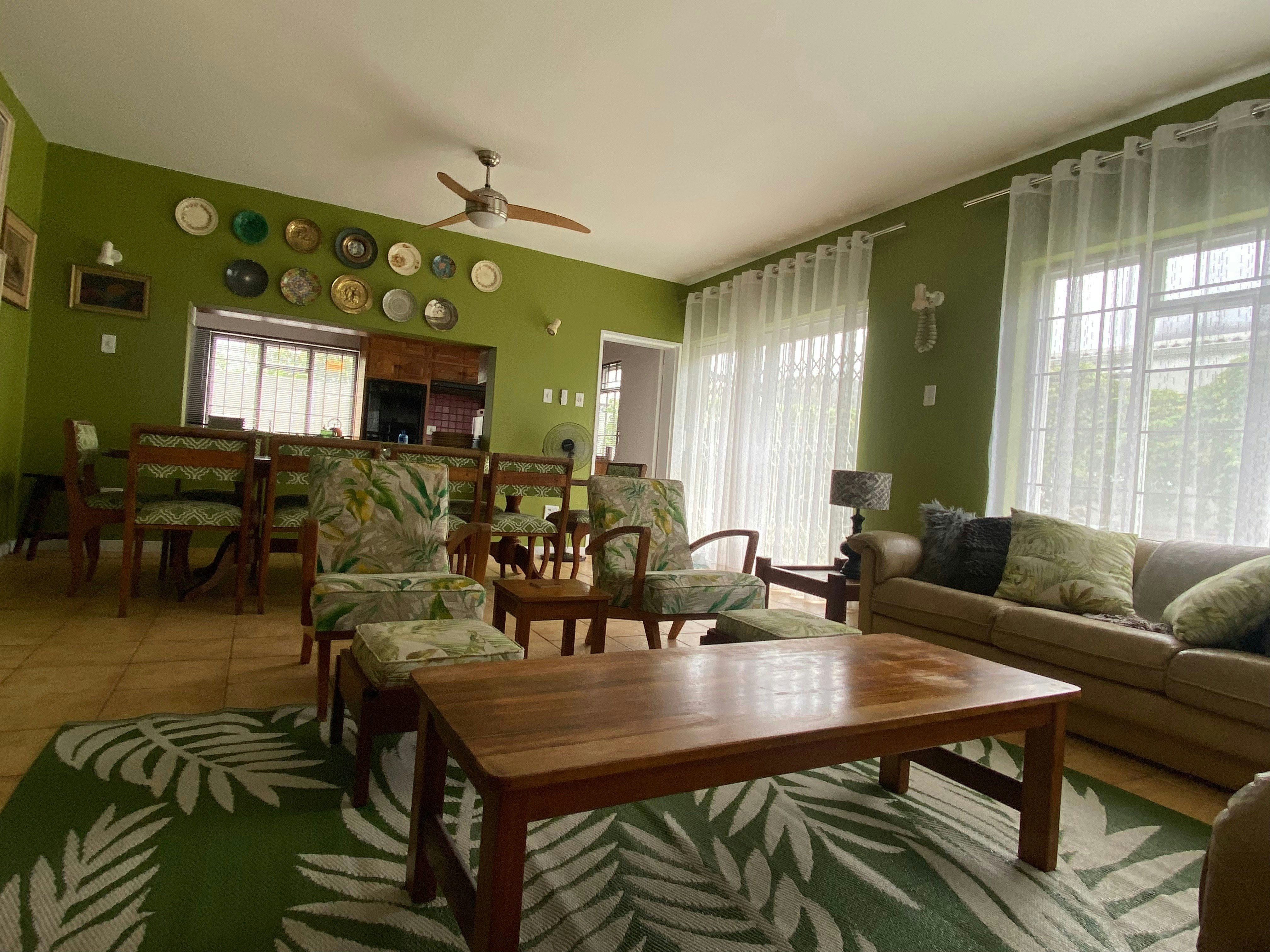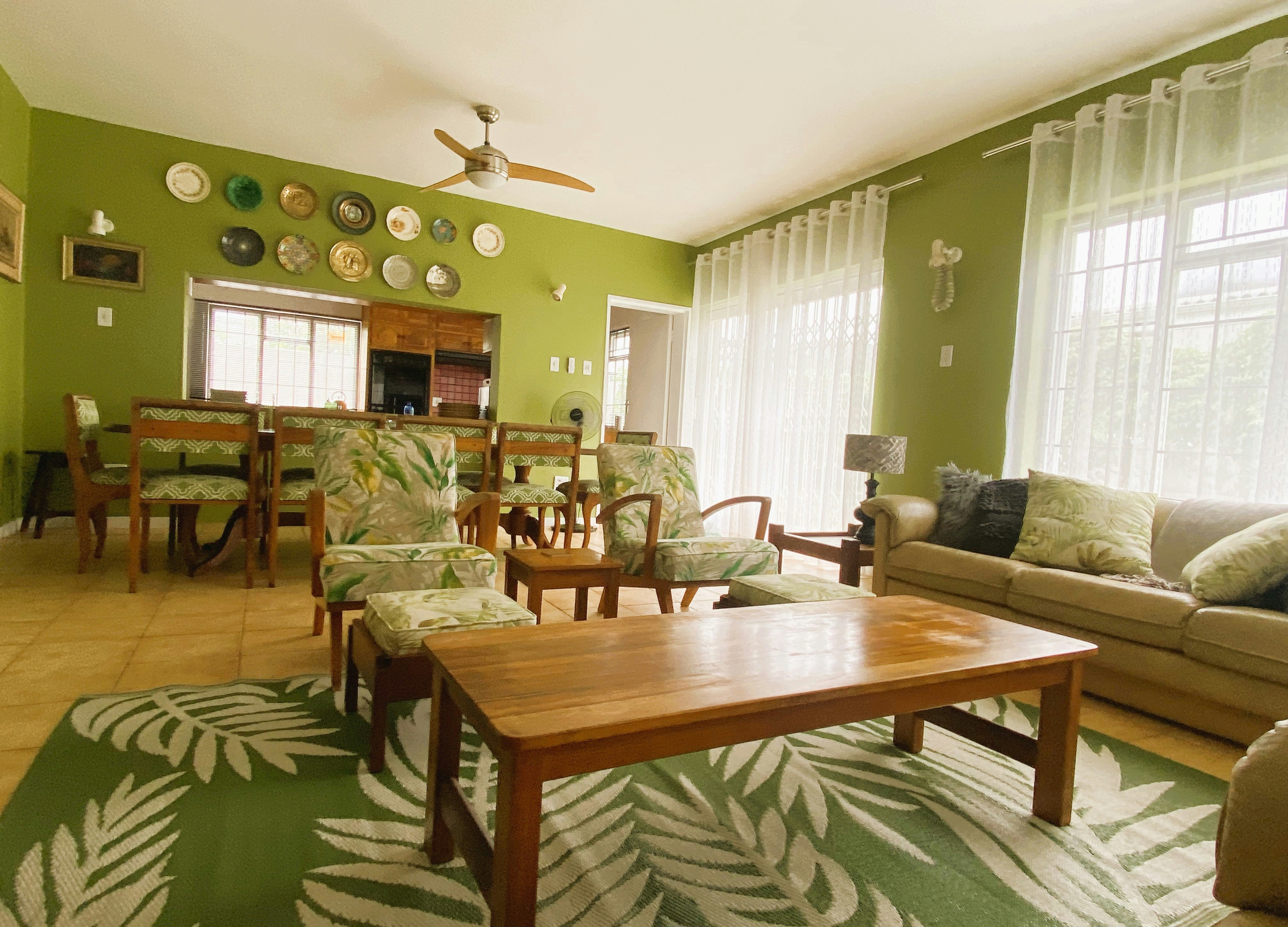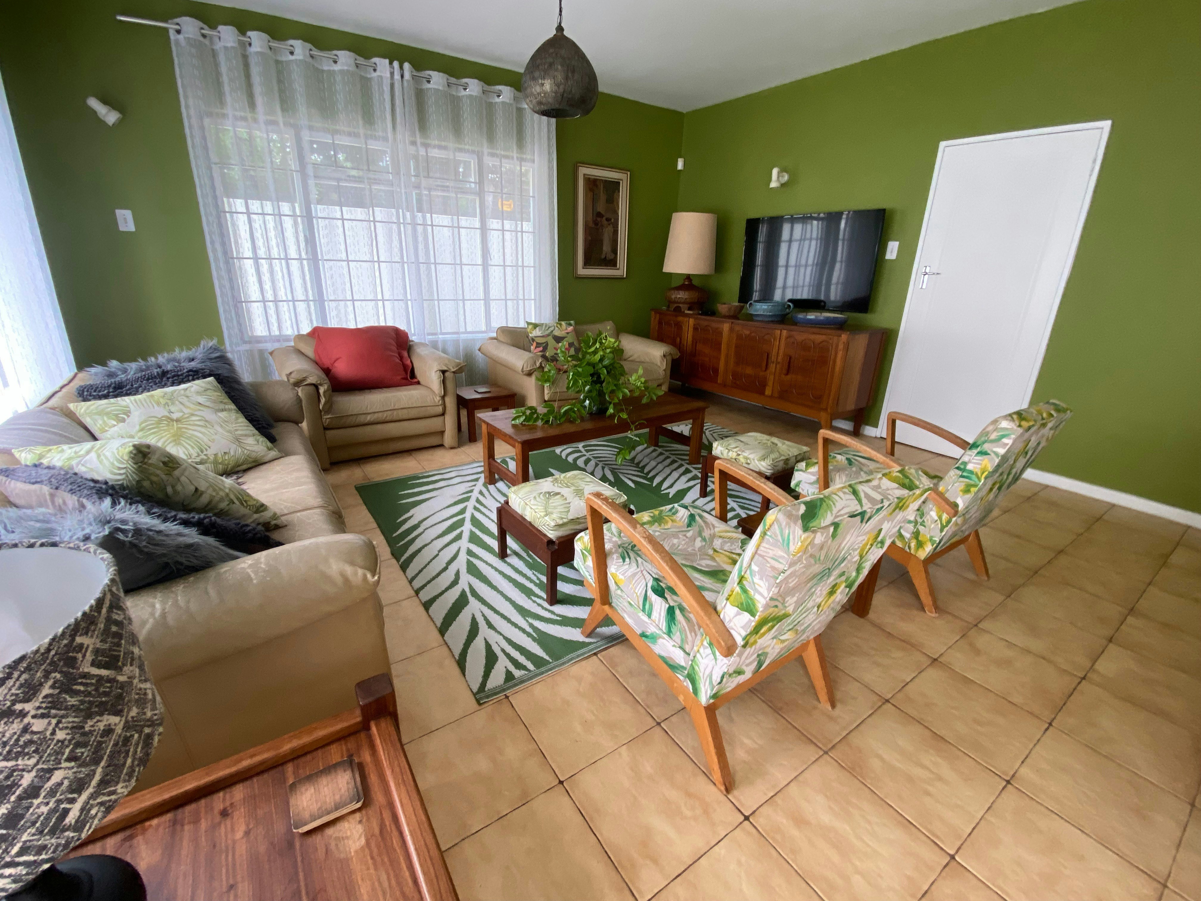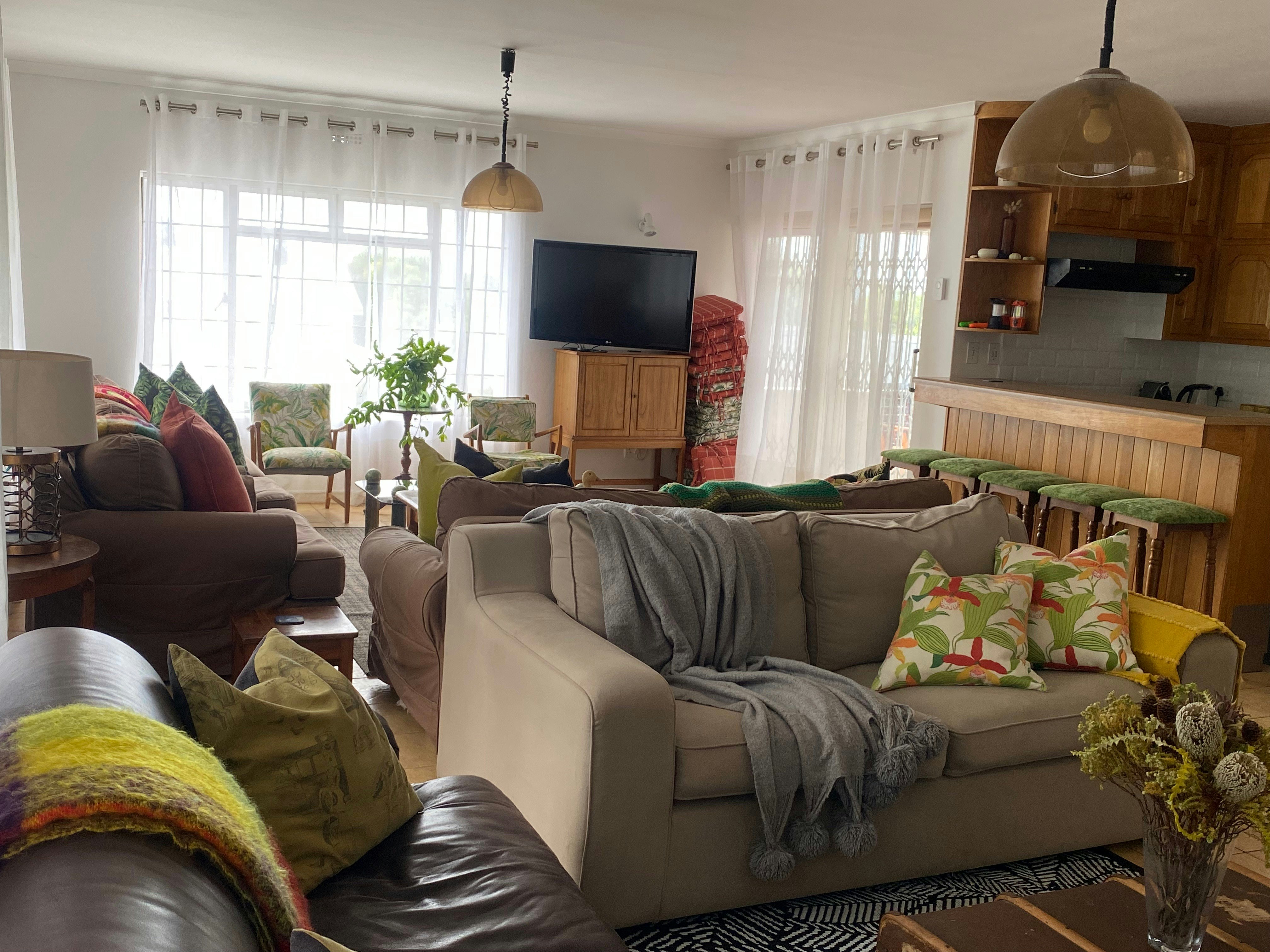 The main kitchen has a four-plate gas stove. There is also uninterrupted Wi-Fi thanks to an uninterruptible power supply. The TV on the upper level is kept running with a Gizzo lithium battery during load shedding. There are rechargeable LED lamps available in every room.