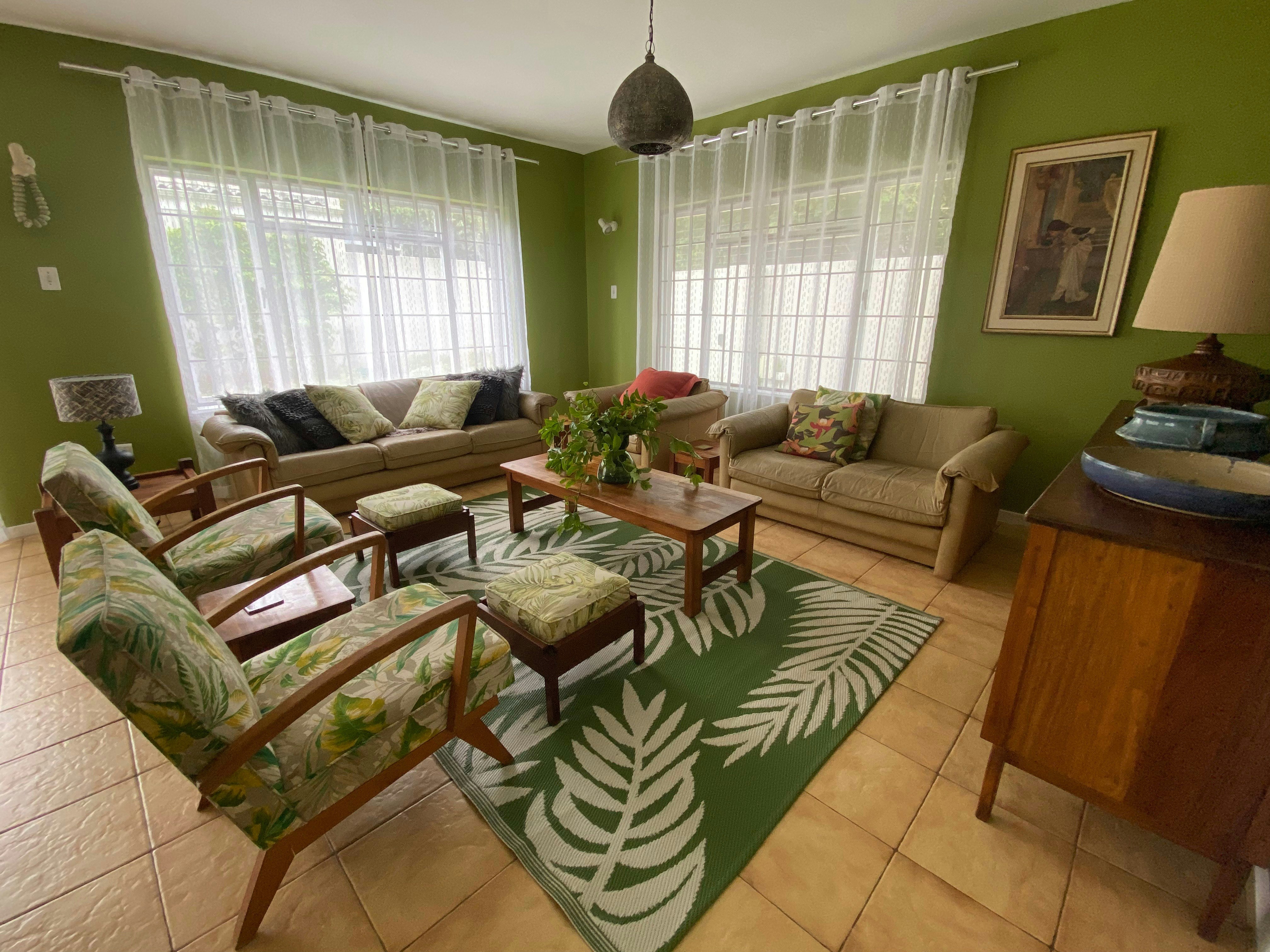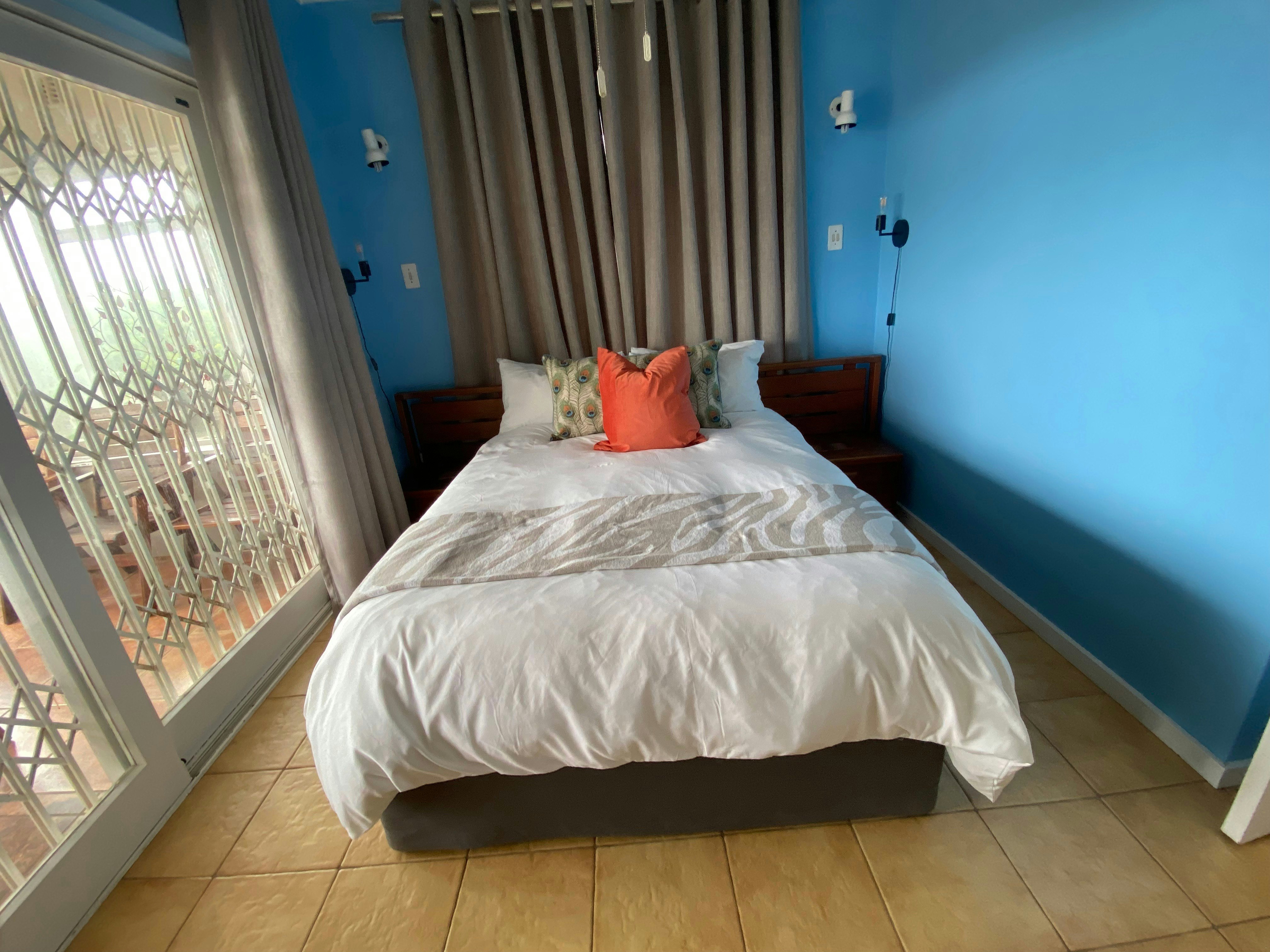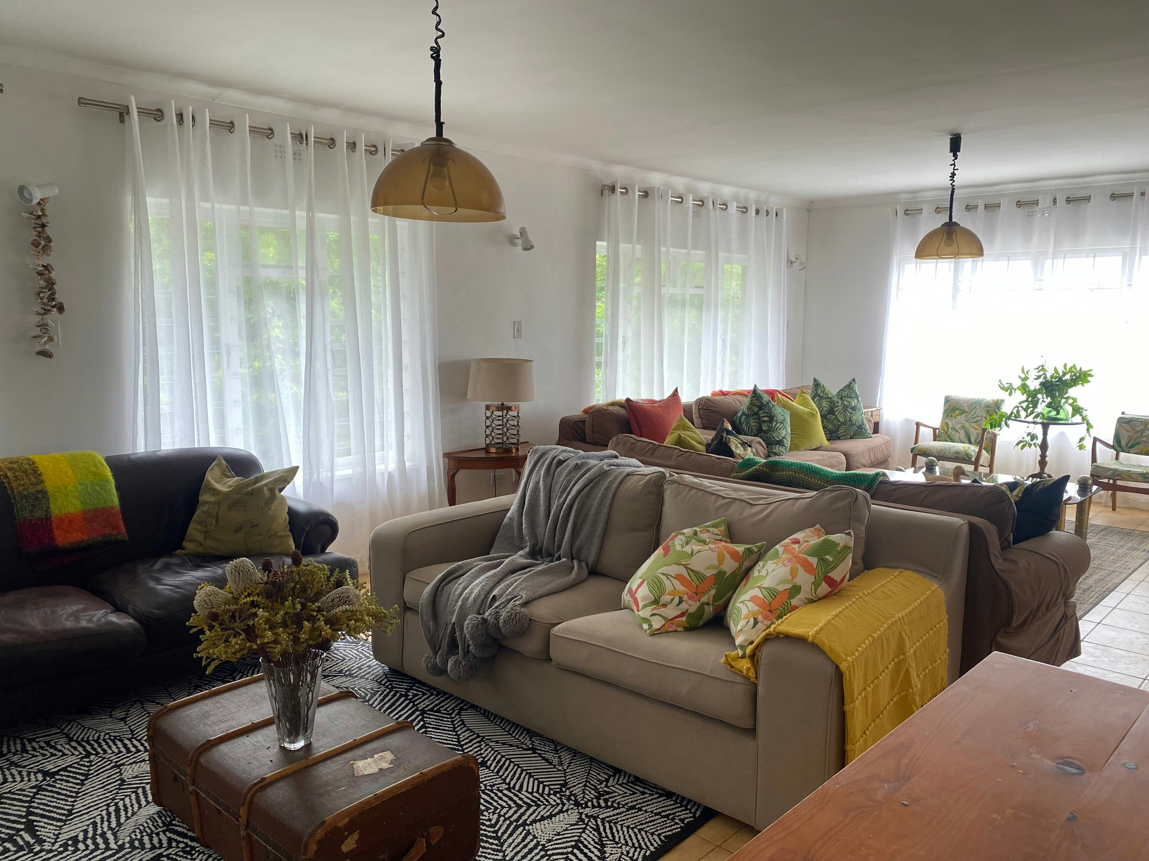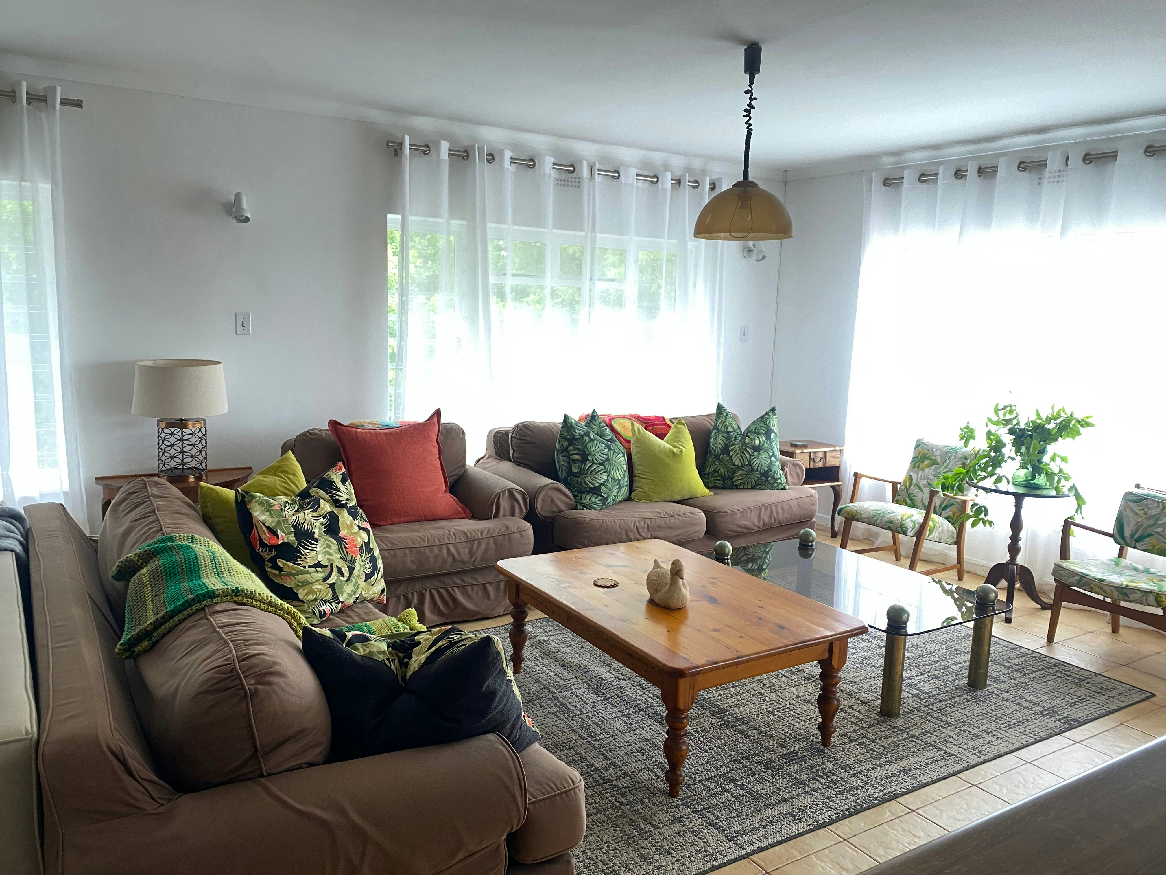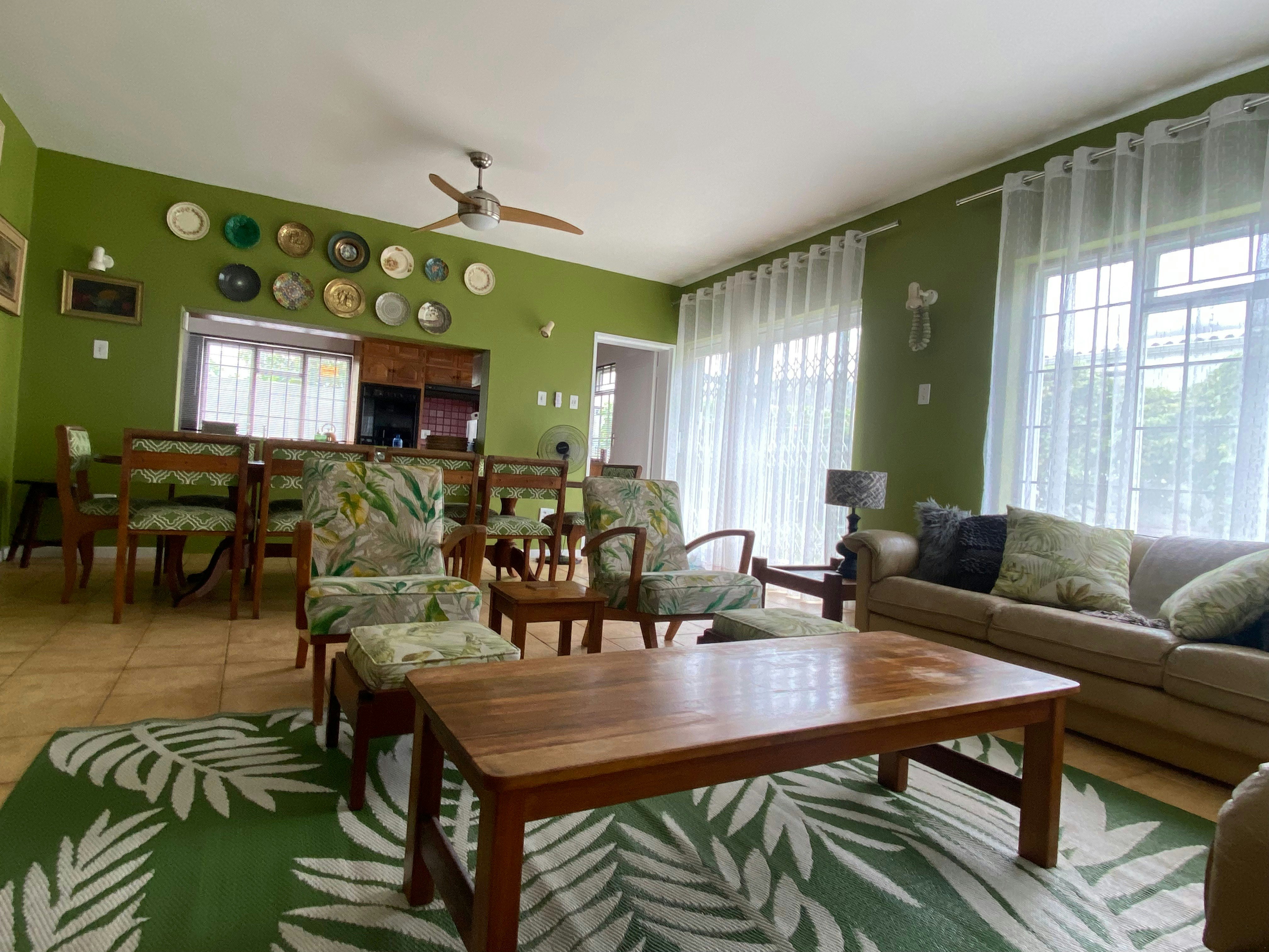 The main kitchen has a four-plate gas stove. There is also uninterrupted Wi-Fi thanks to an uninterruptible power supply. The TV on the upper level is kept running with a Gizzo lithium battery during load shedding. There are rechargeable LED lamps available in every room.