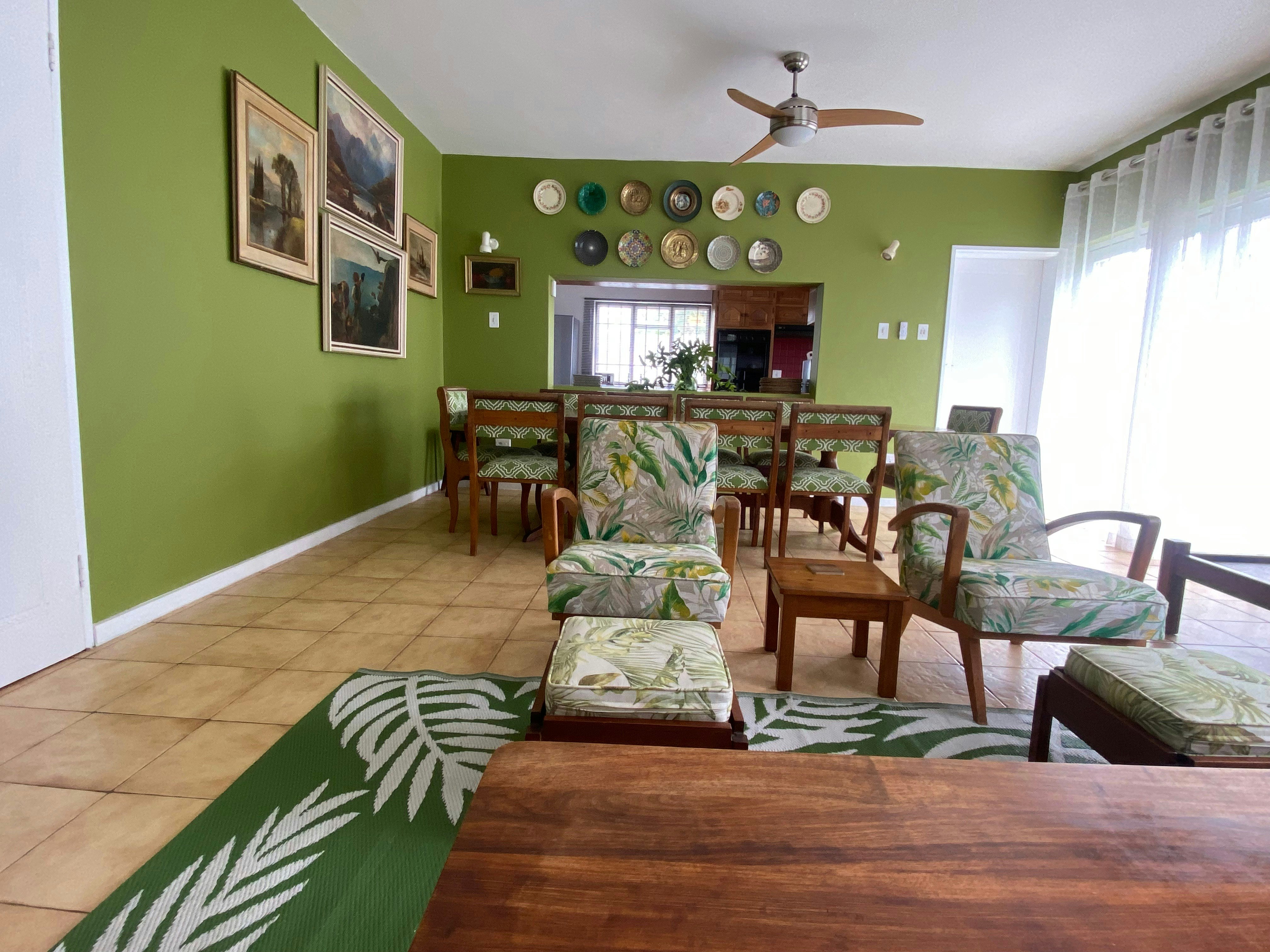 The double-storey house comprises 6 bedrooms and can accommodate up to 10 adults and 4 children at a time. The first bedroom has a bunk bed for children, and the second bedroom has a double bed. The third and fourth rooms each have a queen-size bed and a single bed for a child. The fifth and sixth bedrooms each have a double bed. All 3 bathrooms hold a bath, shower, as well as a toilet and basin. The main bedroom on the lower storey's bathroom is en-suite.
