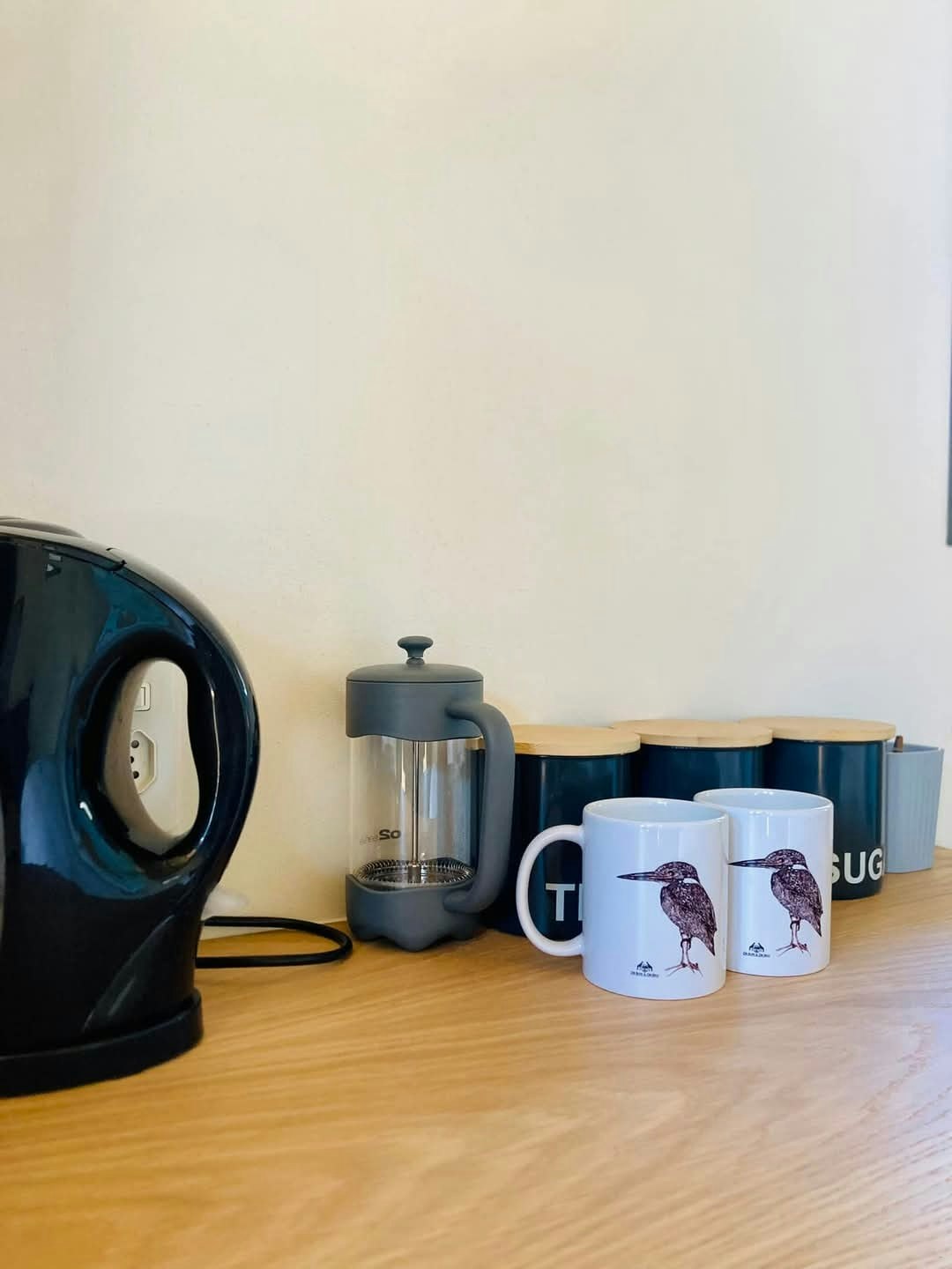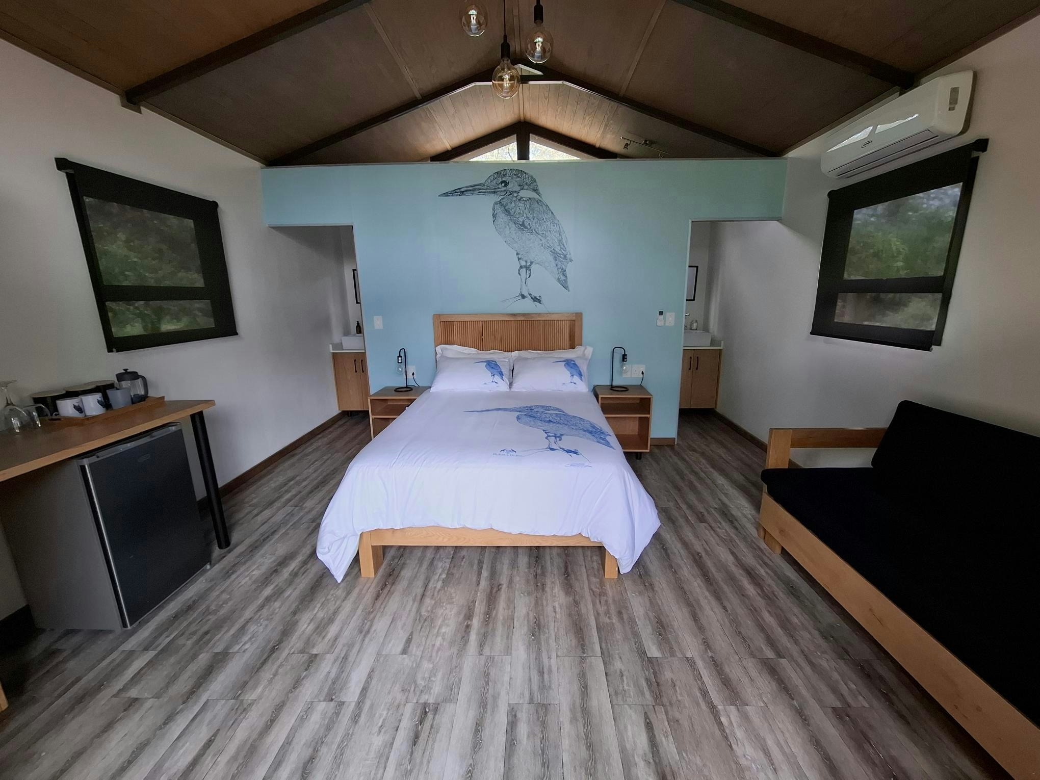 The Visvanger Huisie is a freestanding unit that comfortably accommodates up to 4 guests and is ideal for 2 adults and 2 children. The unit is furnished with a double bed and an en-suite bathroom fitted with a shower and toilet. Additionally, a child-only sleeper couch is available.
