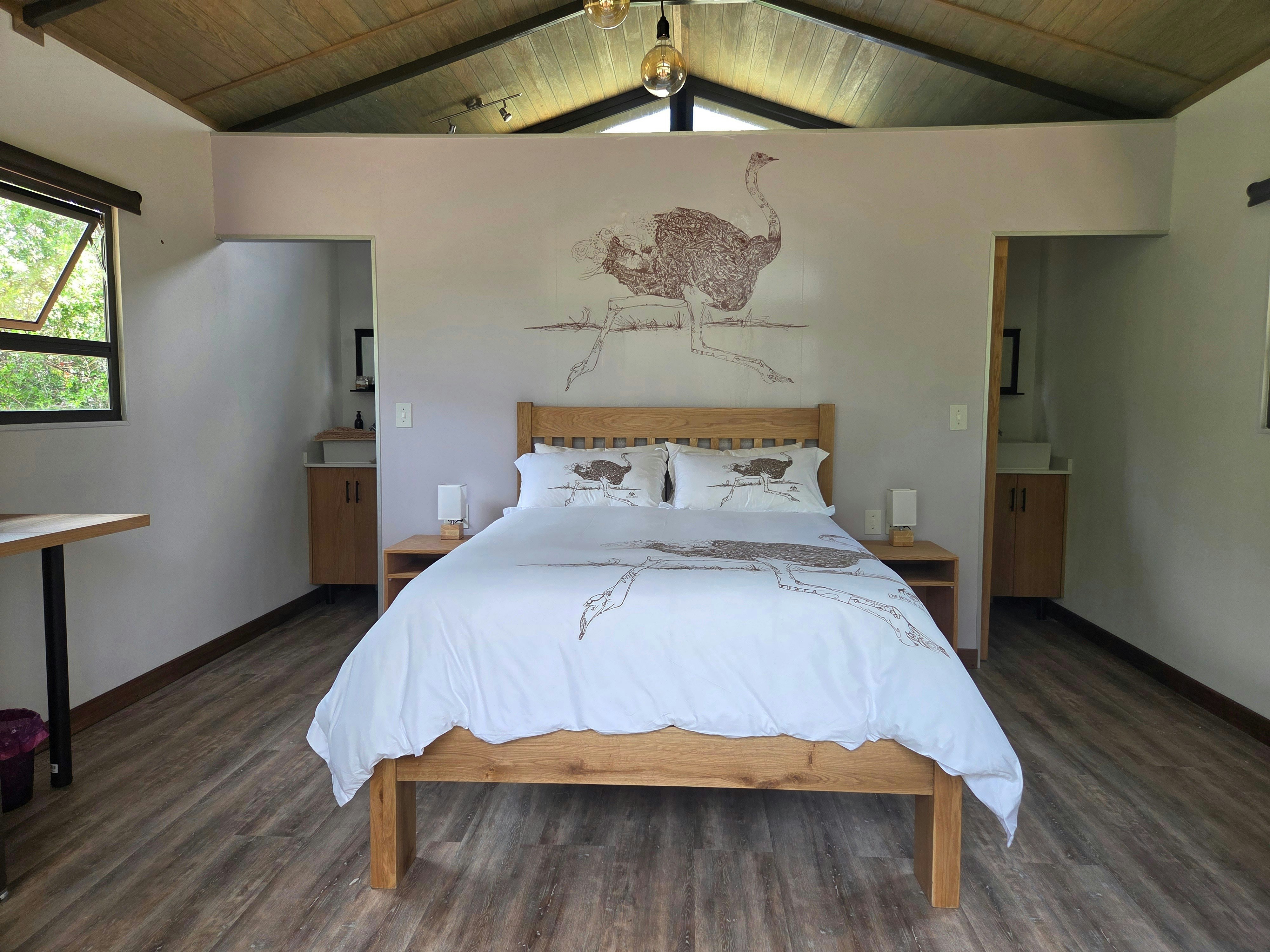 This Volstruis Huisie is a freestanding unit and can comfortably accommodate 2 guests. The unit is furnished with a double bed and an en-suite bathroom fitted with a shower and toilet.