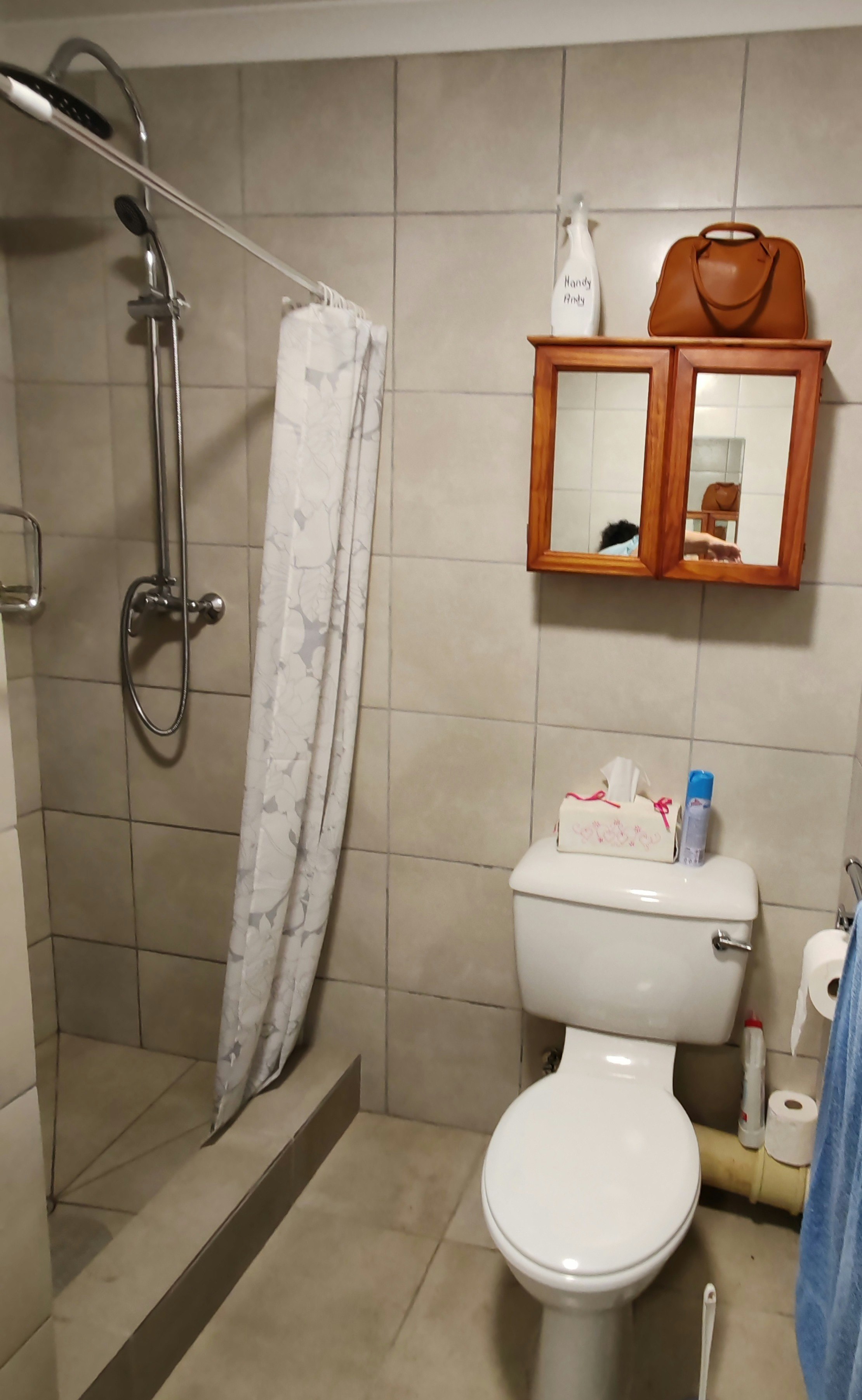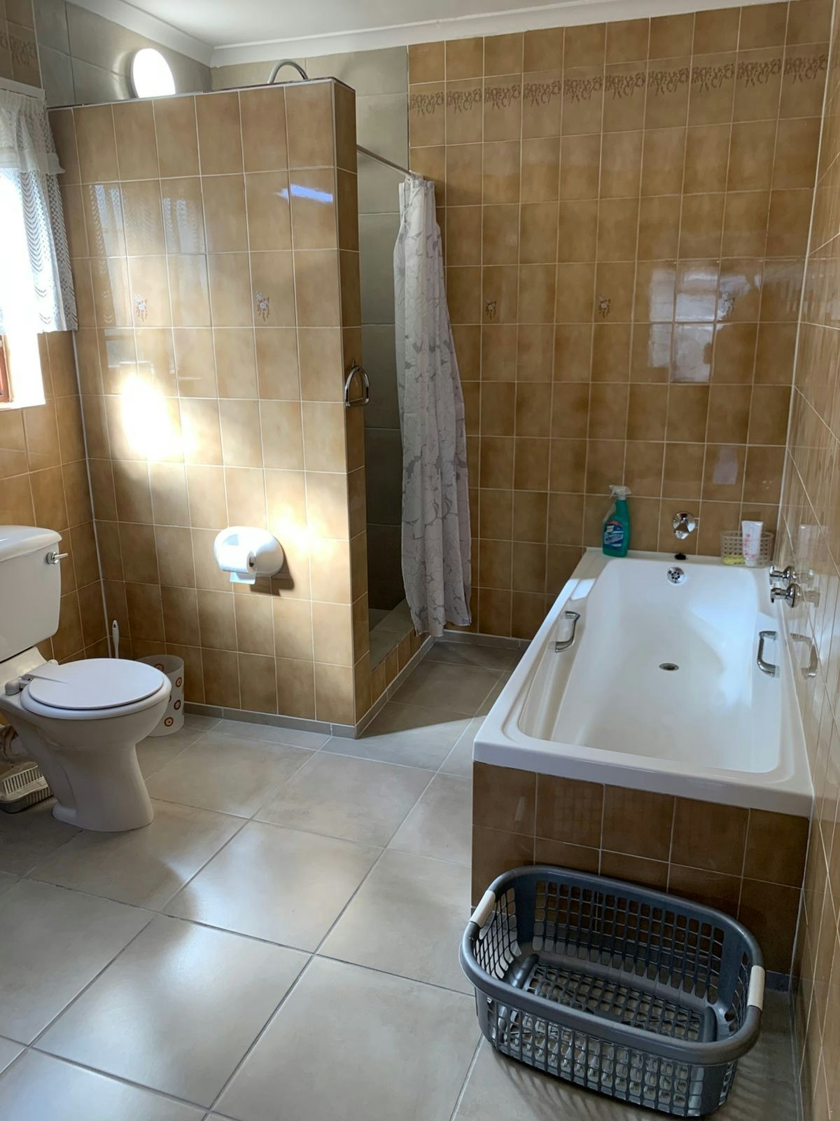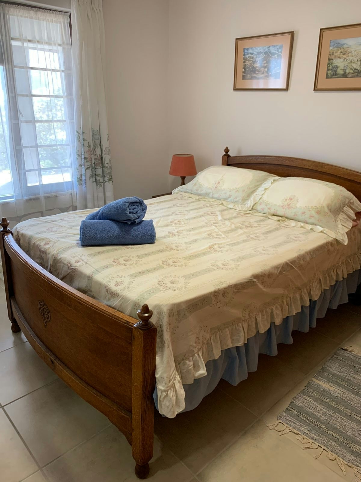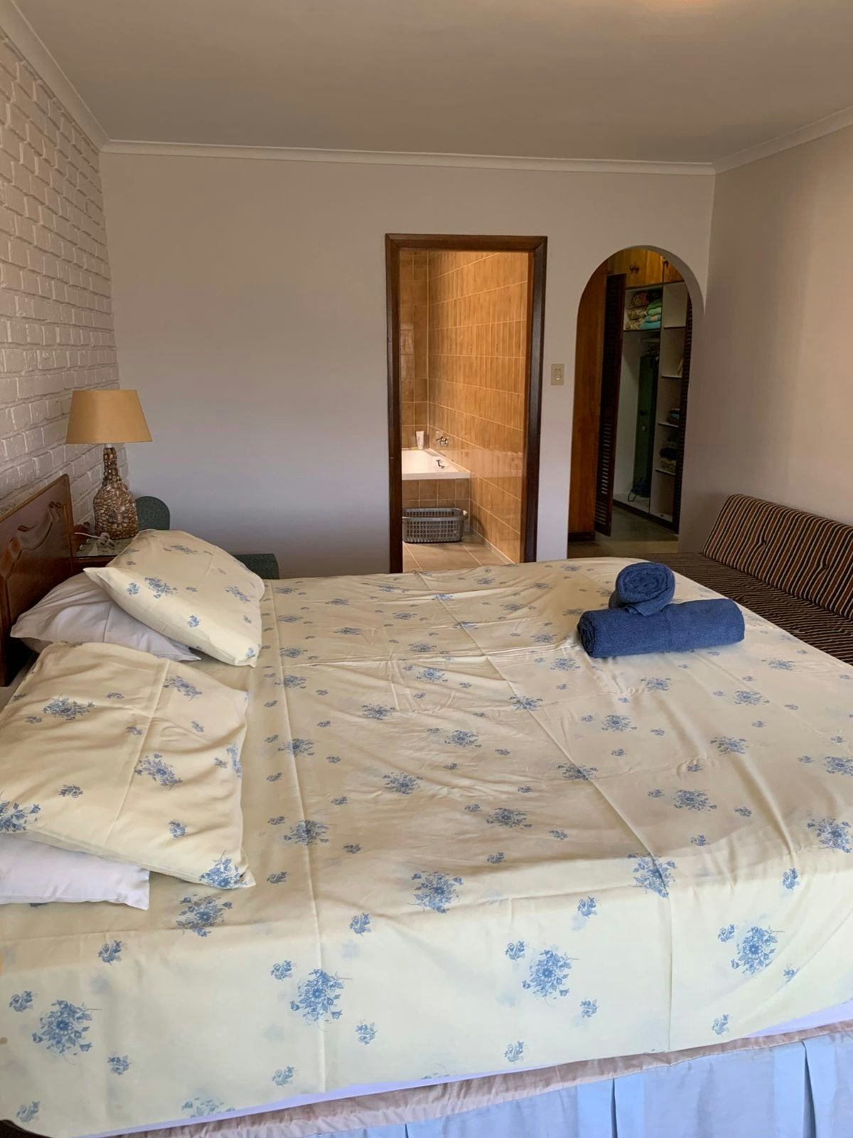 This house can accommodate up to 6 guests and comprises 3 bedrooms and 3 bathrooms. The main bedroom is furnished with a king-size bed and a single sleeper couch suitable for a child. It also has an en-suite bathroom fitted with a shower, bath, washbasin, and toilet. The two remaining bedrooms each contain a double bed. One of the remaining bathrooms is fitted with a shower over the bath, washbasin, and toilet, while the other has a shower, washbasin, and toilet.