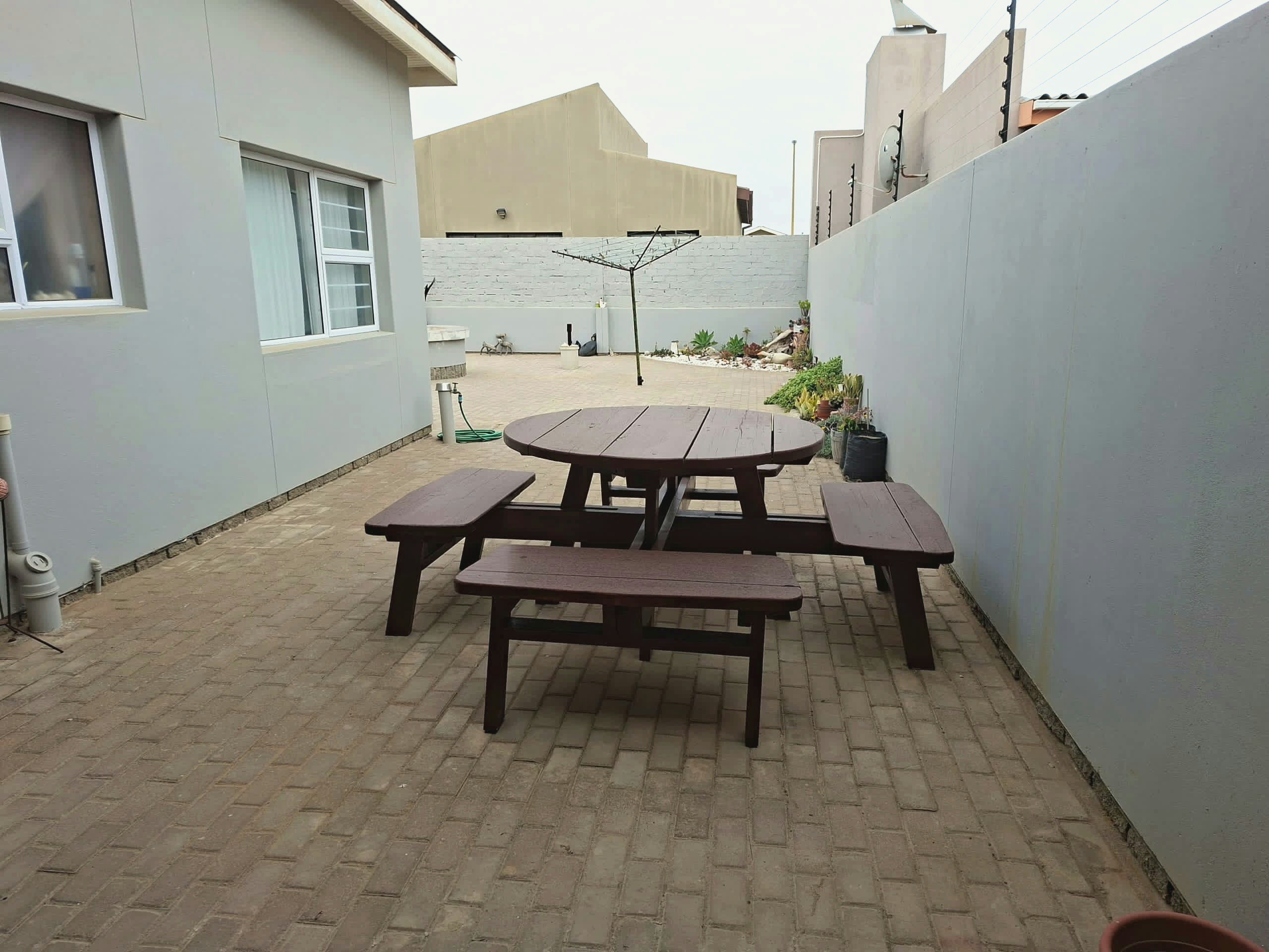 Outside, guests can relax in a wind-sheltered courtyard or enjoy the outdoor boma. Secure garage parking is provided, and pet-friendly stays can be arranged on request.