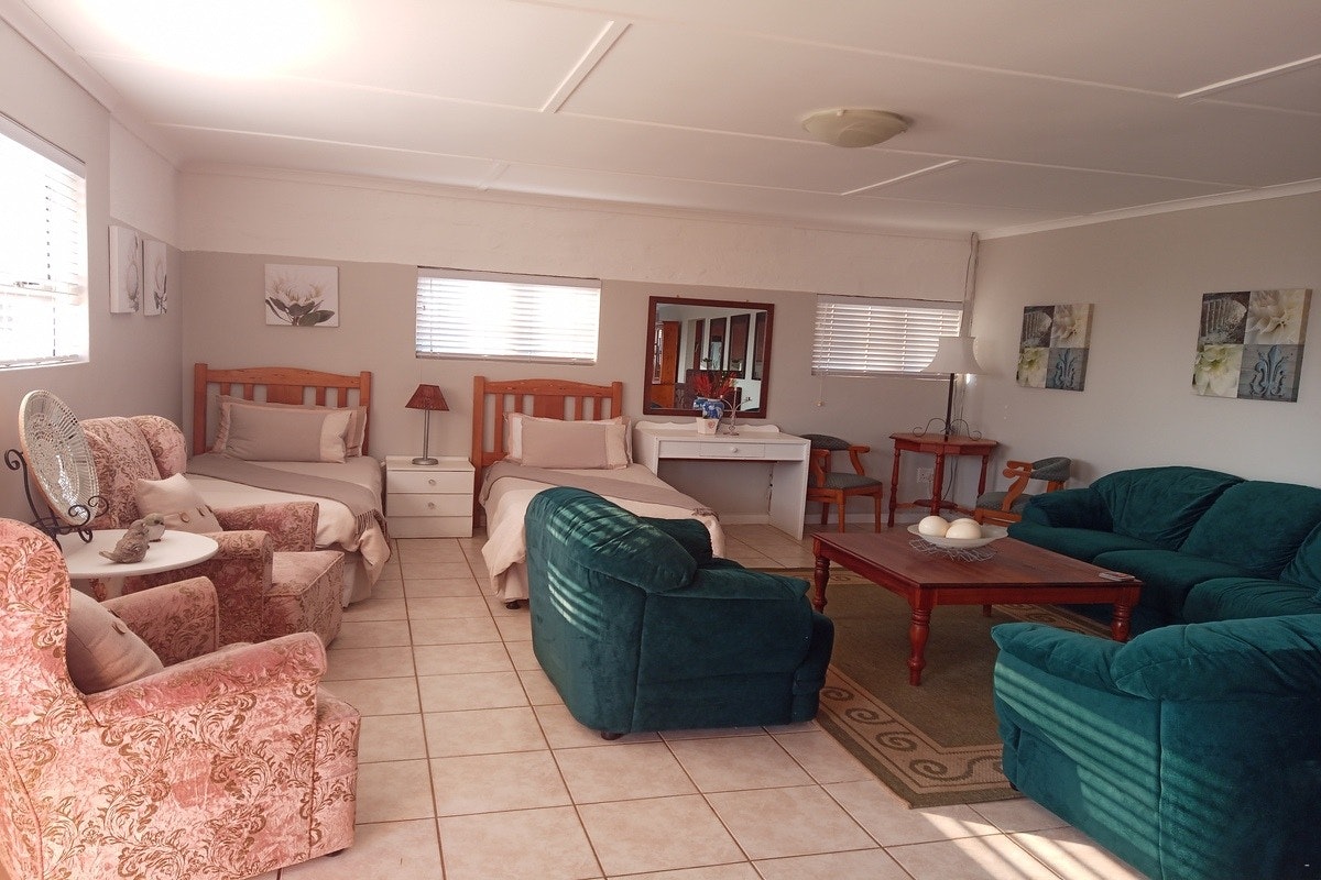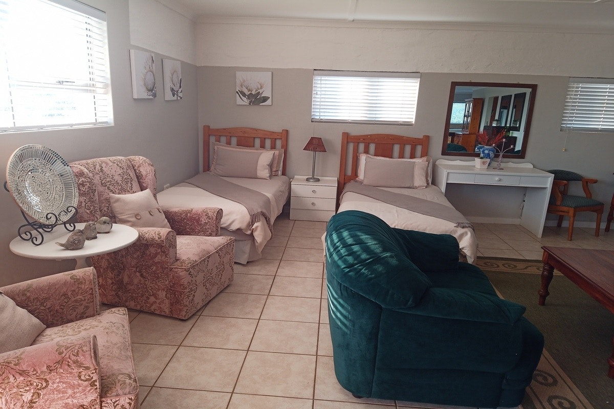 Outside, there is a lovely garden space with outdoor furniture and braai facilities, which is an ideal spot for a sundowner in the evening. A braai grid and utensils are provided and firewood is available at an additional cost. There is plenty to do on the farm and surrounding areas such as fishing in the Gourits River, fishing from the rocks, beautiful picnic spots, olive, wine and gin tasting, game viewing, hiking, cycling, jogging and 4x4 dune driving.