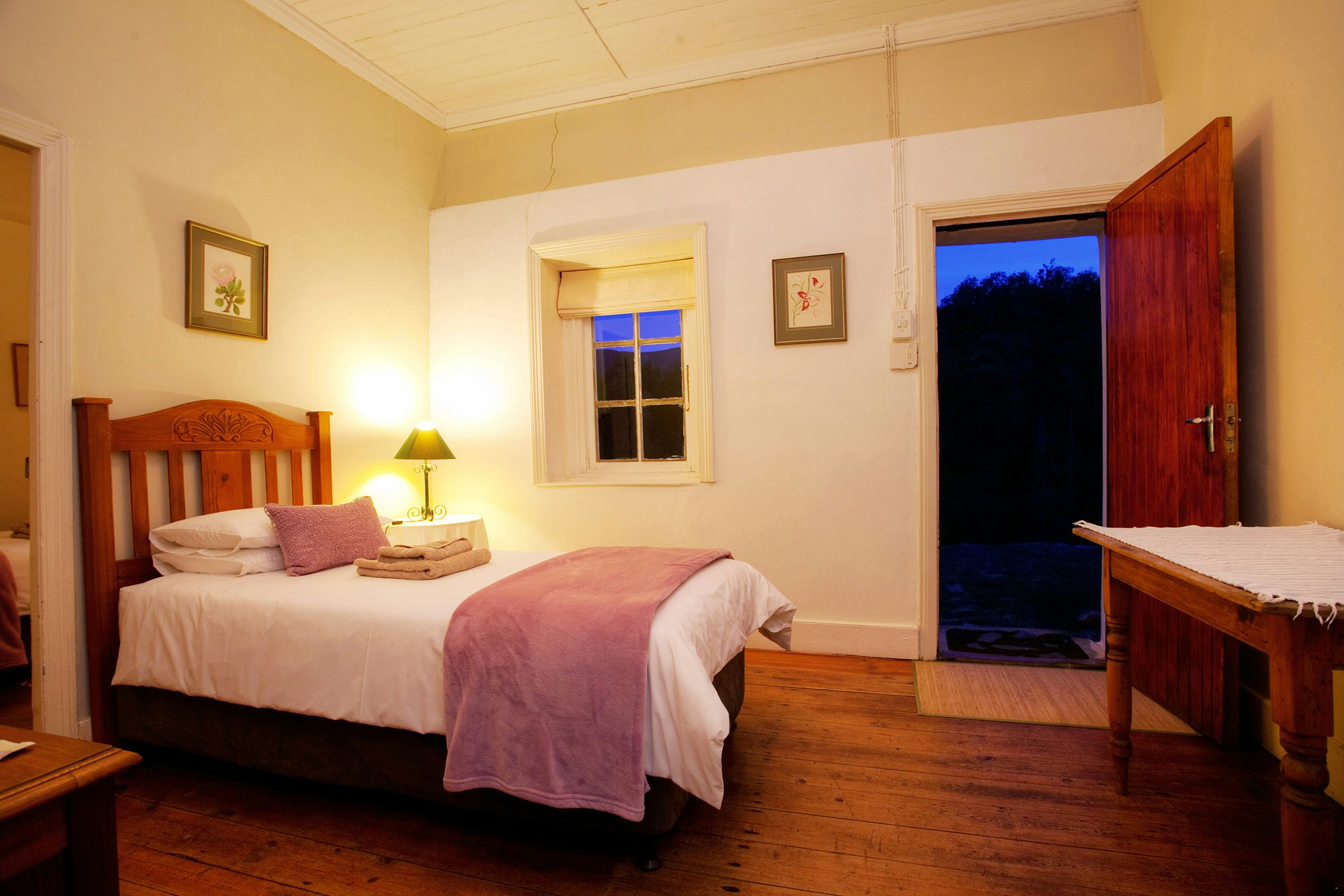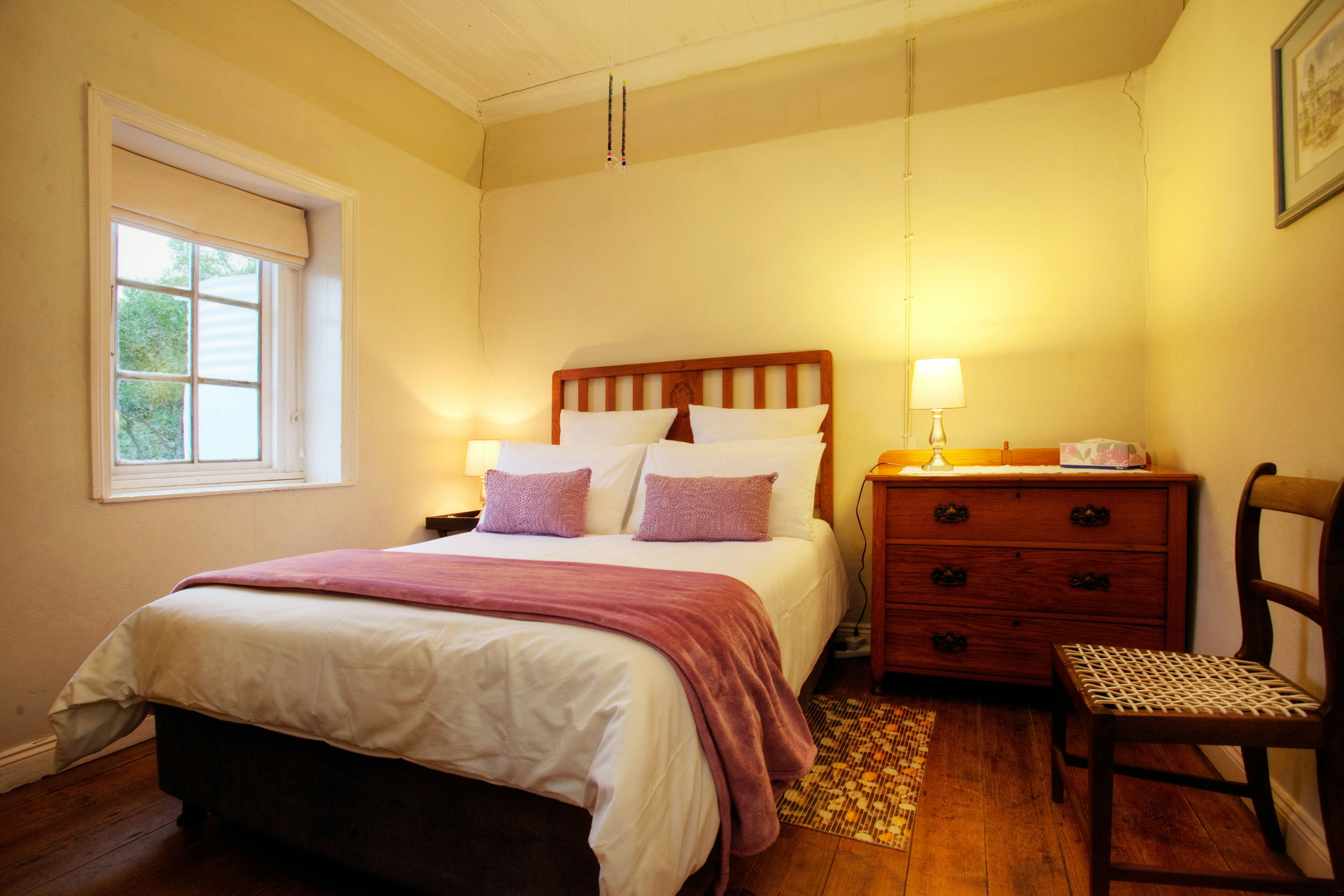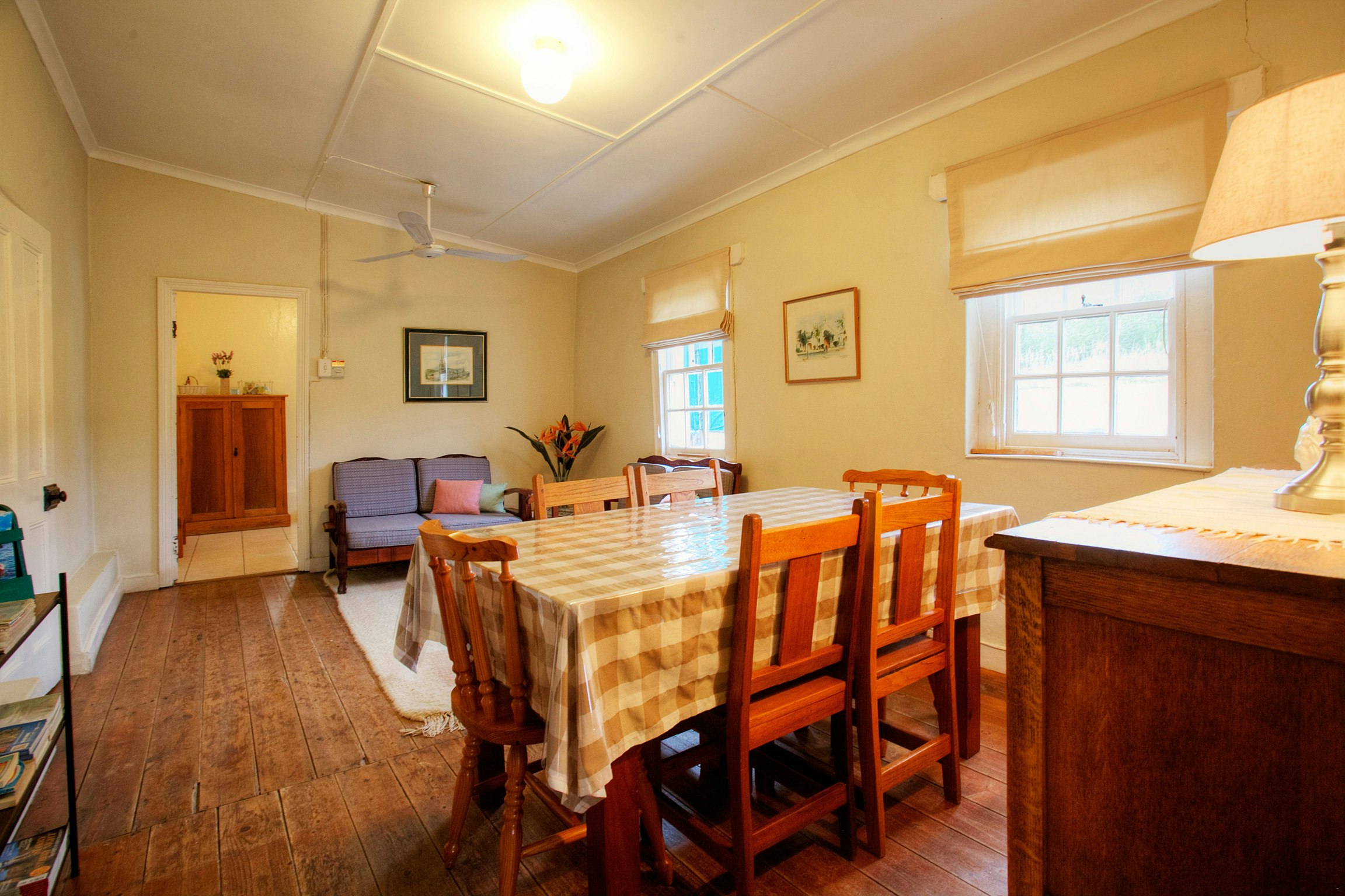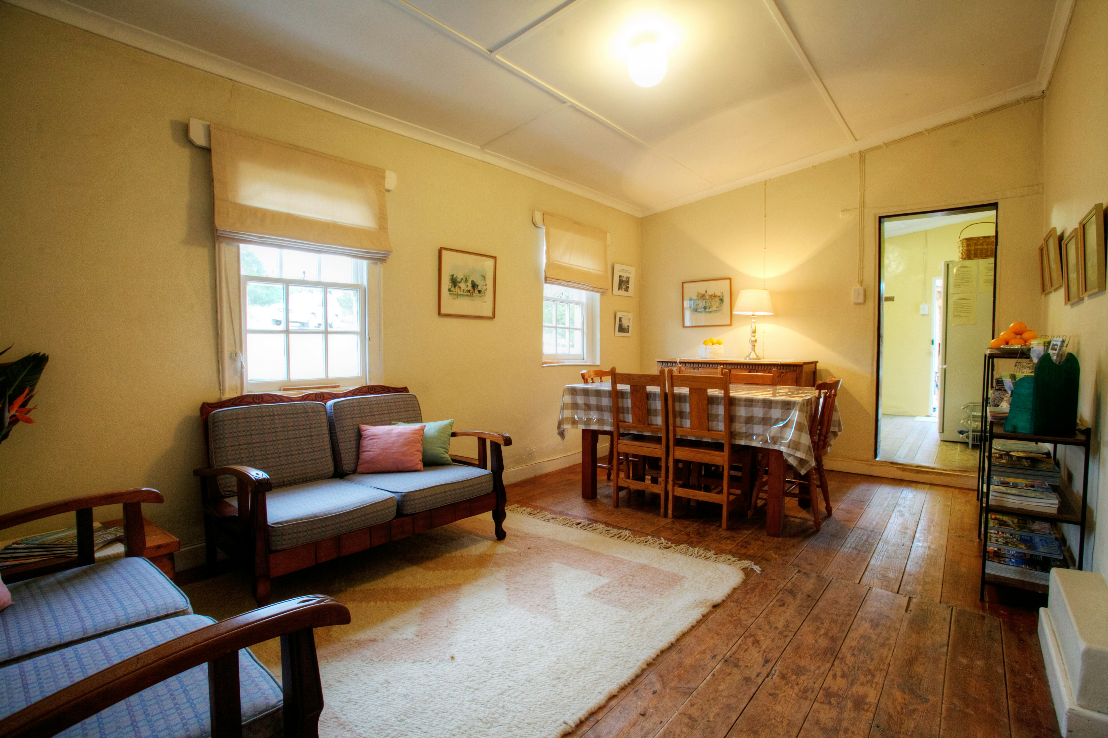 This 3 bedroom cottage is comfortably furnished and has 1 shared bathroom with a bath and overhead shower. There are 2 room fitted with a double bed and ceiling fans, while the third room is furnished with 1 single bed. There is an additional single bed is located in the entrance hall. All the rooms have oil heaters, linen and towels. The kitchen is fully equipped for self-catering with a gas stove and oven, an antique wood burning stove and Cape Dutch baking oven; a microwave, kettle, toaster and fridge-freezer. A private braai area is located next to the kitchen. Guests can enjoy their meals in the open-plan dining room or relax in the lounge.