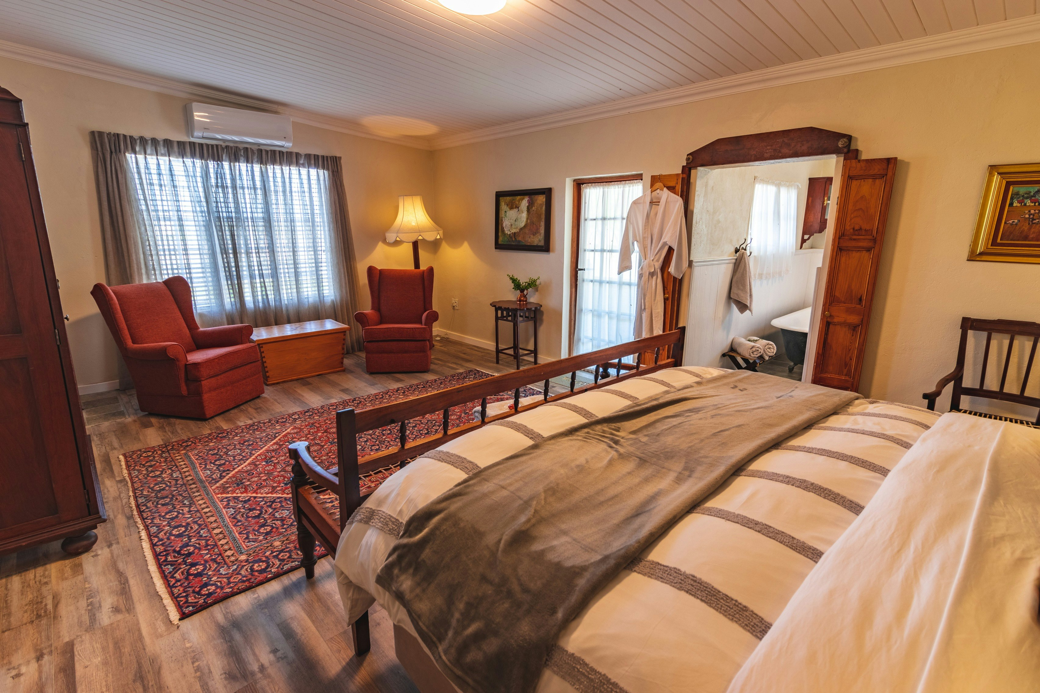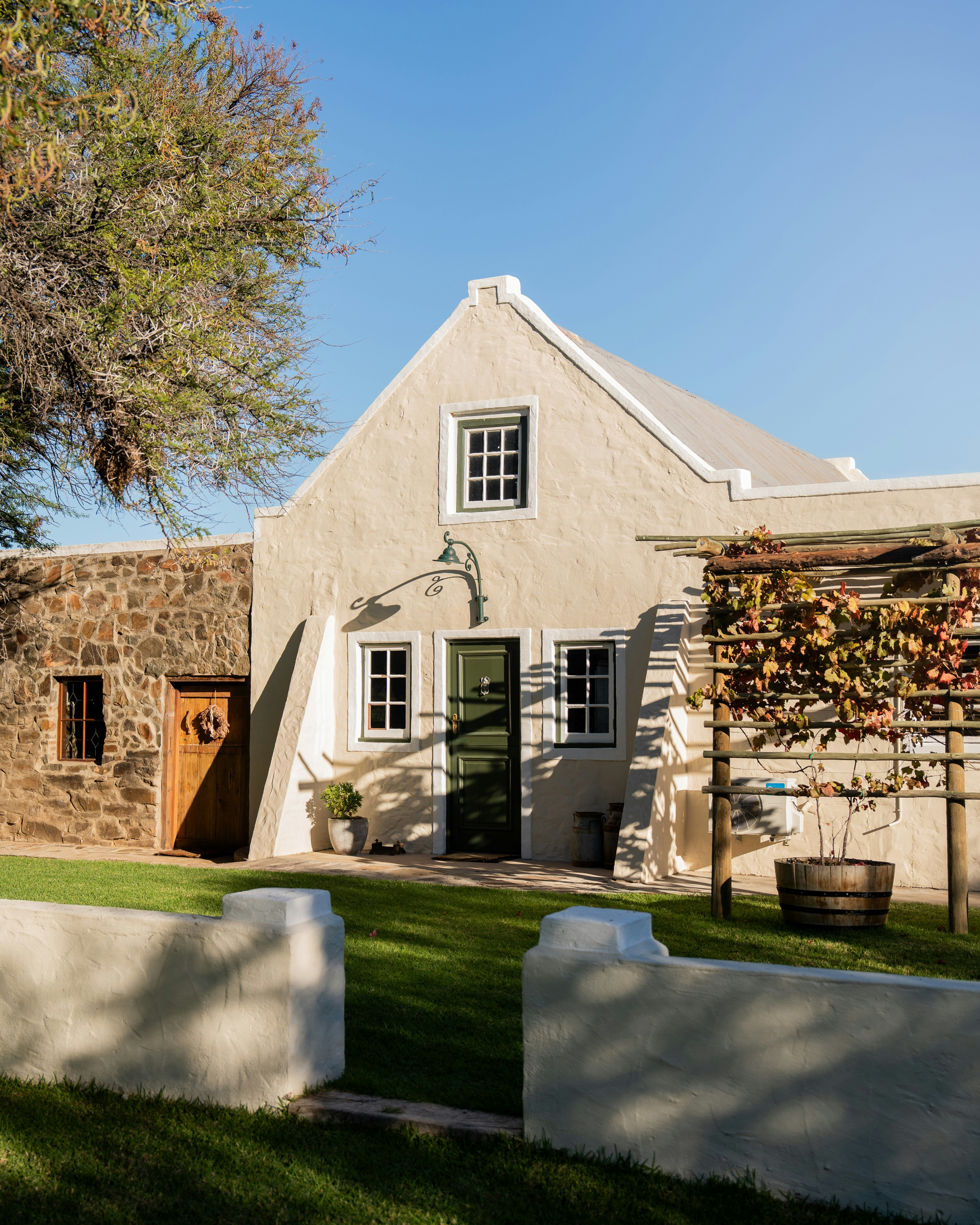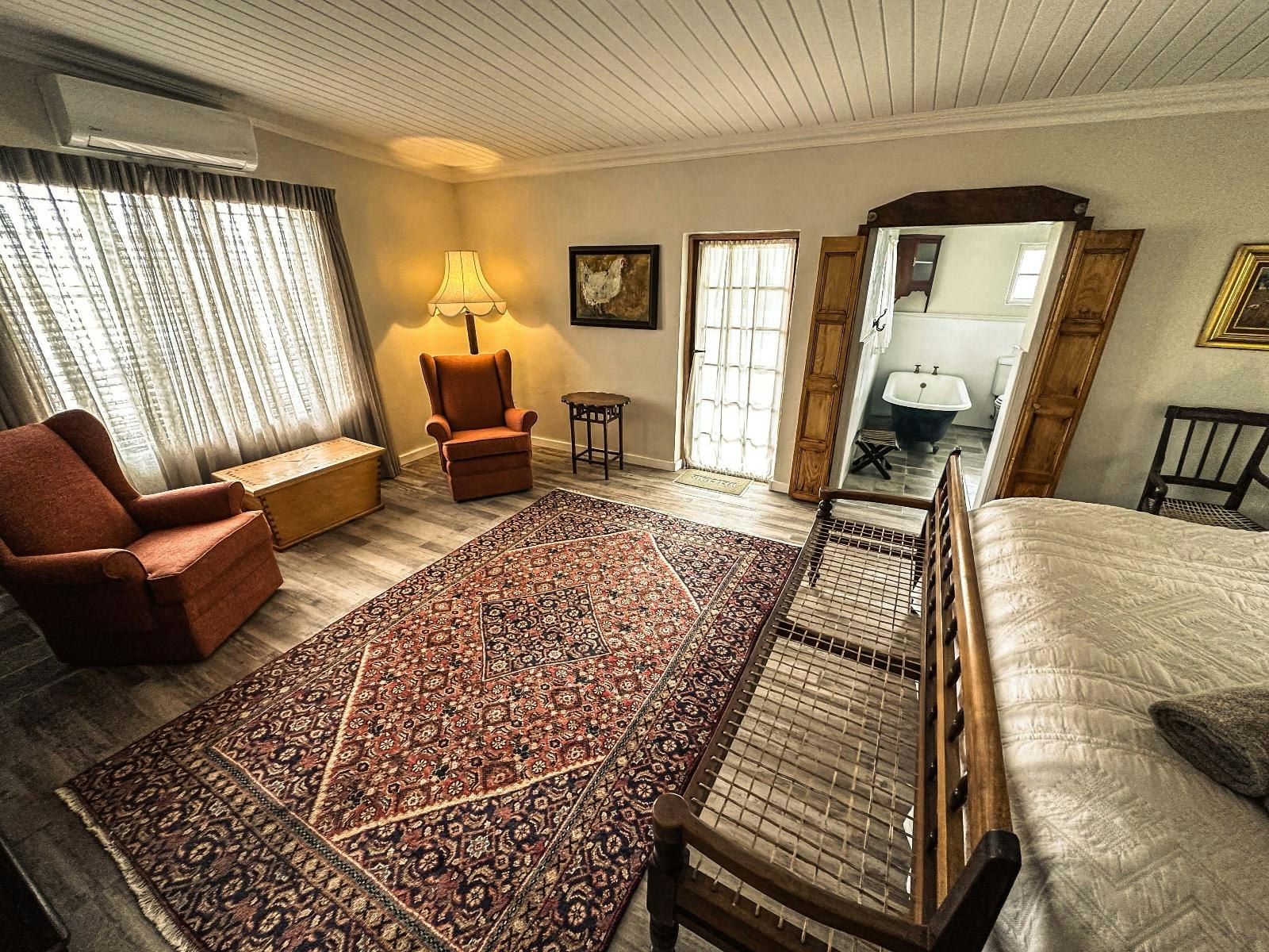 Die Stal is a 2-bedroom cottage that sleeps 4 adults. Both of the bedrooms have a queen-size bed. Both rooms have an en-suite bathroom fitted with a shower and toilet, and the main en-suite also has a bath.