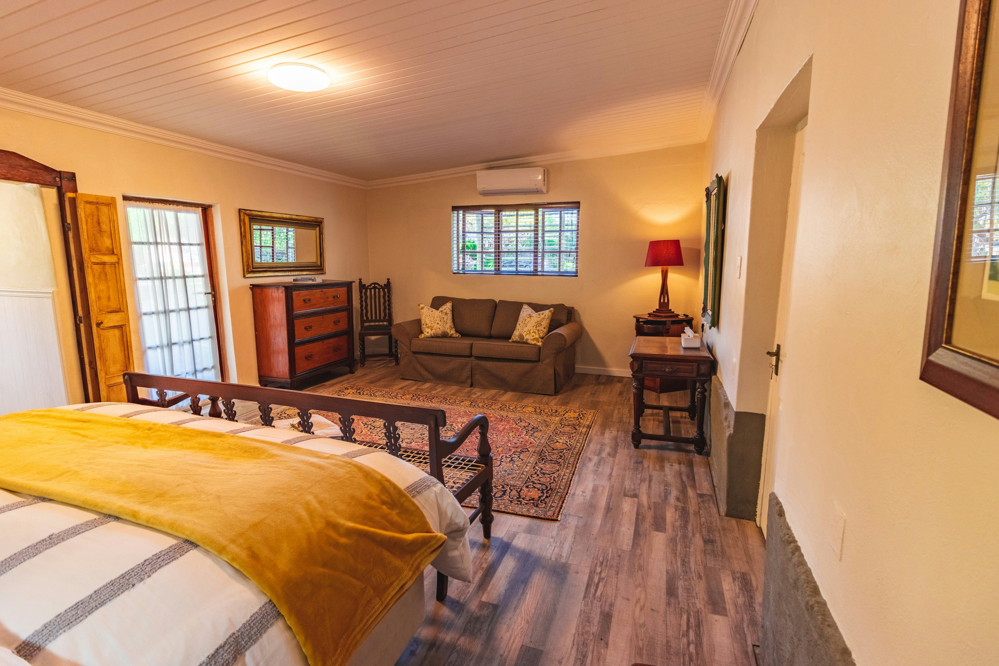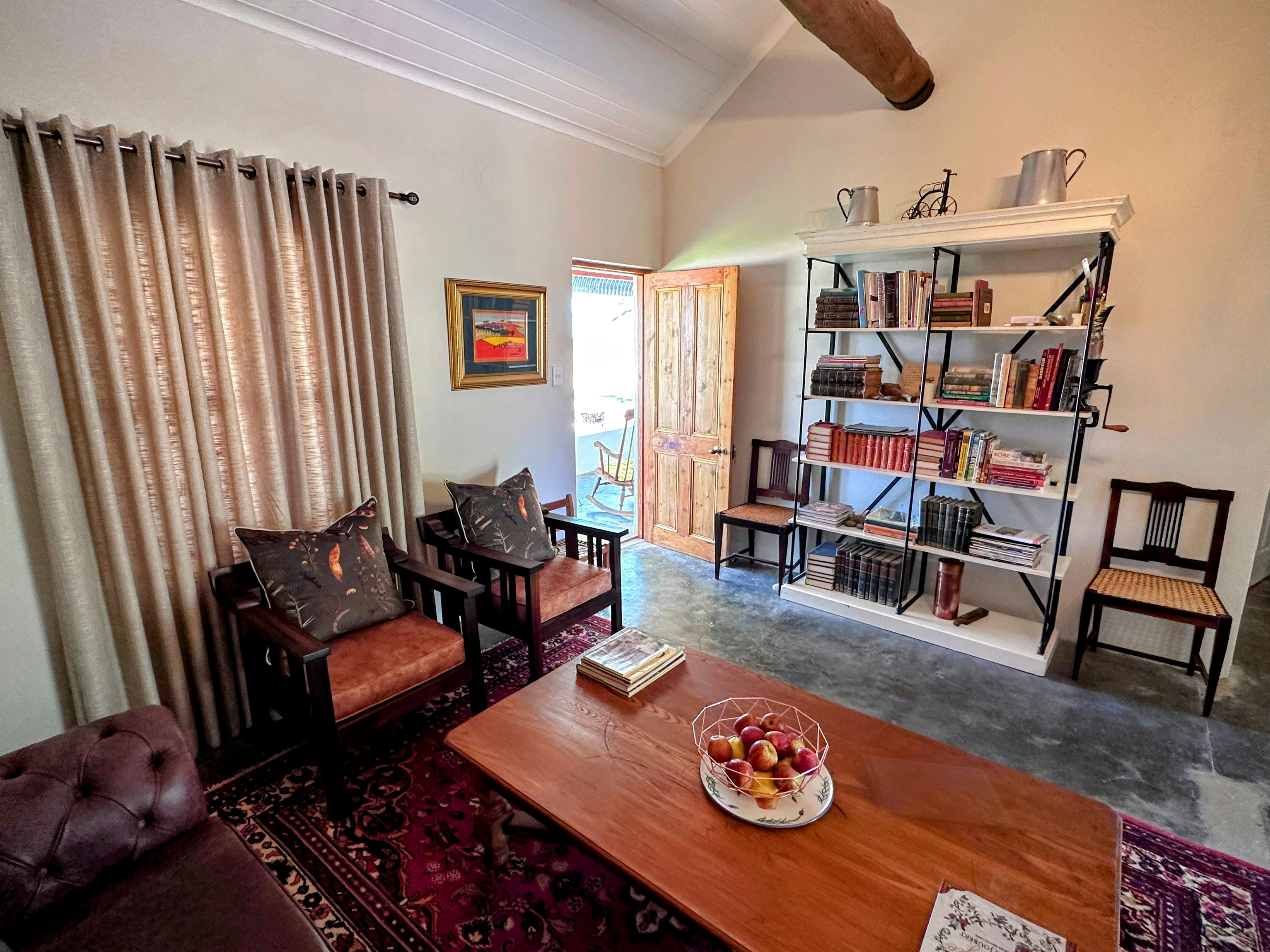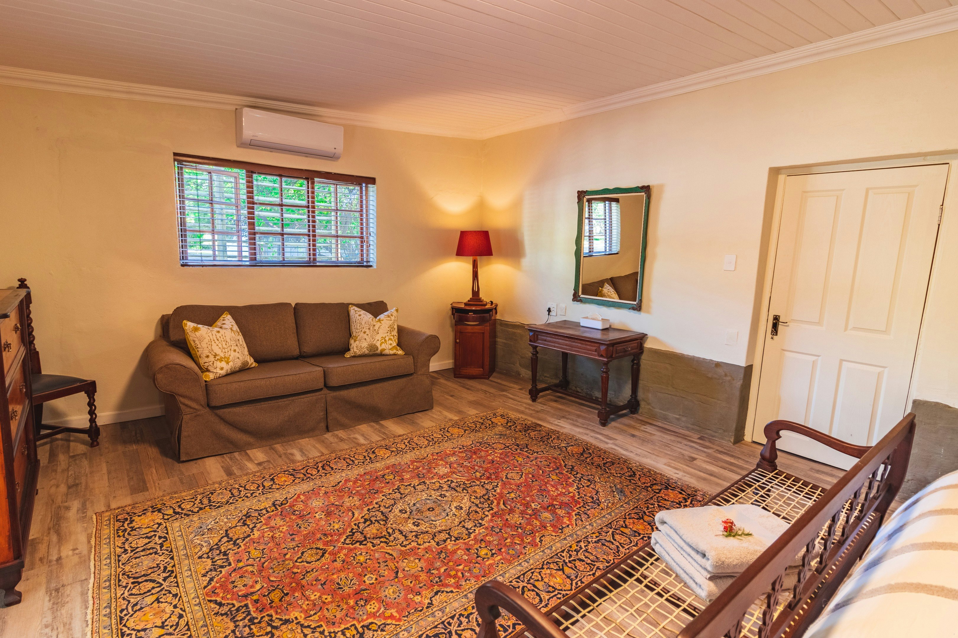 Die Skooltjie is a quaint 1-bedroom cottage that accommodates 2 adults and 1 child. The bedroom is furnished with a double bed while the lounge has a daybed for children. The bathroom is fitted with a shower.