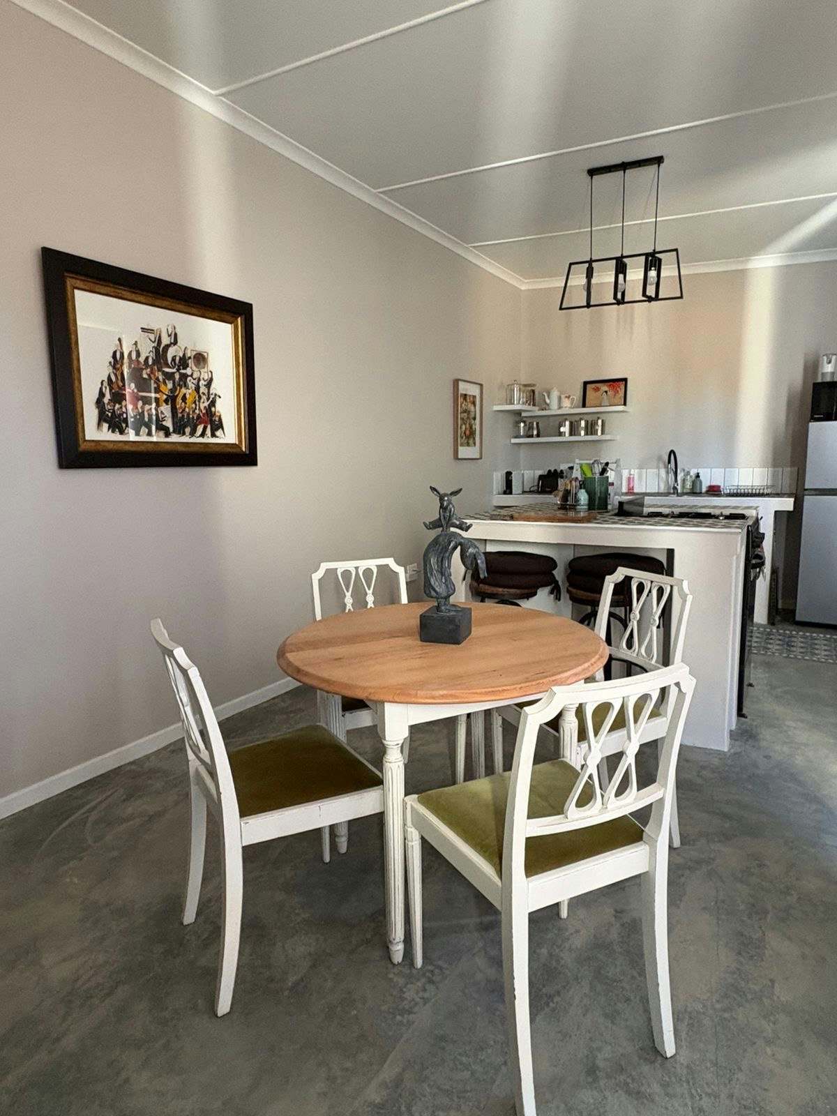 The kitchen is fully equipped with a fridge-freezer, gas stove, oven, microwave, Nespresso coffee machine, and a 4-seater dining table, perfect for meals. The lounge is furnished with comfortable seating.