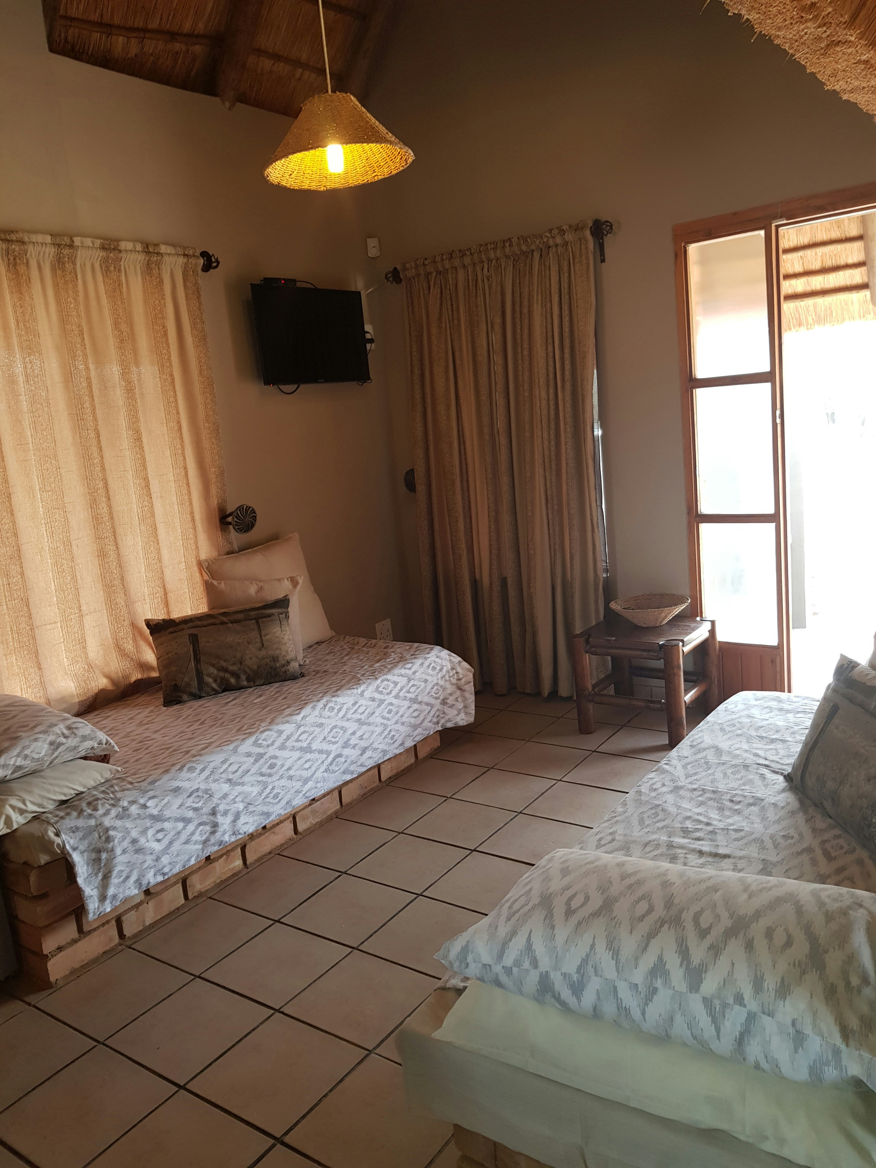 Dimalachite River Lodge & Nature Resort: Zebra chalet 5 or 6 (Open plan 2 bed plus bunk bed per unit)