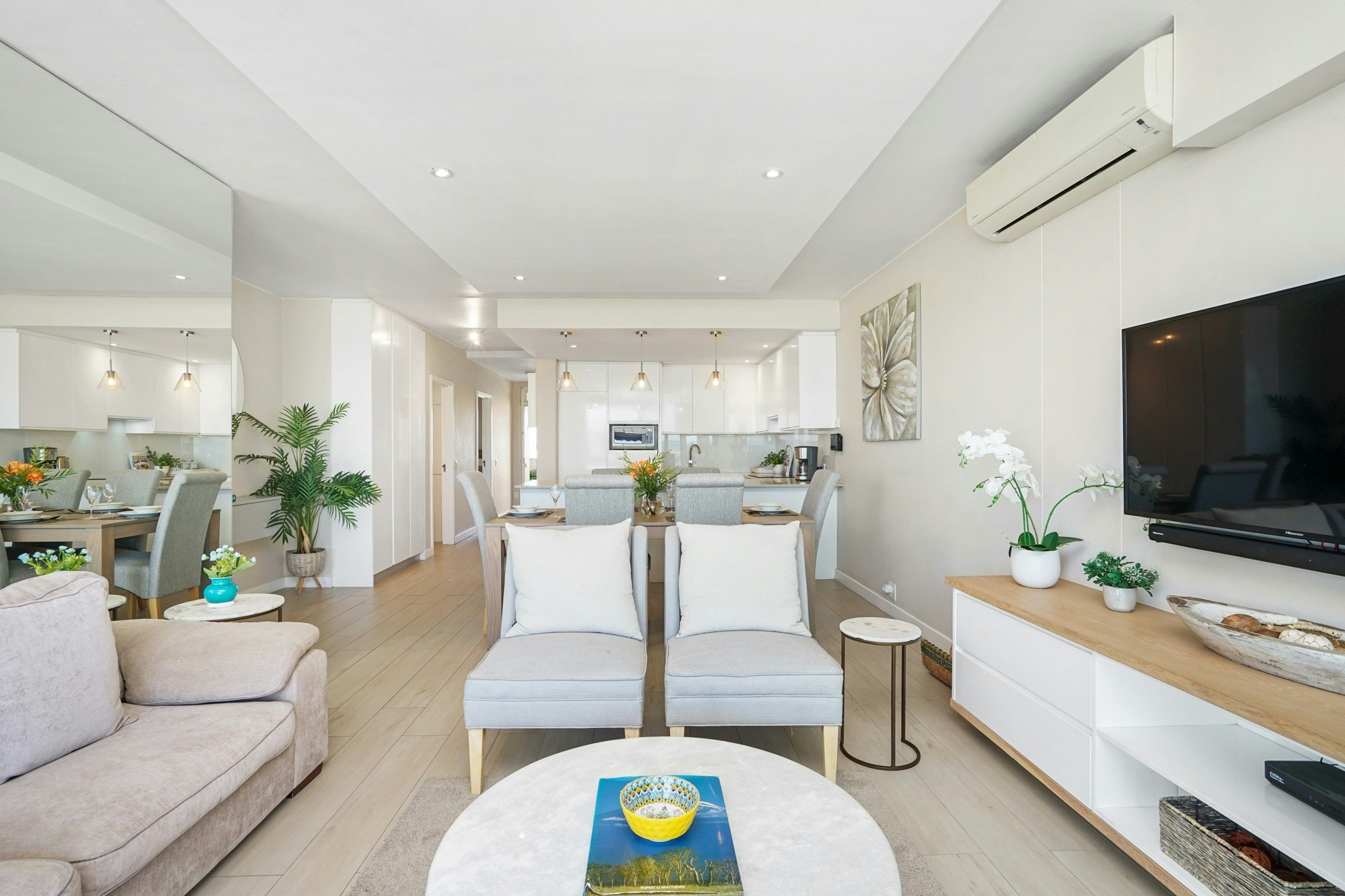 Dolphin Beach H106 is a spacious and elegantly decorated self-catering apartment, located in the secure Dolphin Beach complex in Bloubergstrand. The apartment offers views over the Atlantic Ocean towards the glittering lights of Cape Town at the foot of the magnificent Table Mountain.
