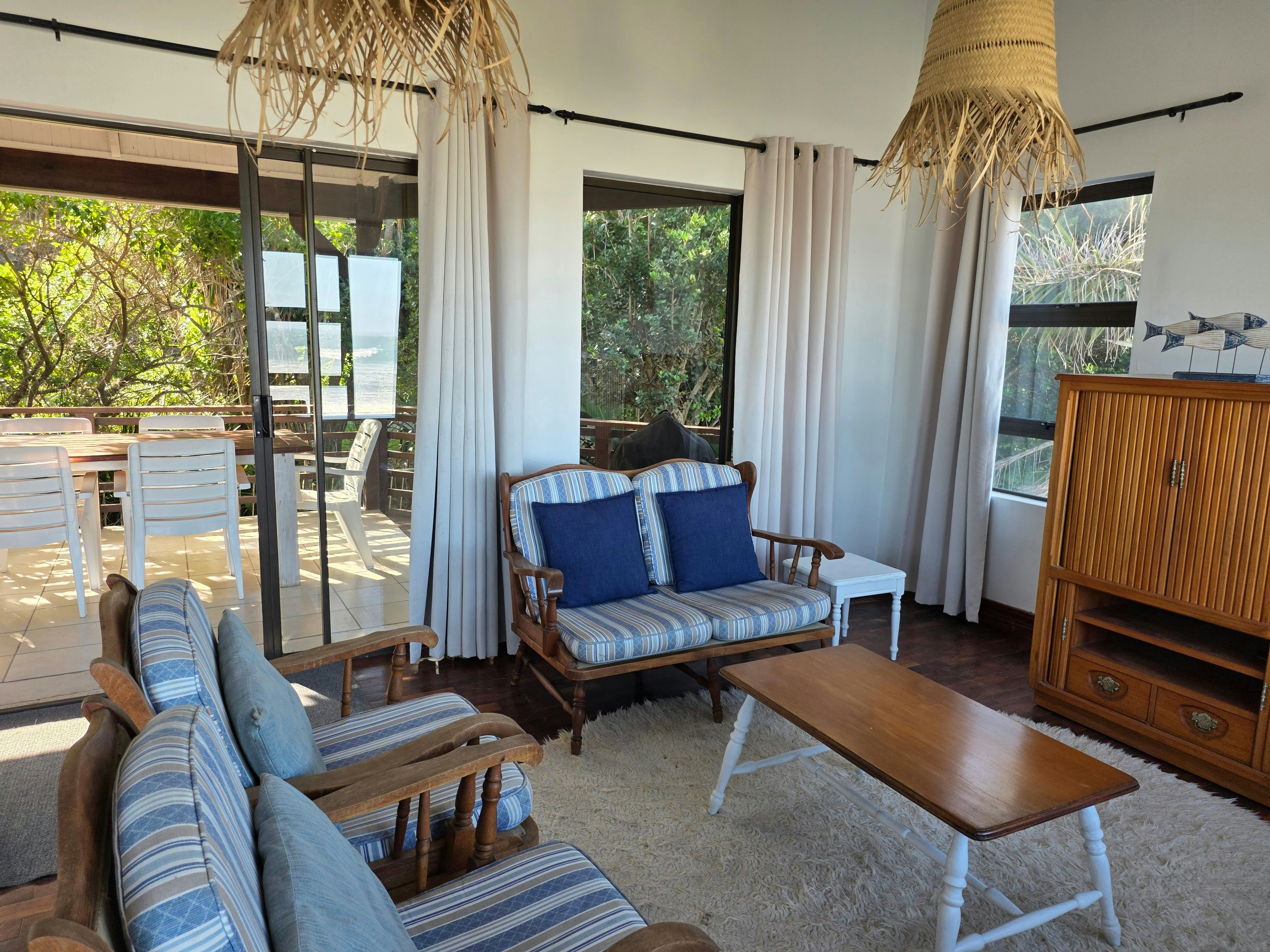 The living area opens onto a small front deck to enjoy the breathtaking sea and cliff views and a large covered, sheltered deck to enjoy a braai or alfresco dining.