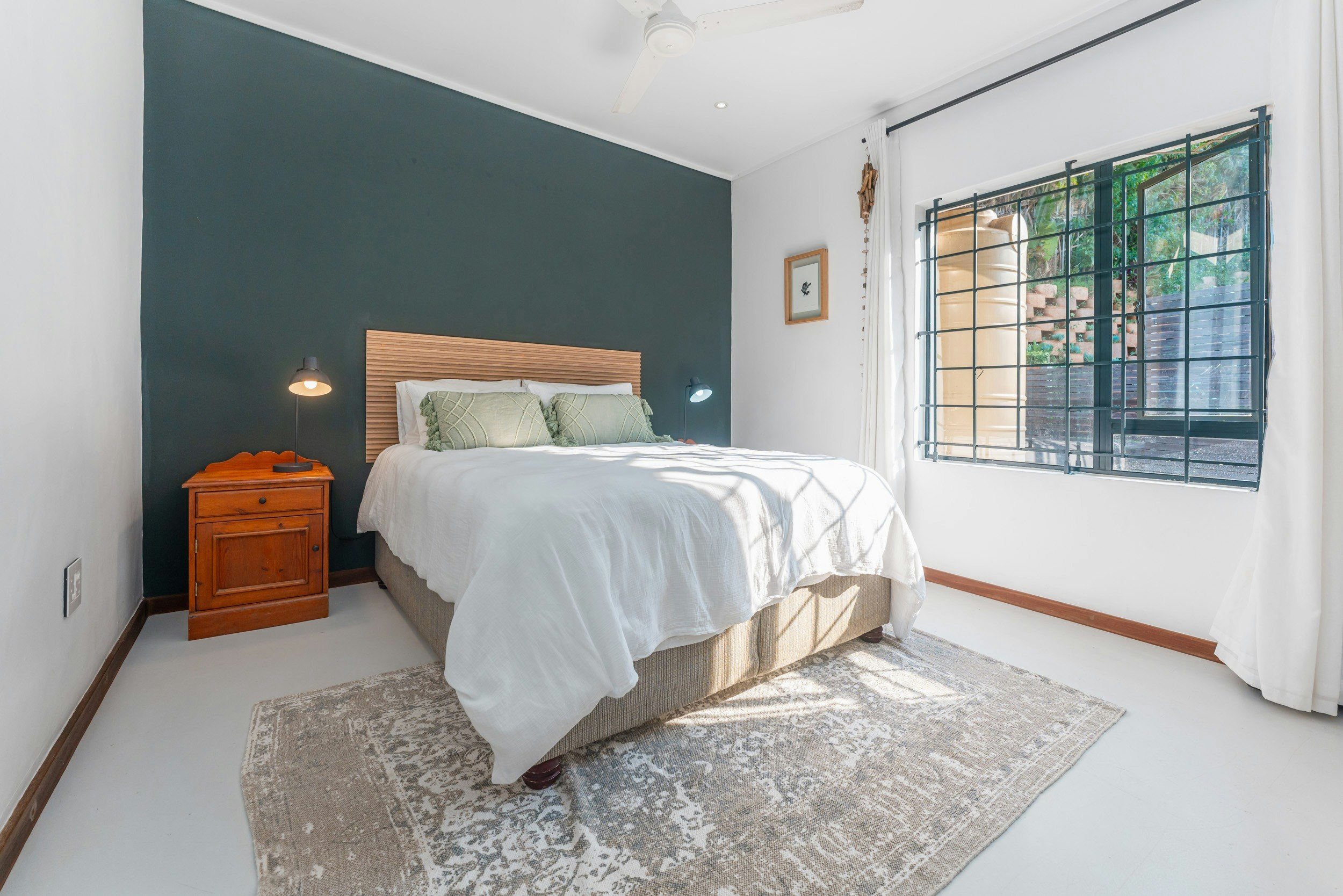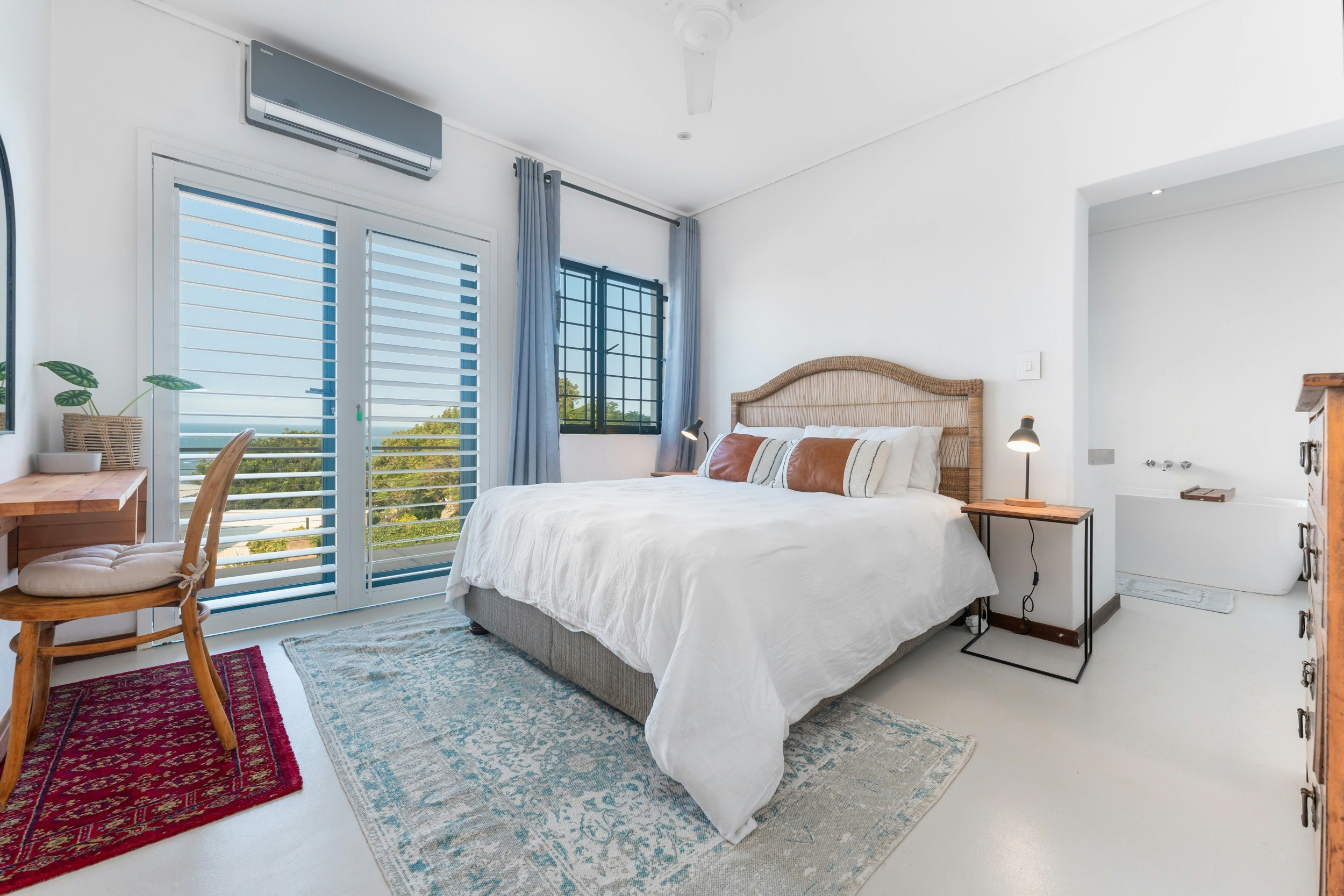 Die villa bied slaapplek aan 8 volwassenes en 6 kinders en beskik oor 4 slaapkamers en 3 badkamers in die hoofhuis en 2 woonstelle met hul eie badkamers. Die hoofslaapkamer in die hoofhuis het lugversorging, 'n koningingrootte-bed en 'n en suite-badkamer met 'n bad en 'n stort. Die tweede slaapkamer het 'n dubbelbed en die derde slaapkamer het 'n stapelbed. Die vierde slaapkamer het 'n dubbelbed en 'n en suite-badkamer met 'n stort. Hierdie 3 slaapkamers is slegs vir kinders geskik. Die derde badkamer het 'n bad. Die eerste woonstel het 'n slaapkamer met 2 koninggrootte-beddens en 'n en suite-badkamer met 'n stort en die ander woonstel het 'n slaapkamer met 'n dubbelbed en 'n en suite-badkamer met 'n stort.