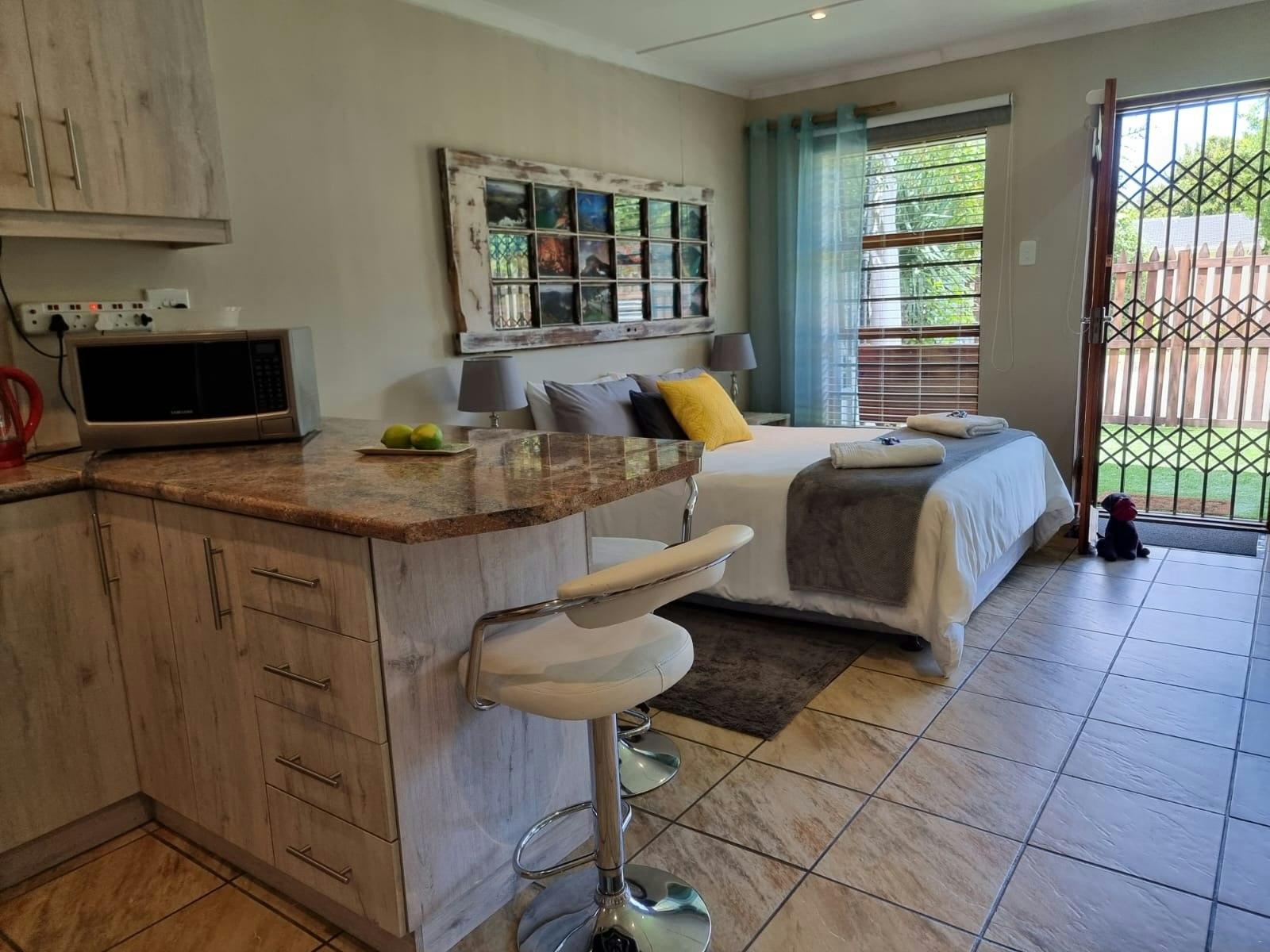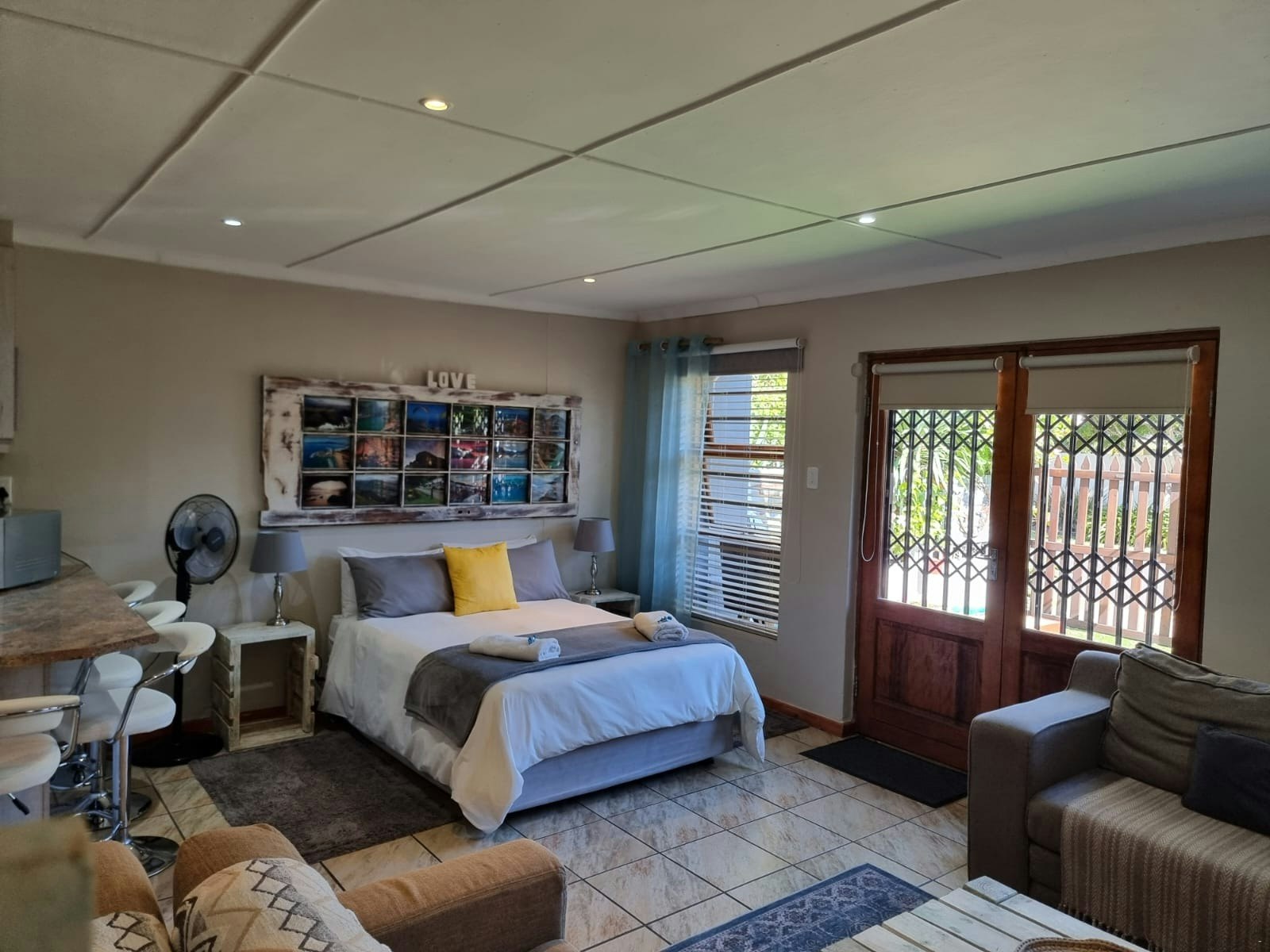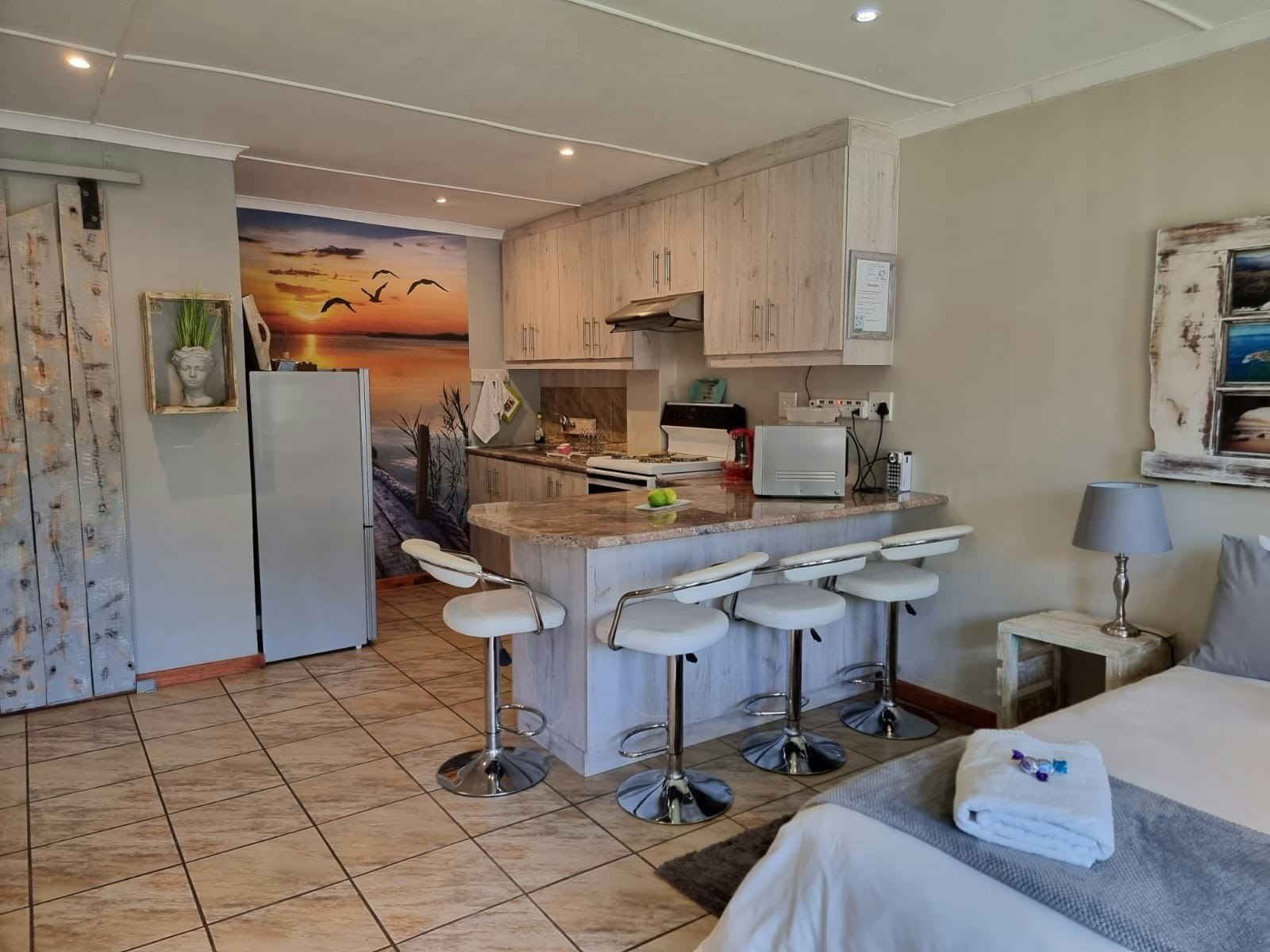 Comfortable, neat, relaxing and peaceful. Hostess is very friendly and considerate. I will definitely stay at Dolphins self catering again. Beautiful, neat and comfortable accommodation.