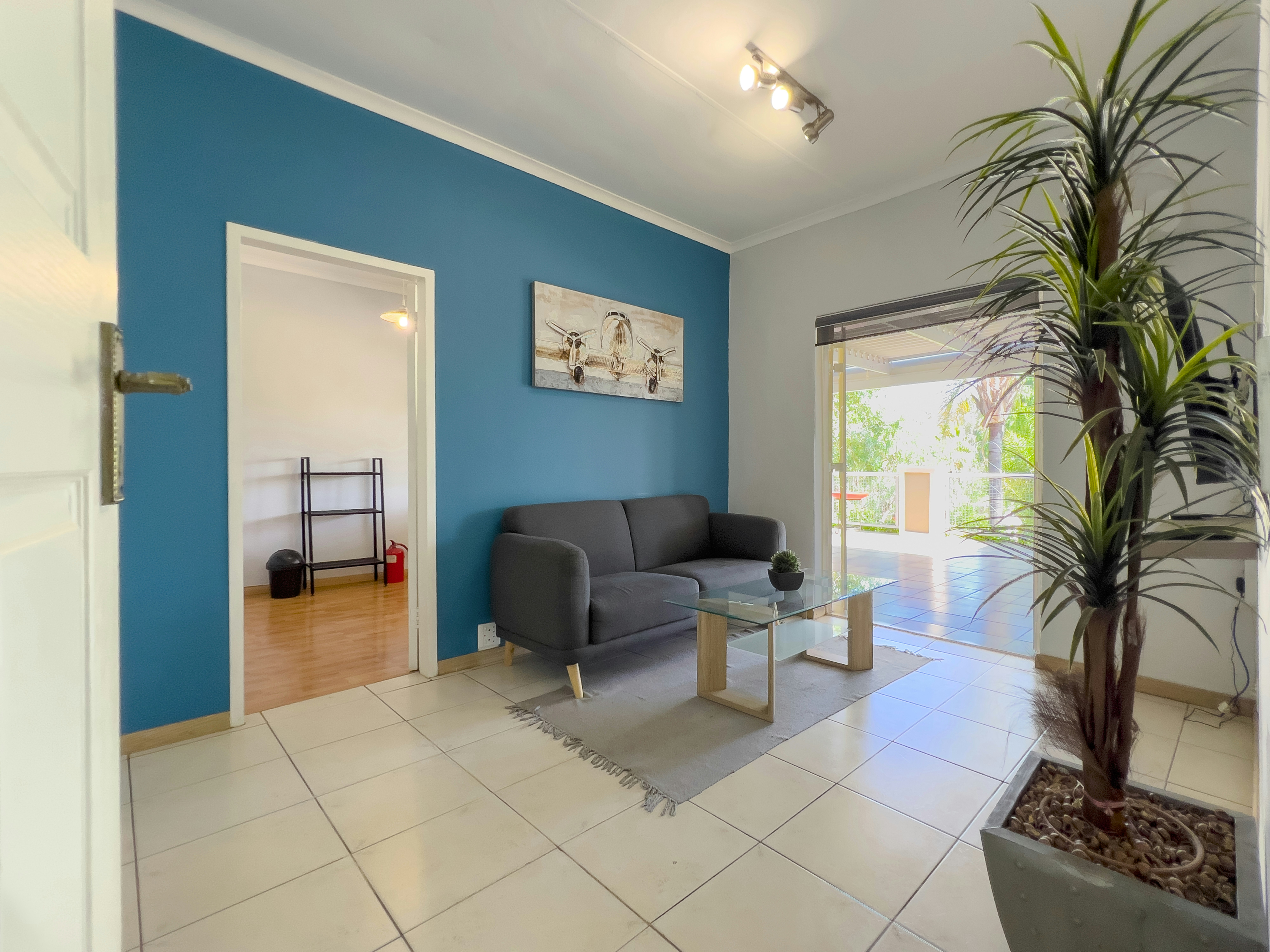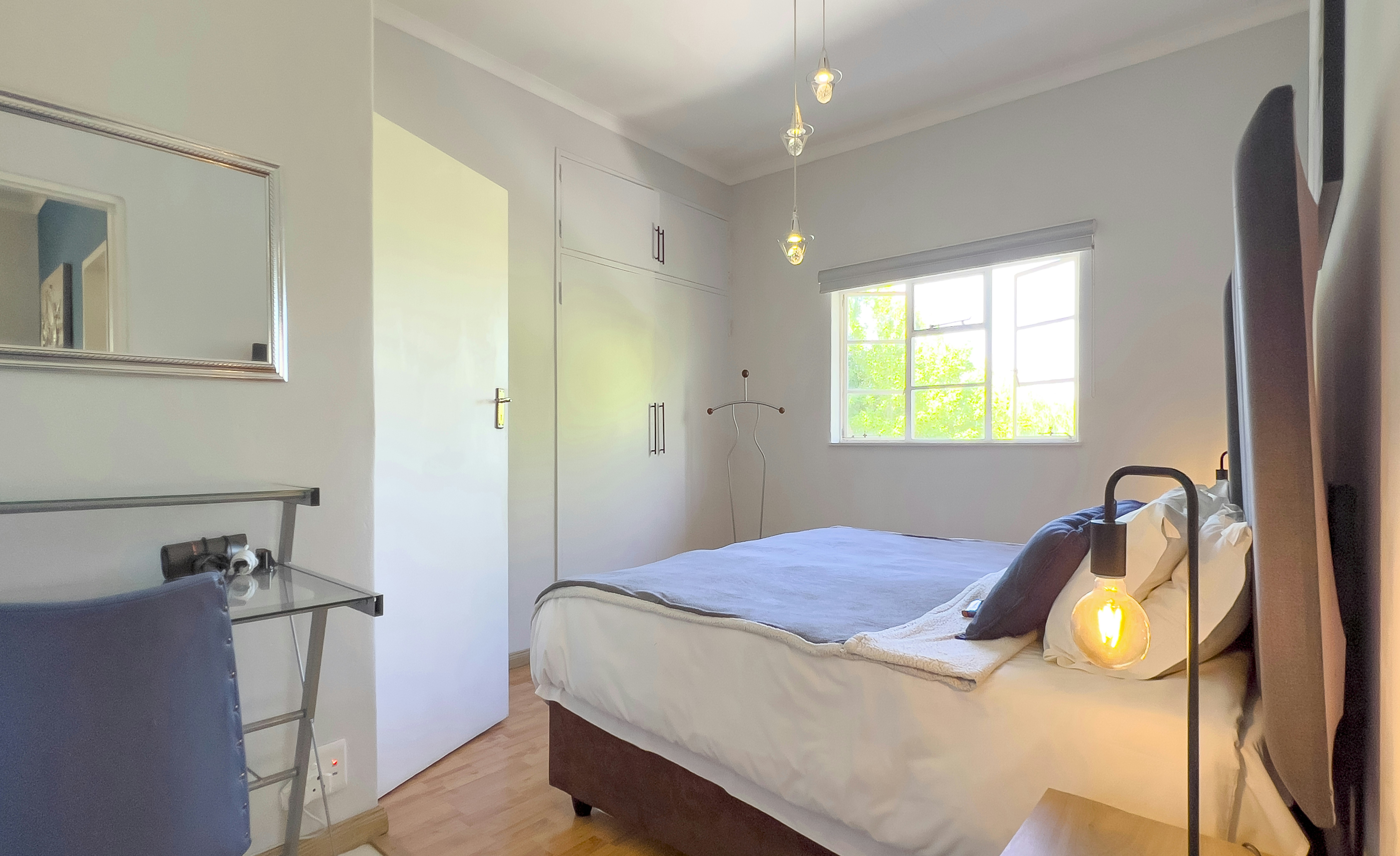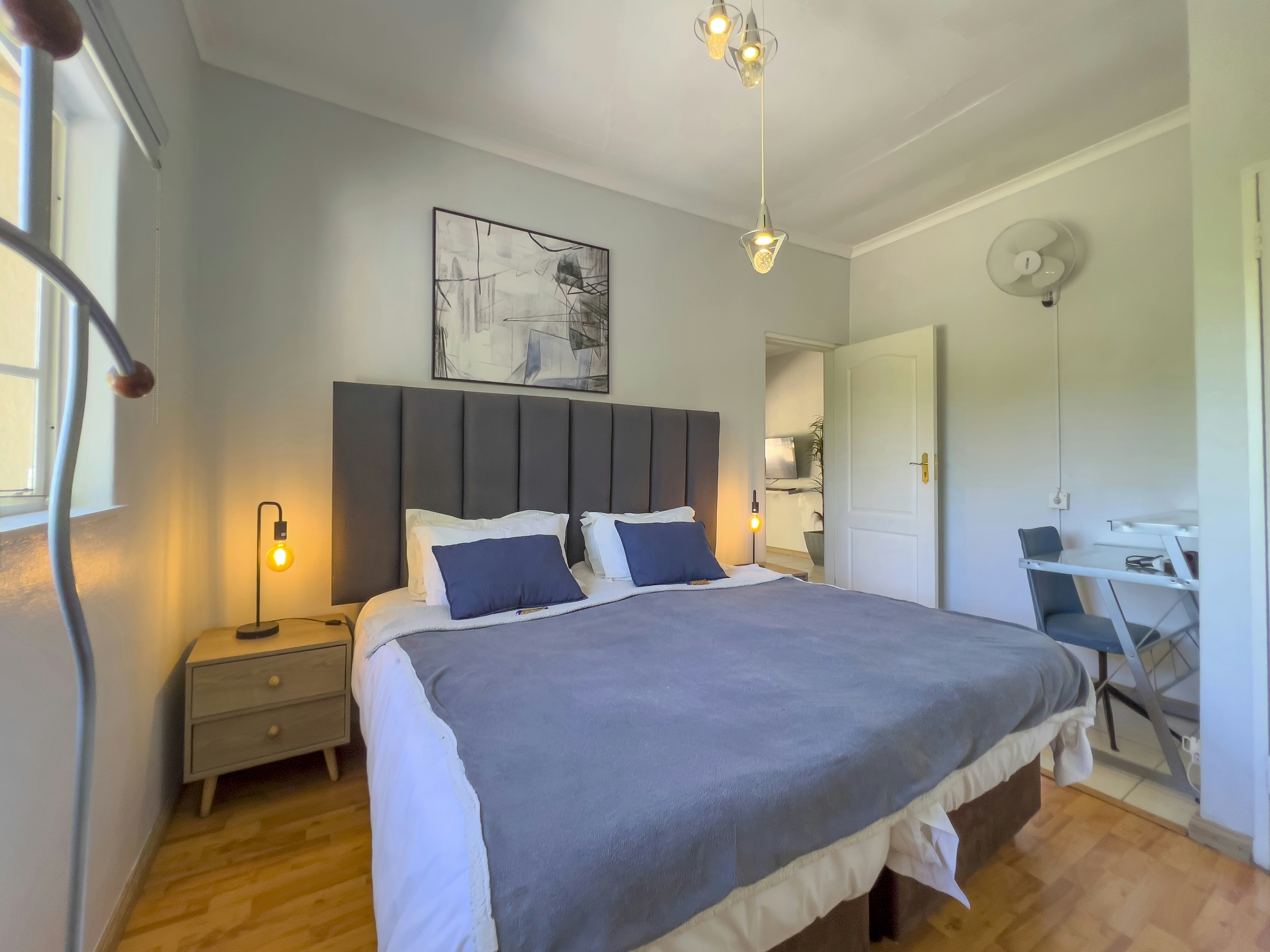 The guesthouse offers a choice of 2 well-appointed apartments, each with a private entrance. The apartments feature well-equipped kitchens, lounge areas and designated workspaces. The bedrooms have comfortable beds, soft duvets, crisp linen, and private bathrooms. Additional amenities include tea- and coffee-making facilities, TVs and access to free Wi-Fi.