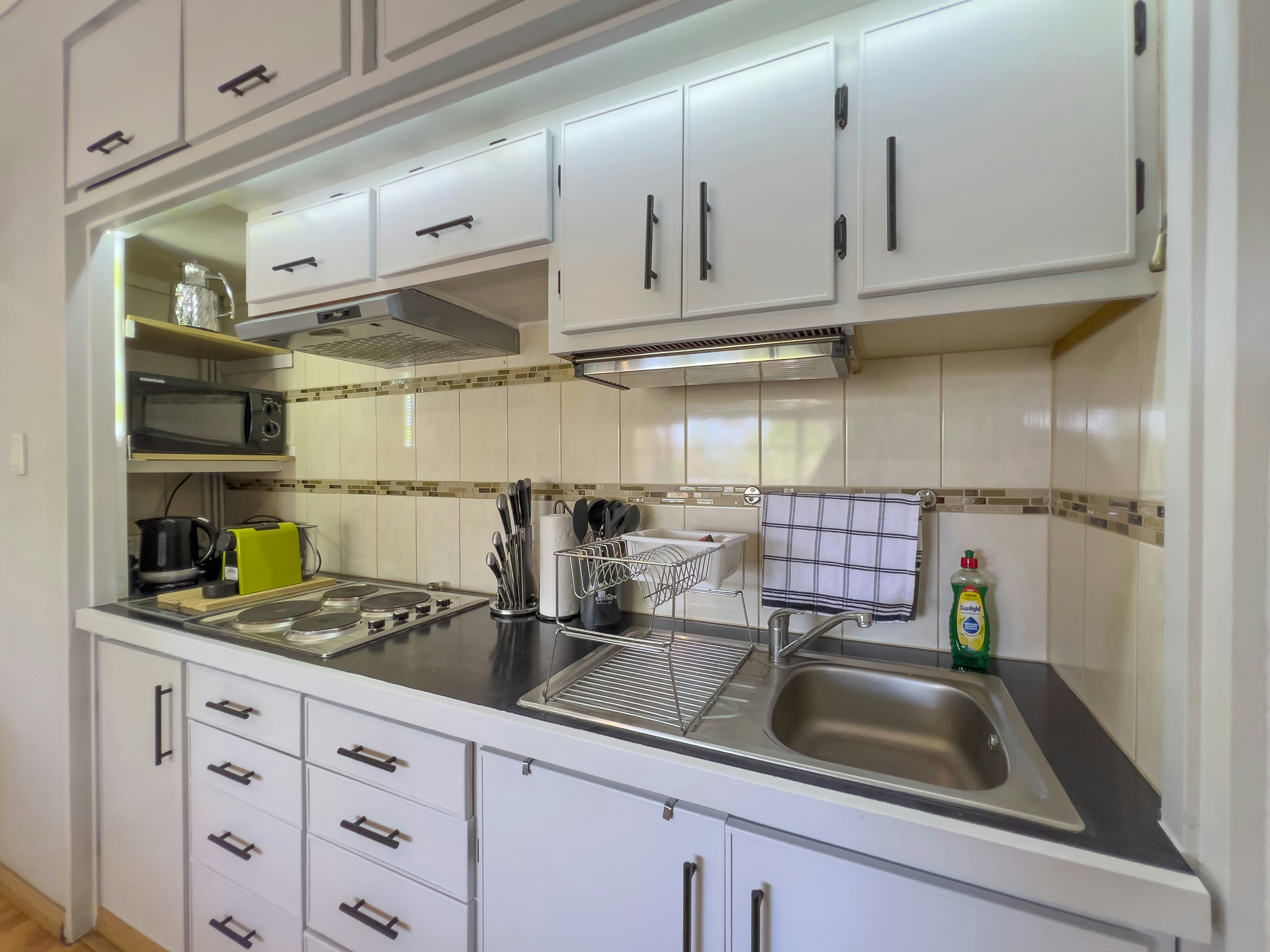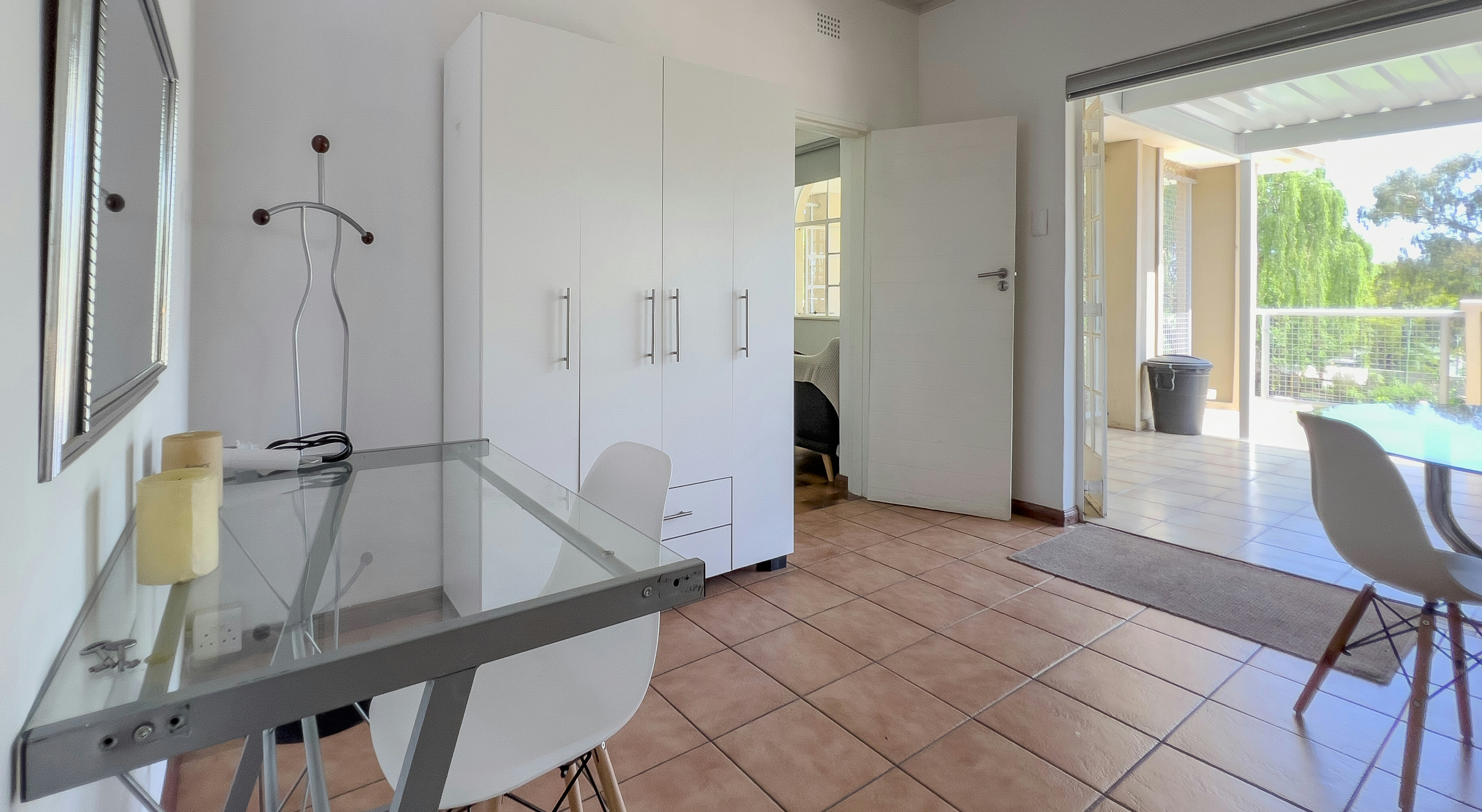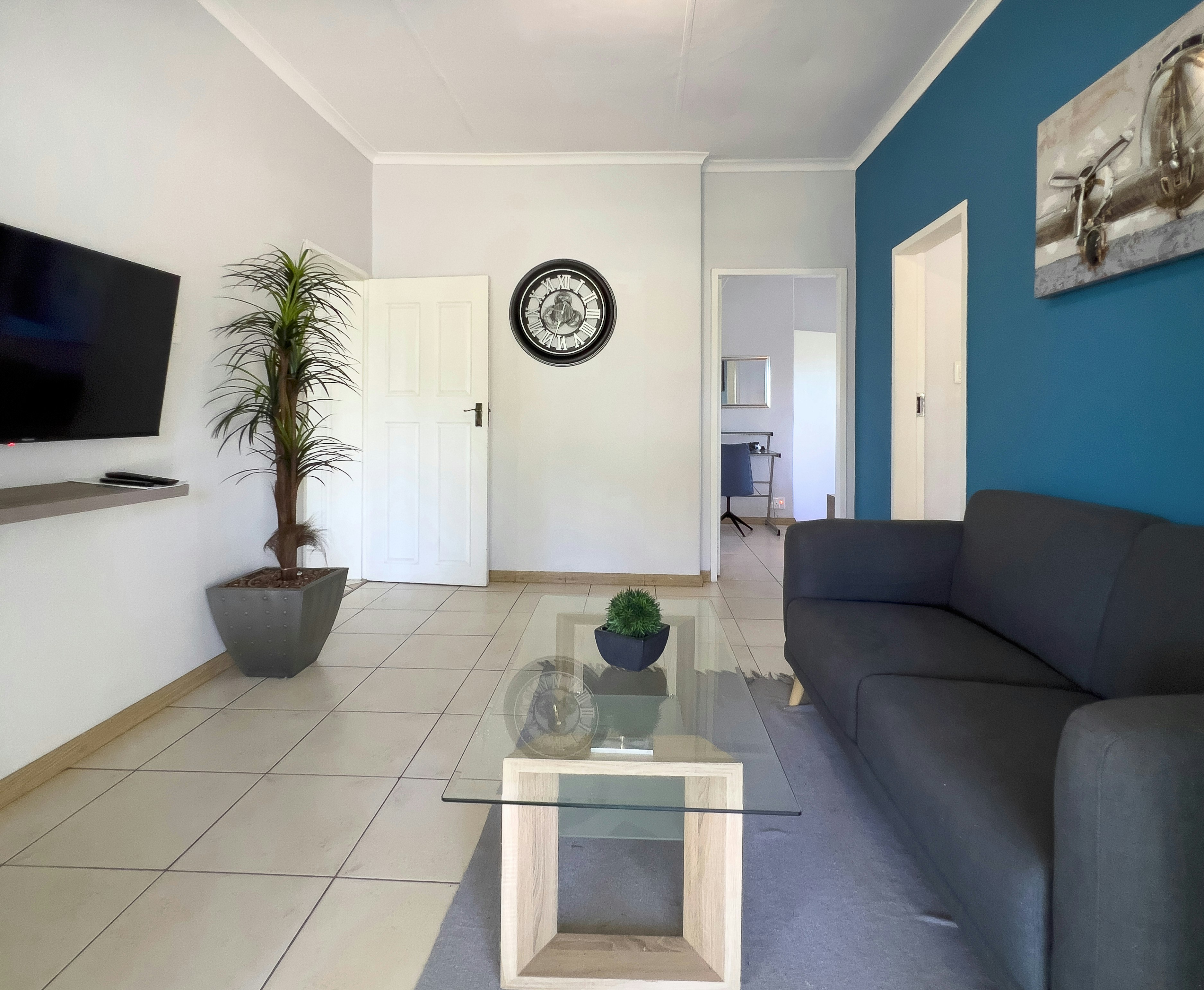 The guesthouse offers a choice of 2 well-appointed apartments, each with a private entrance. The apartments feature well-equipped kitchens, lounge areas and designated workspaces. The bedrooms have comfortable beds, soft duvets, crisp linen, and private bathrooms. Additional amenities include tea- and coffee-making facilities, TVs and access to free Wi-Fi.