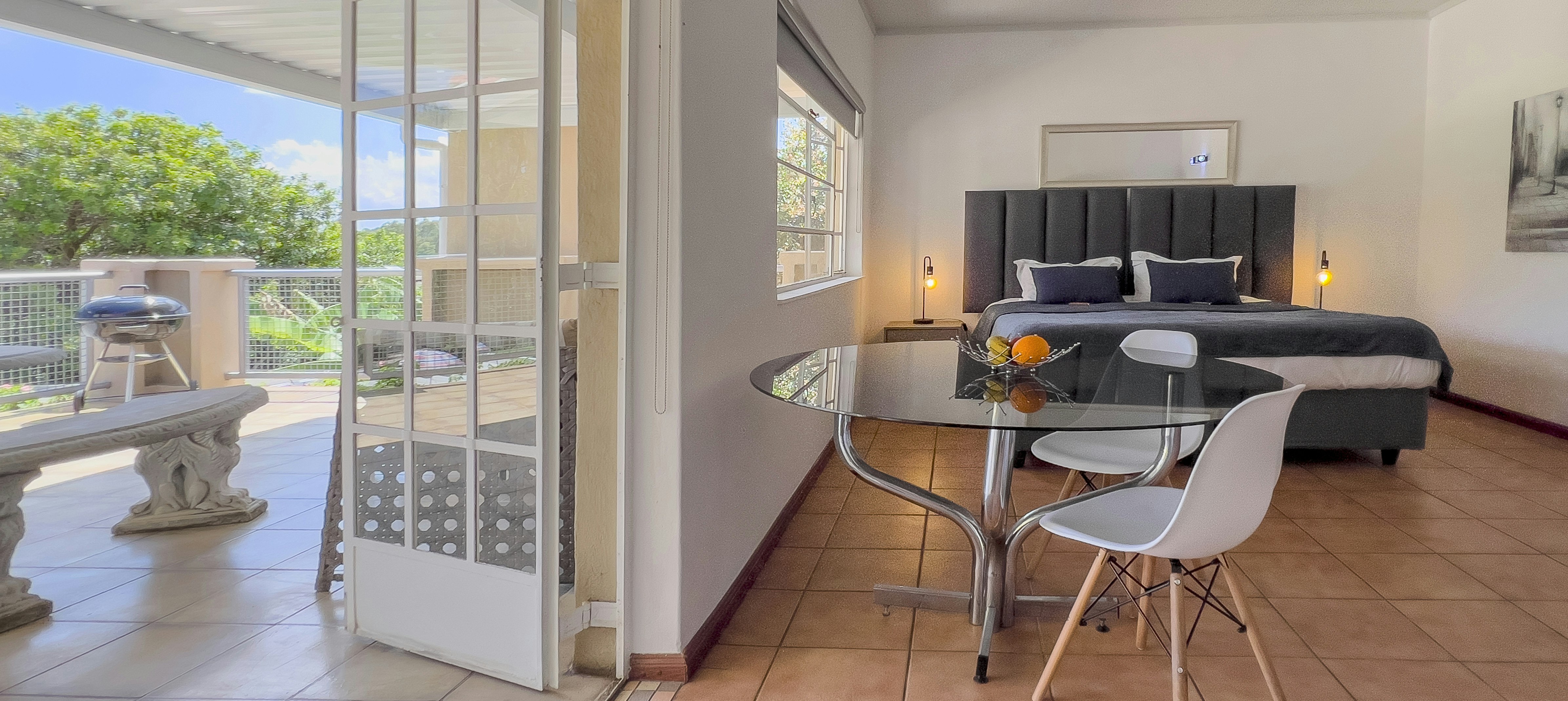 The lush gardens provide a peaceful setting for relaxation, and guests can enjoy the communal swimming pool and outdoor dining area. For those wishing to explore further, Lory Park Zoo is 6.1 km away and Boulders Shopping Centre is 6.4 km away. With secure parking provided, a restful stay in Glen Austin is guaranteed.