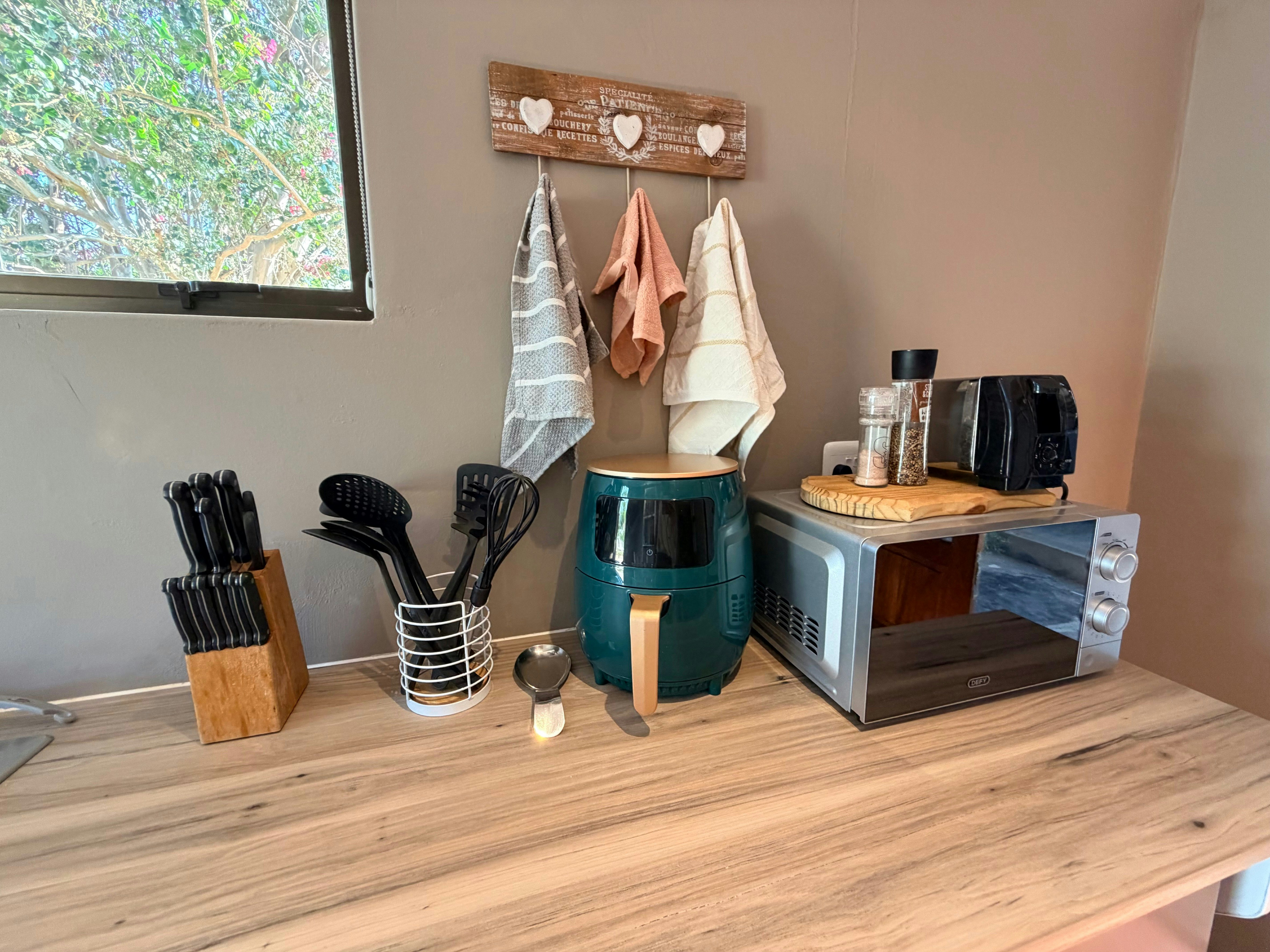 A first time away with our dogs. We were travelling with our dogs for the first time and contacted Doornplaas in advance as we have large dogs. They mentioned that there was a fenced area if needed as we didn't know how our dogs would react with their own dogs. The owners' dogs use the area around the accommodation, and we decided to keep our large dogs in the separate camp (about 50-60 m from our spot) as it didn't seem like they would get along with the three smaller dogs. We were able to pull our vehicle into the camp, and they could sleep in the back of the bakkie. Guests bringing dogs, please keep in mind that your dogs will be sharing the area around the accommodation with three others. The accommodation is nicely appointed with everything you would need.